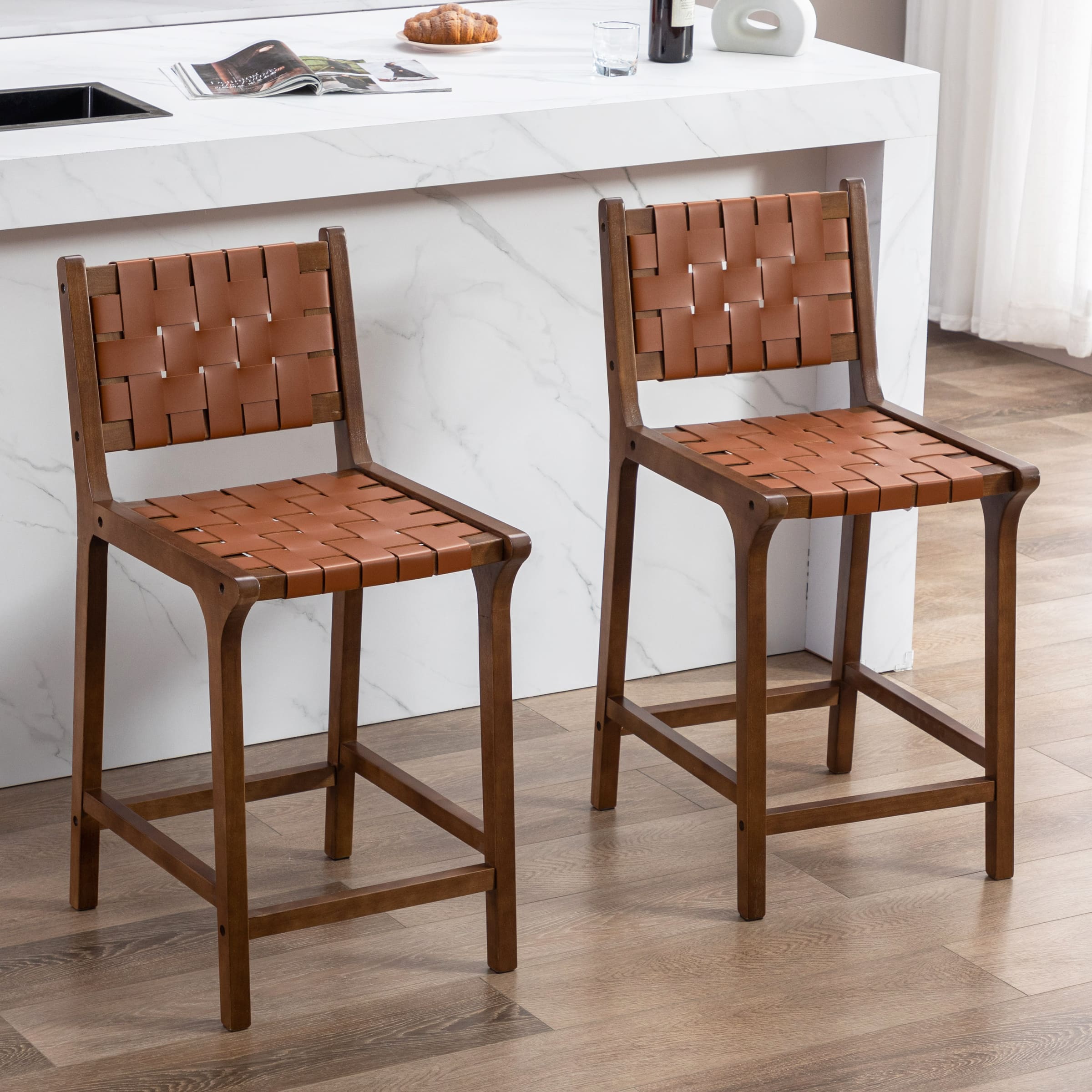 Janoray Leather Woven Strap Seat Counter Stools Set of 2 – 5703CS
