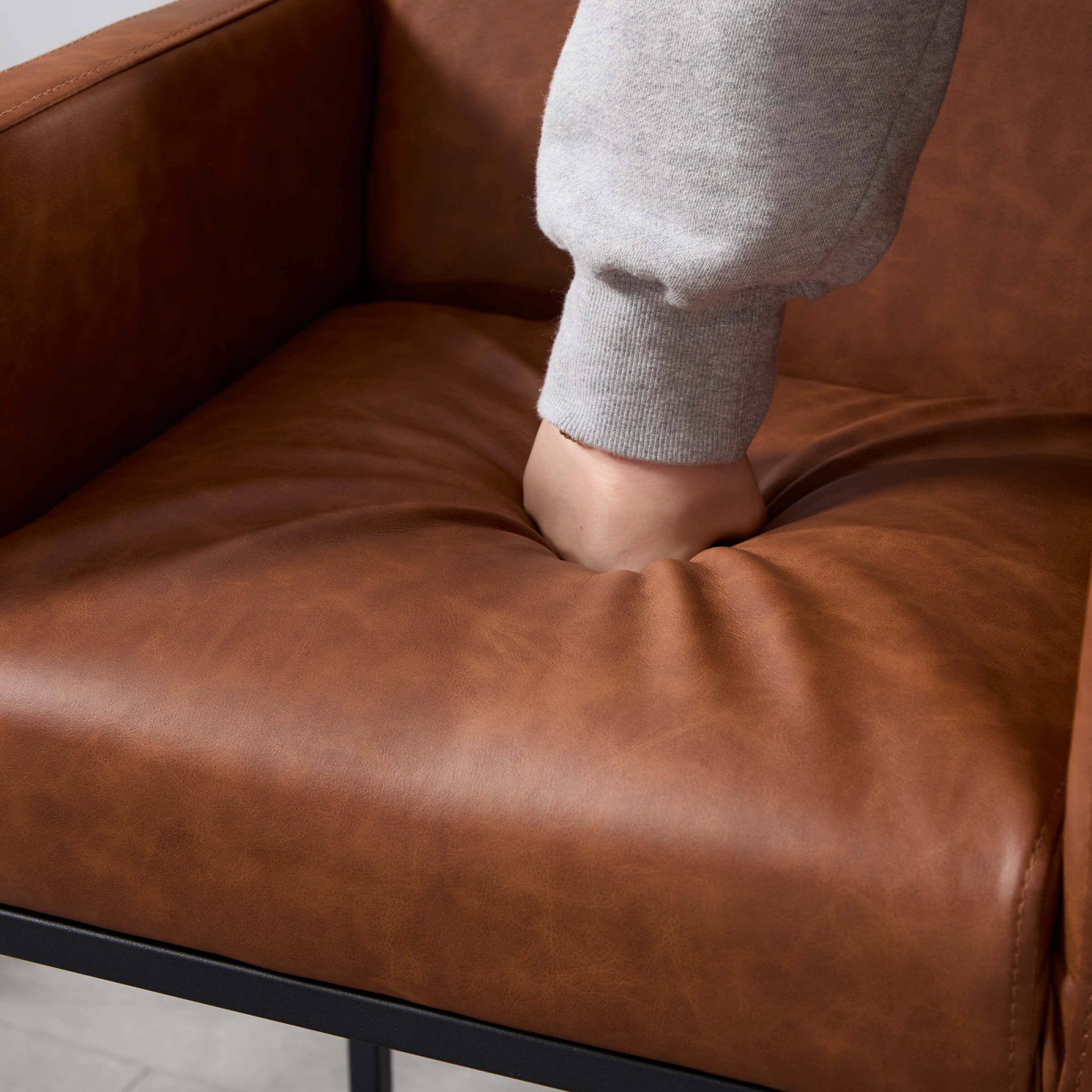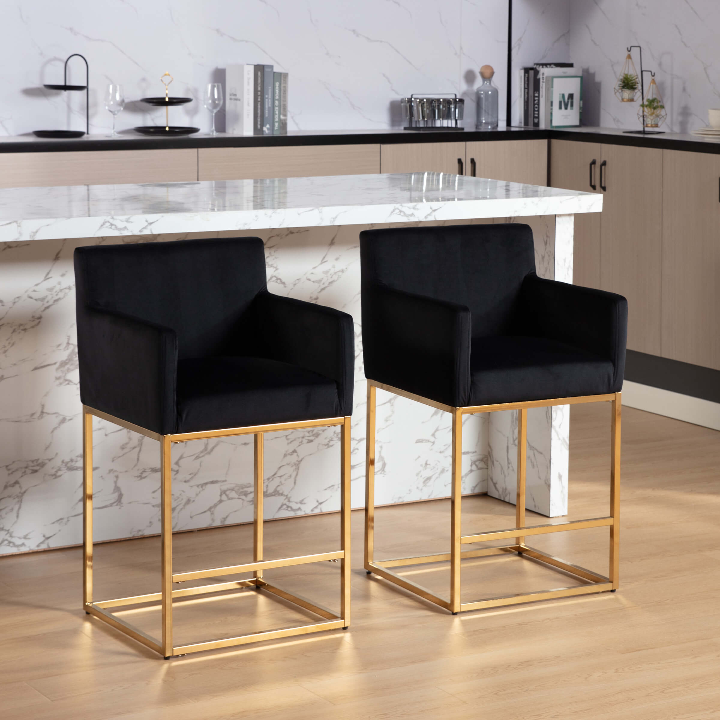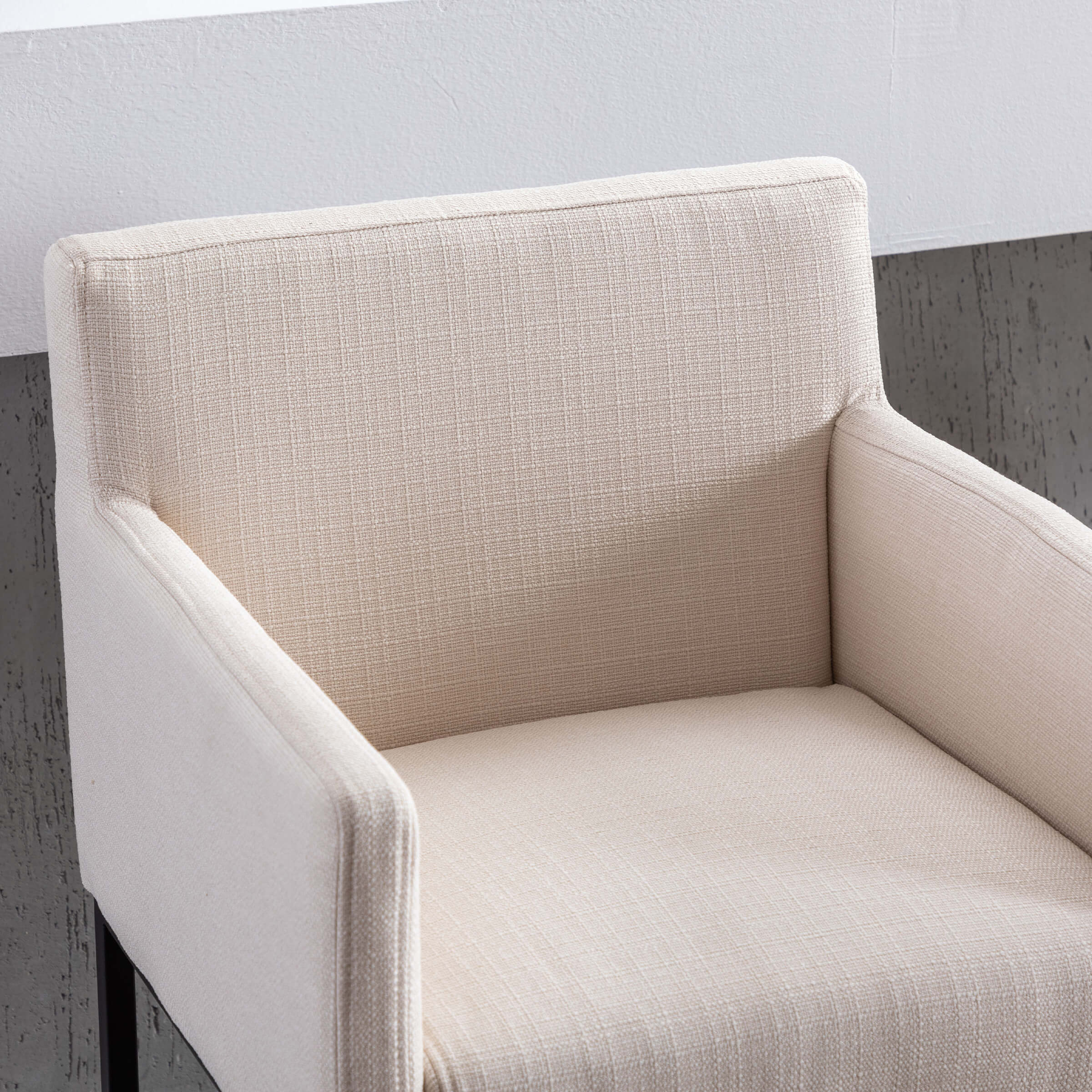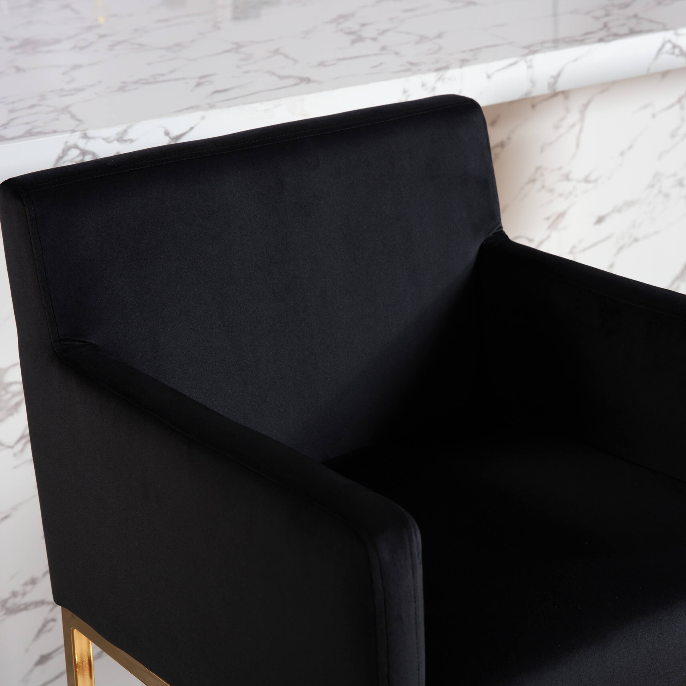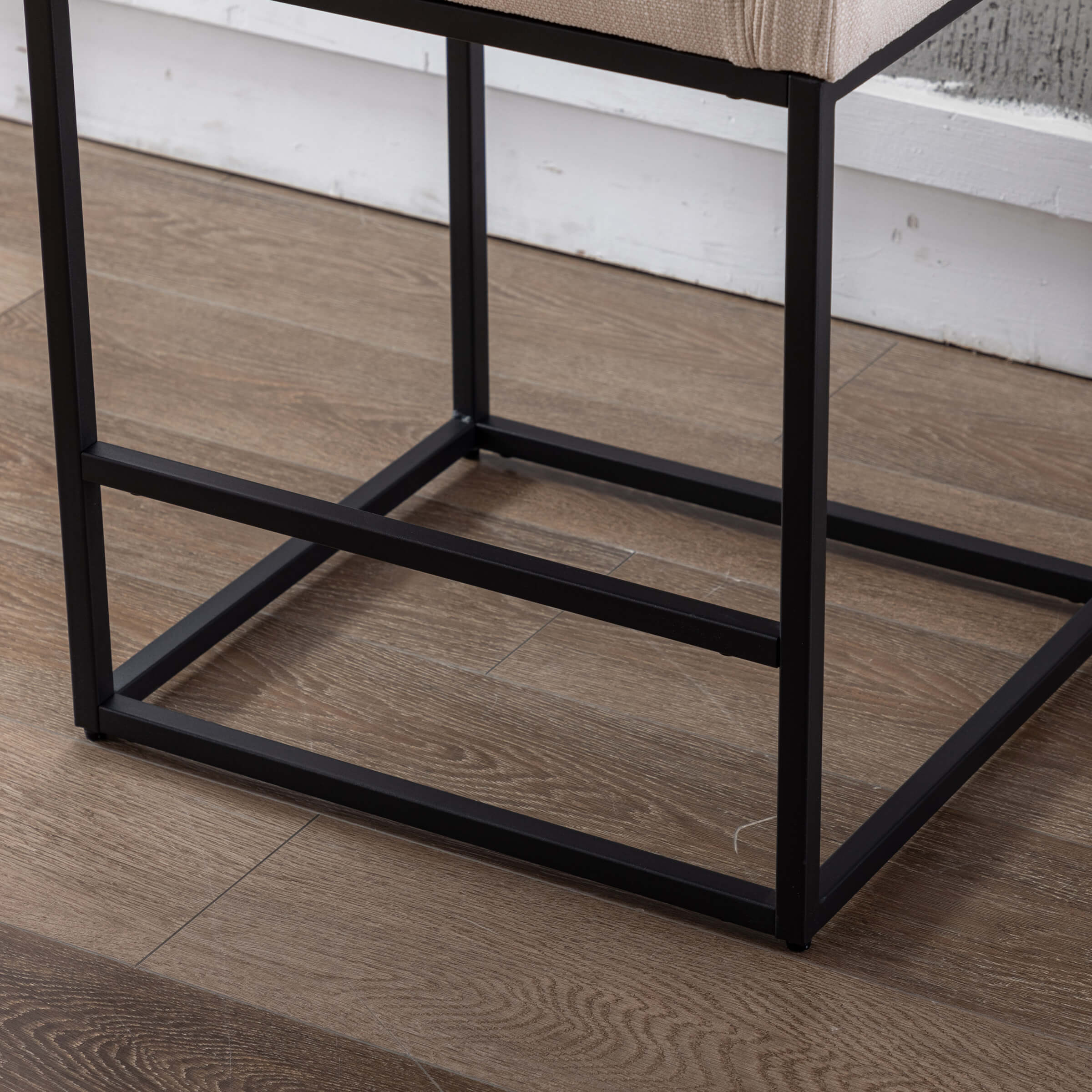 - Modern square seat with soft velvet and linen fabric.