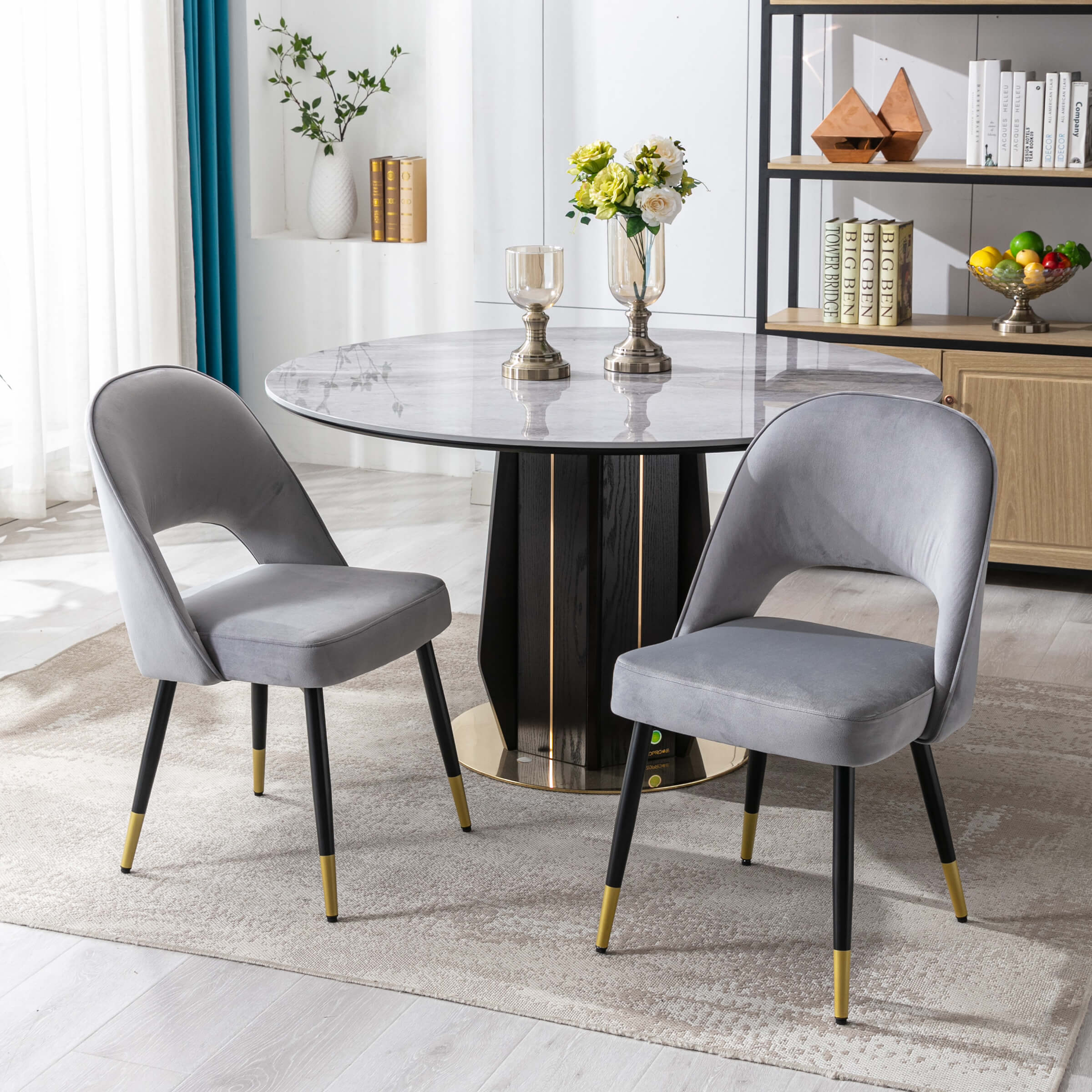 Contemporary Inspired Dining ChairsStylish Cut-Out BackComfort CushionBlack Gold Chair Legs