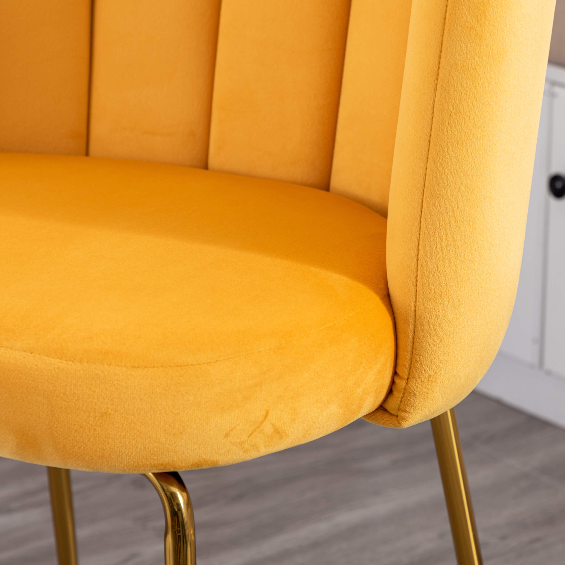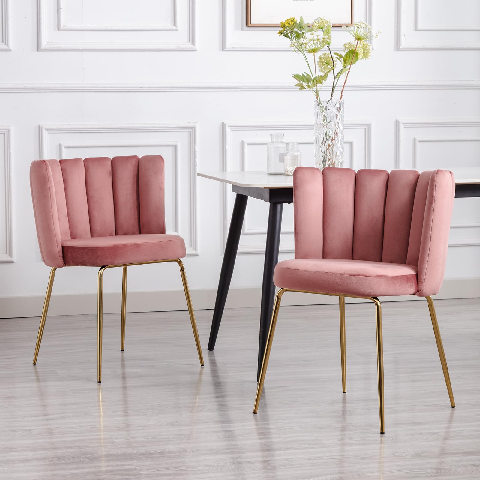 Stylish Dining ChairSemi-enveloped Petal-shaped BackrestBig Soft SeatSteel Metal LegsProduct Dimensions