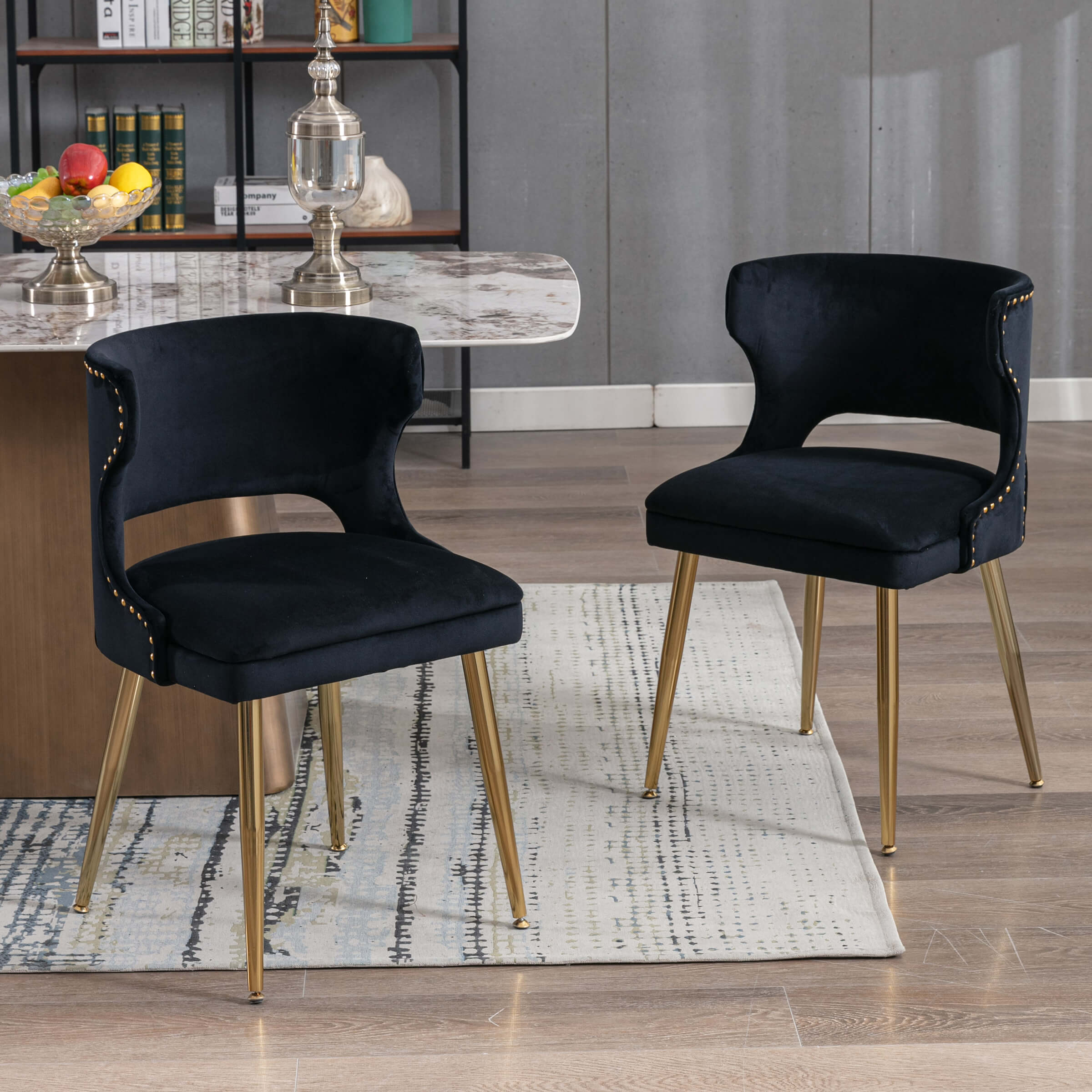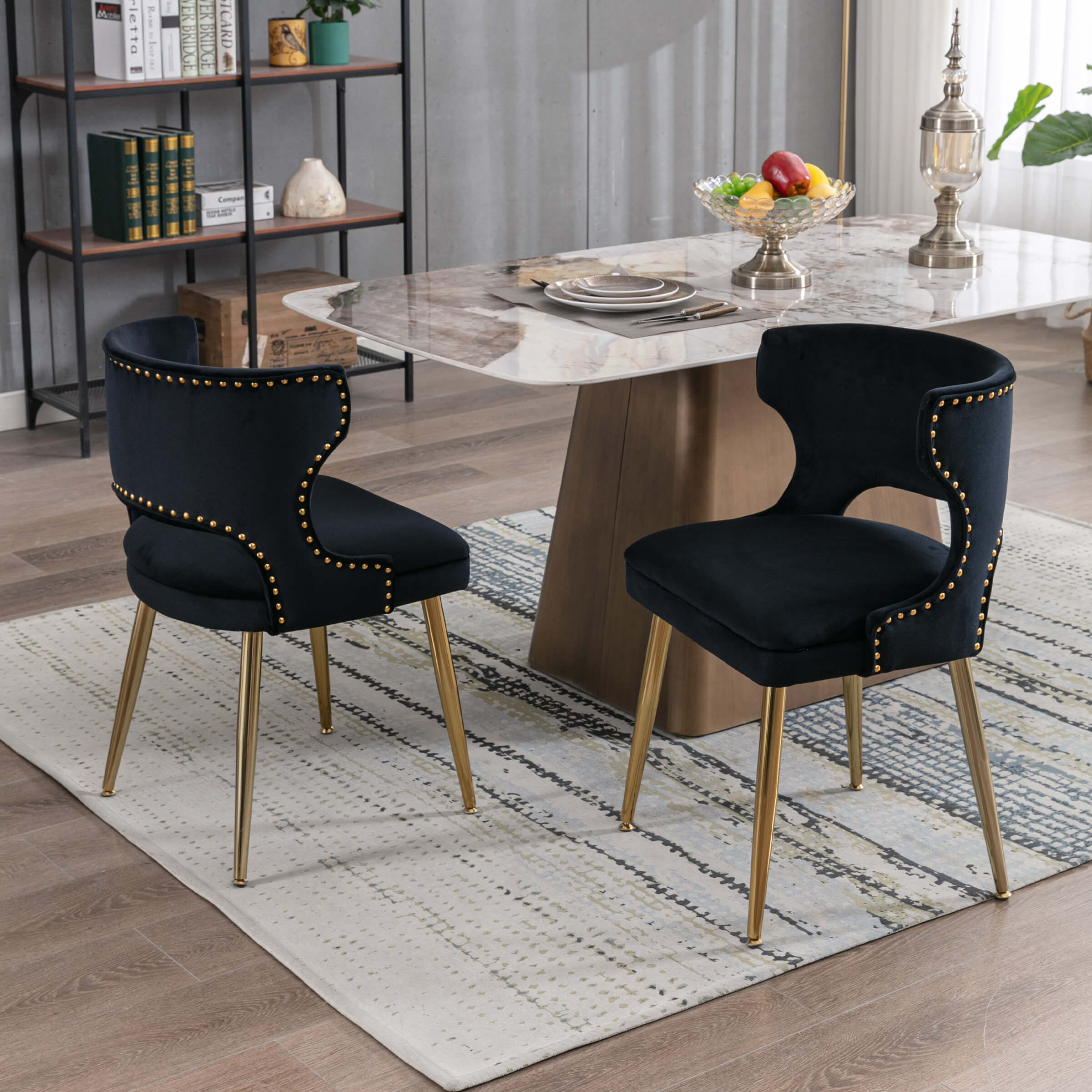 CHICAURA Modern Velvet Gold Metal Legs Dining Chairs Set of 2 – 60271DC