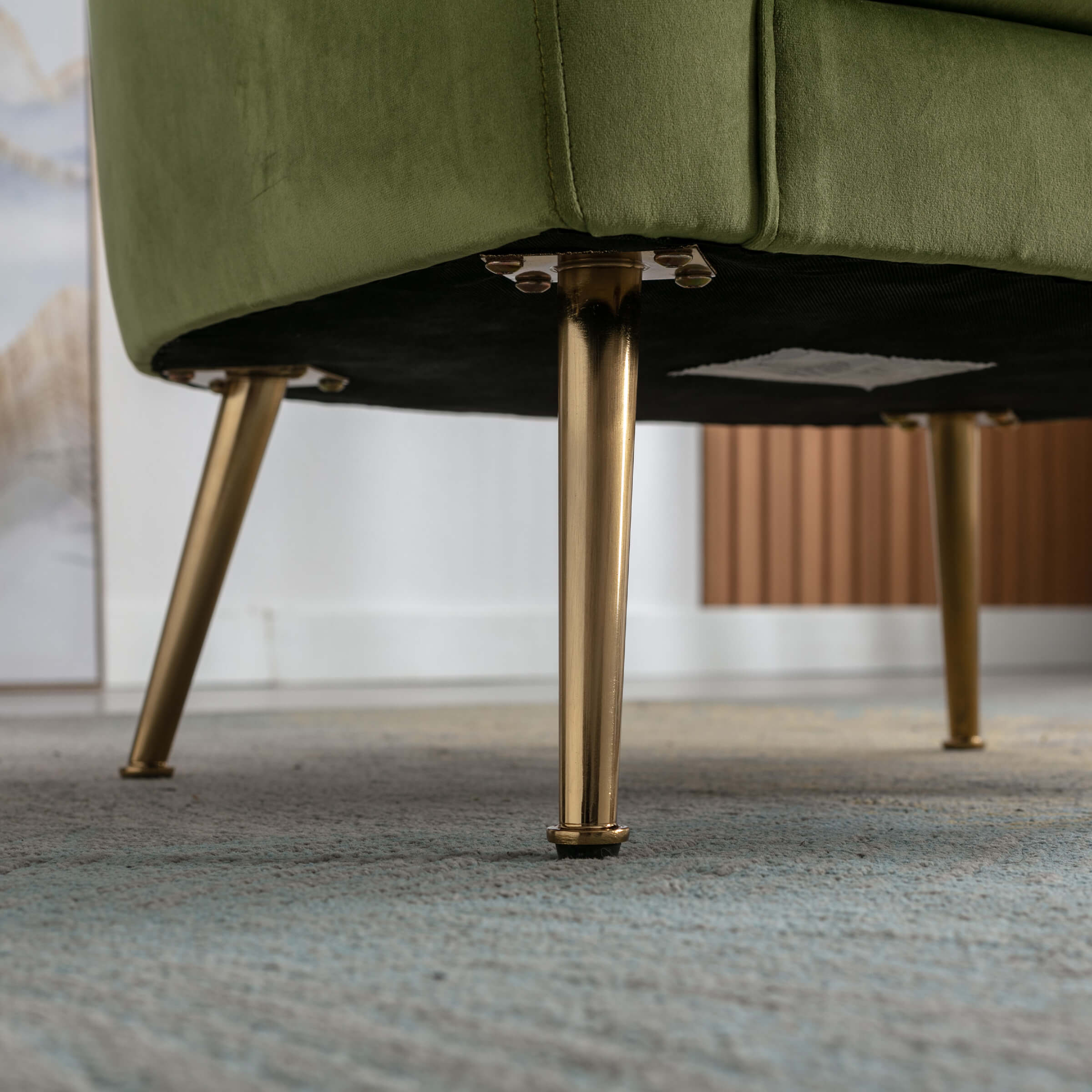 High-quality Living Room ChairThe Barrel DesignThe Added Headrest & Lumbar PillowPremium Foam CushionLuxurious Gold Colored Chair LegsProduct Dimensions