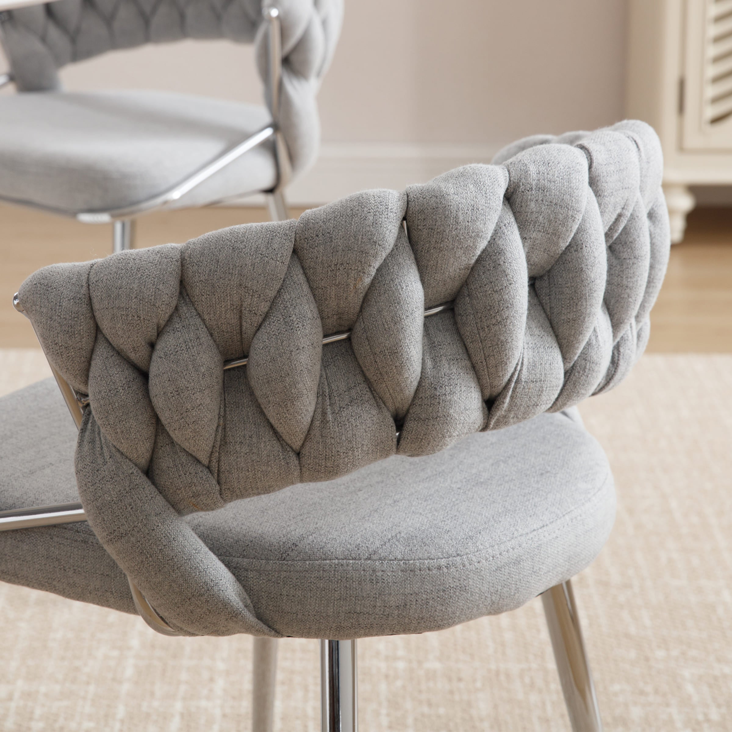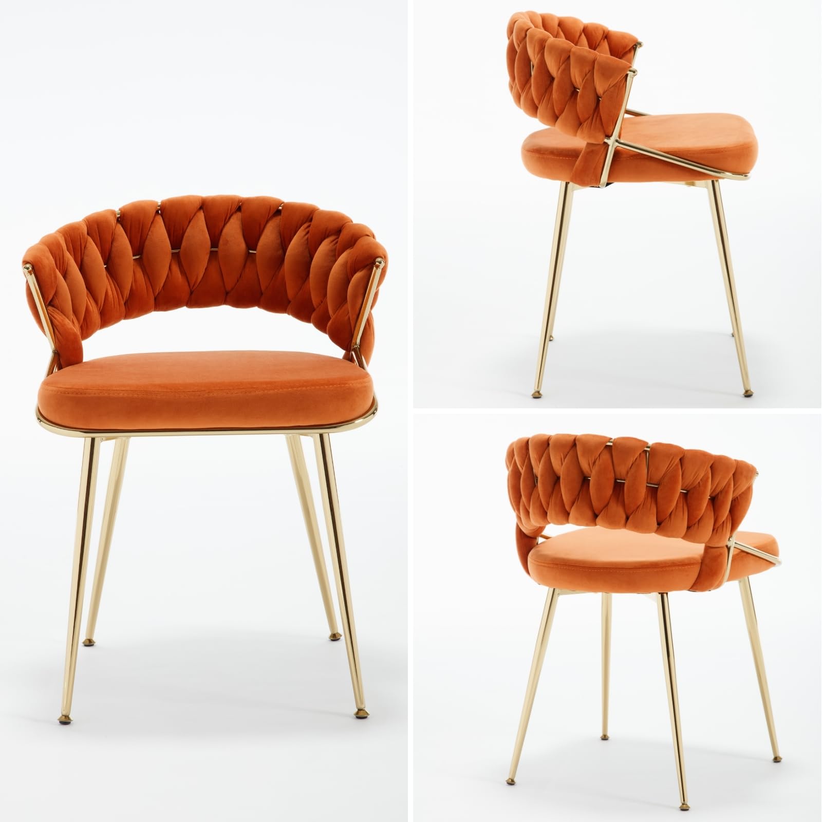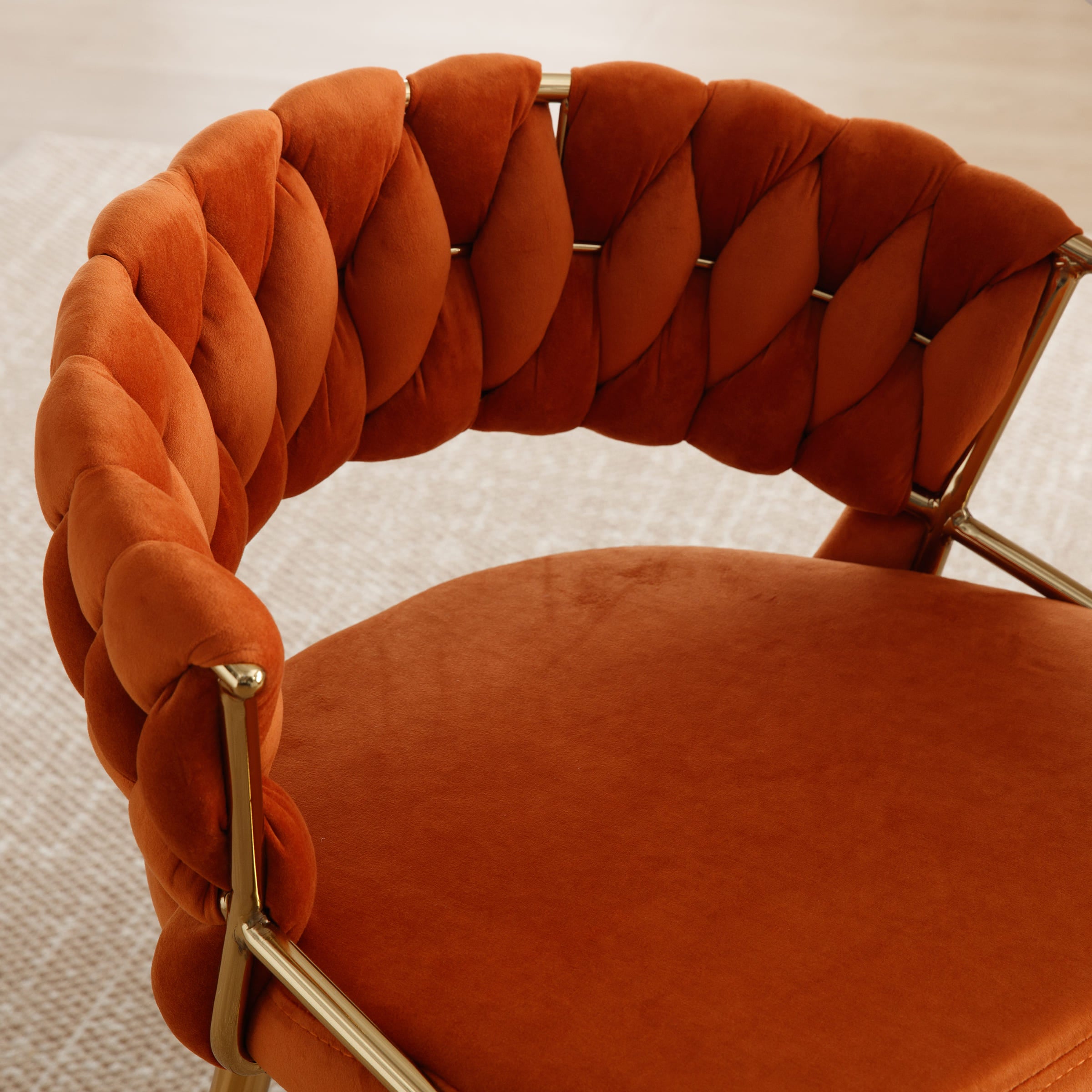 - Elegant black velvet upholstery with a stylish woven backrest design.