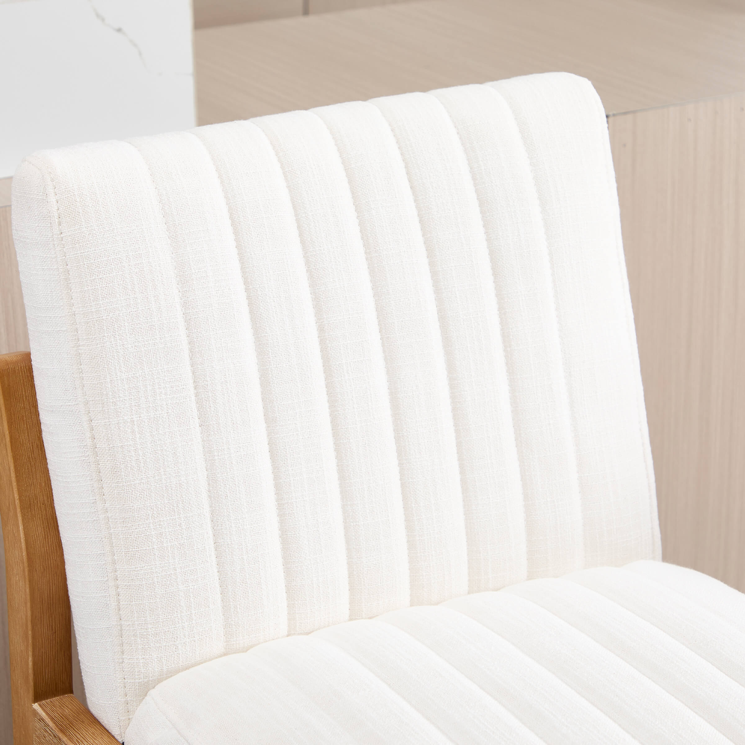- Tufted C-shaped backrest offers comfort and style.
