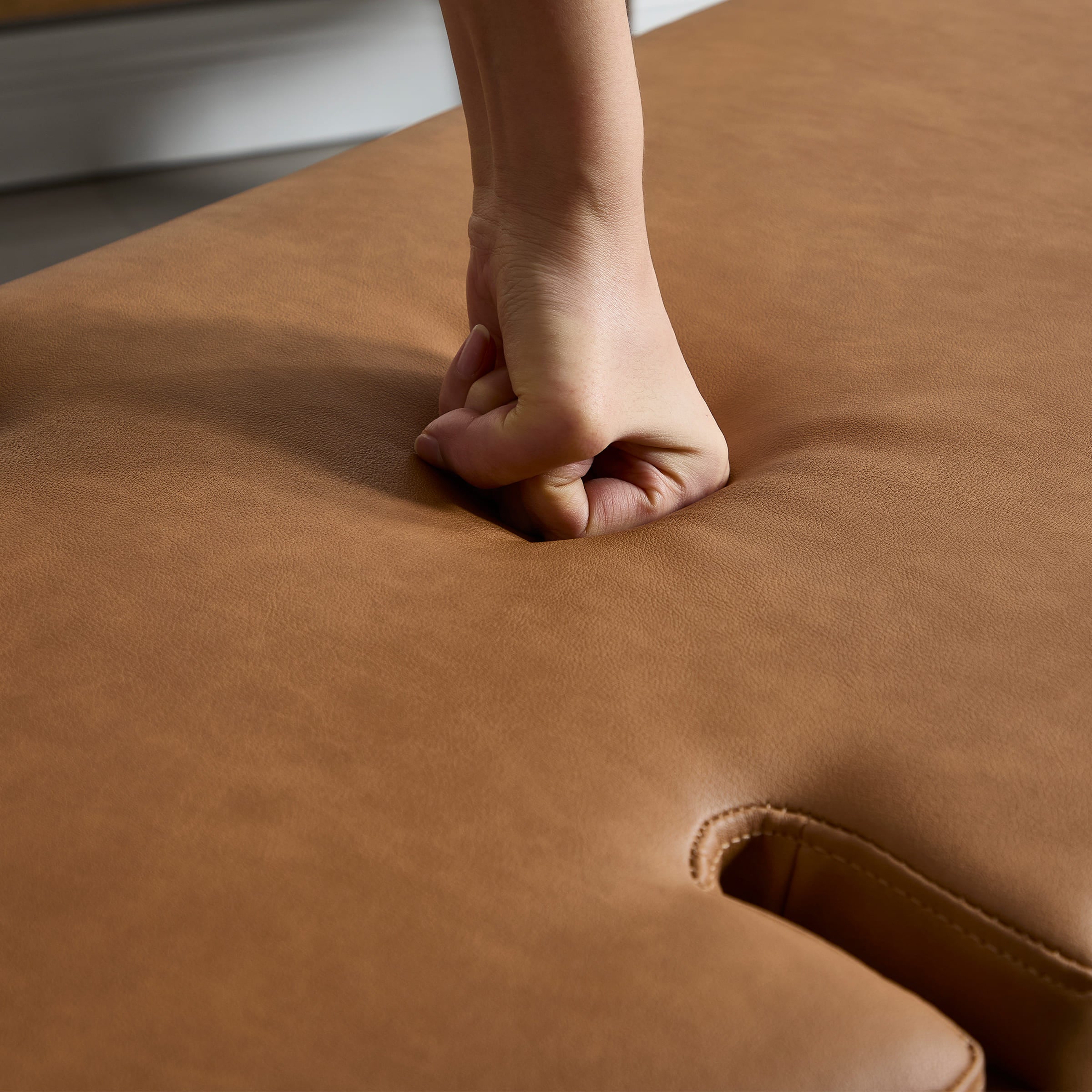 - High-density foam cushion offers soft support with a refined silhouette.