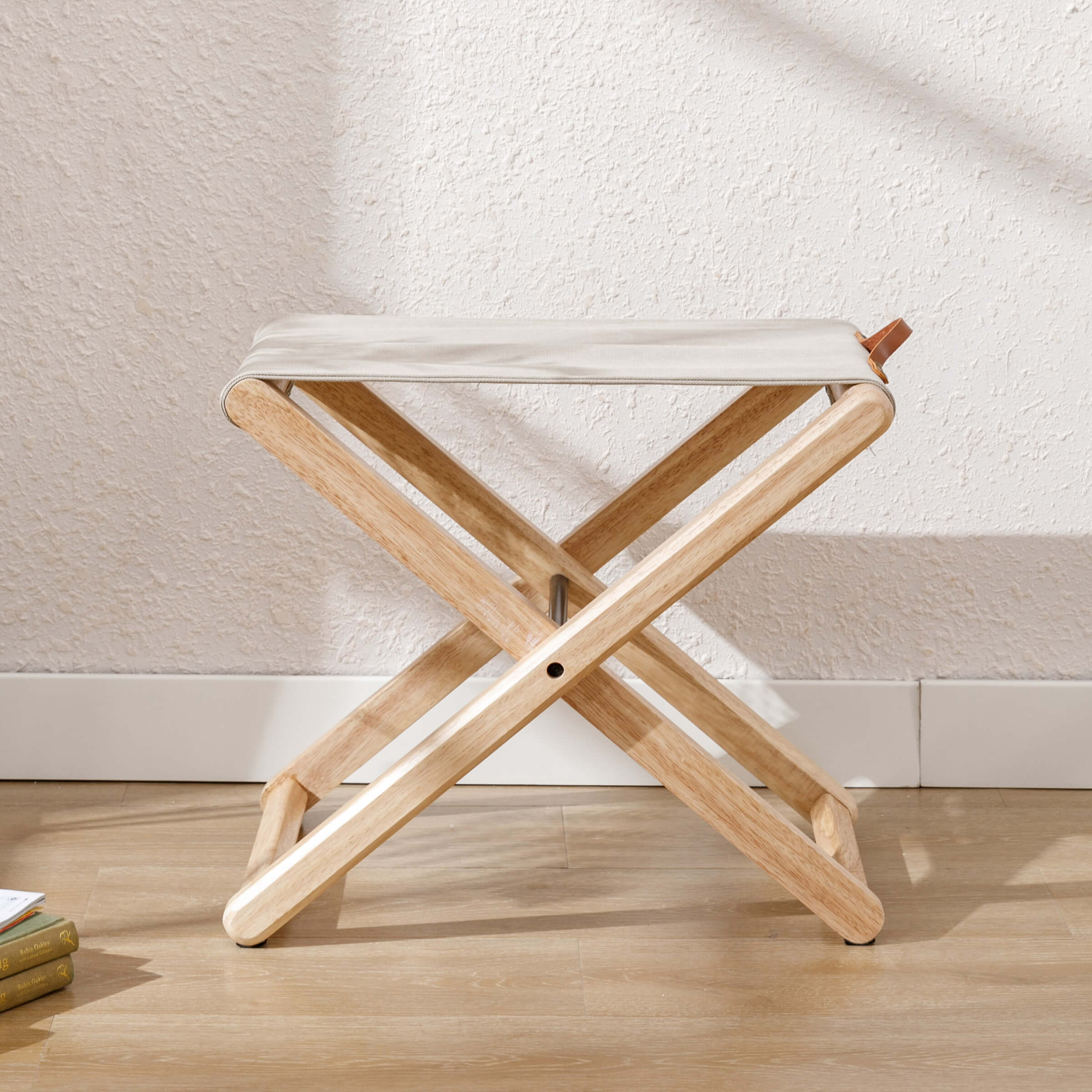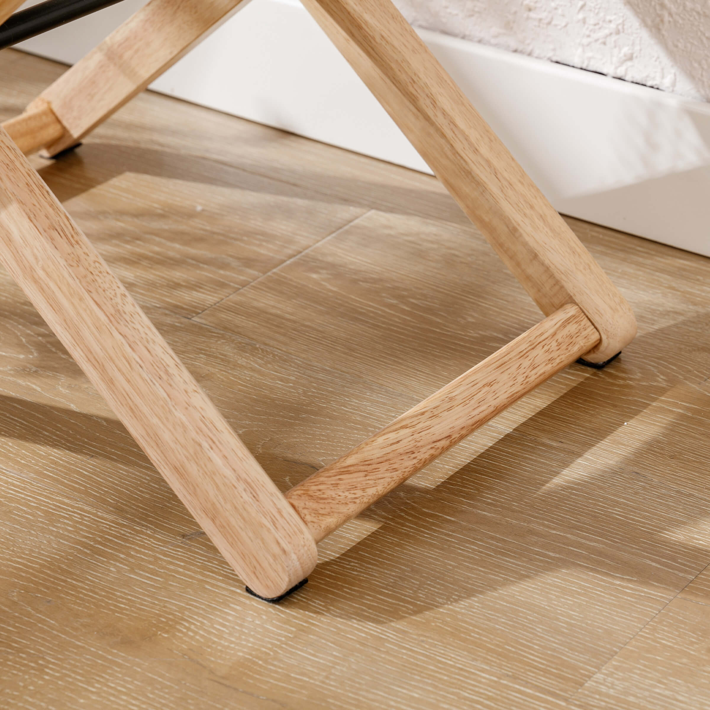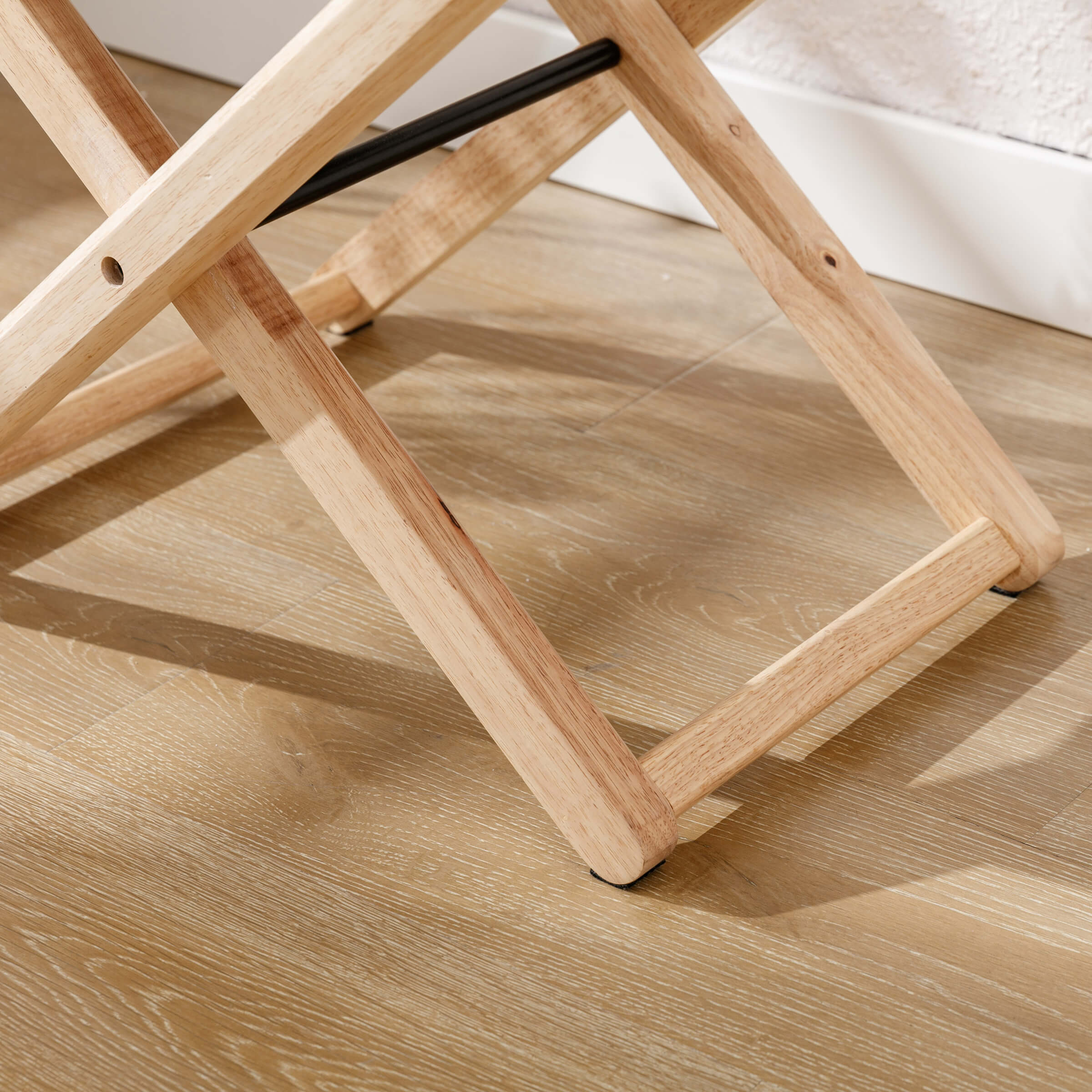 - Solid wood X-frame with metal reinforcement ensures lasting stability.