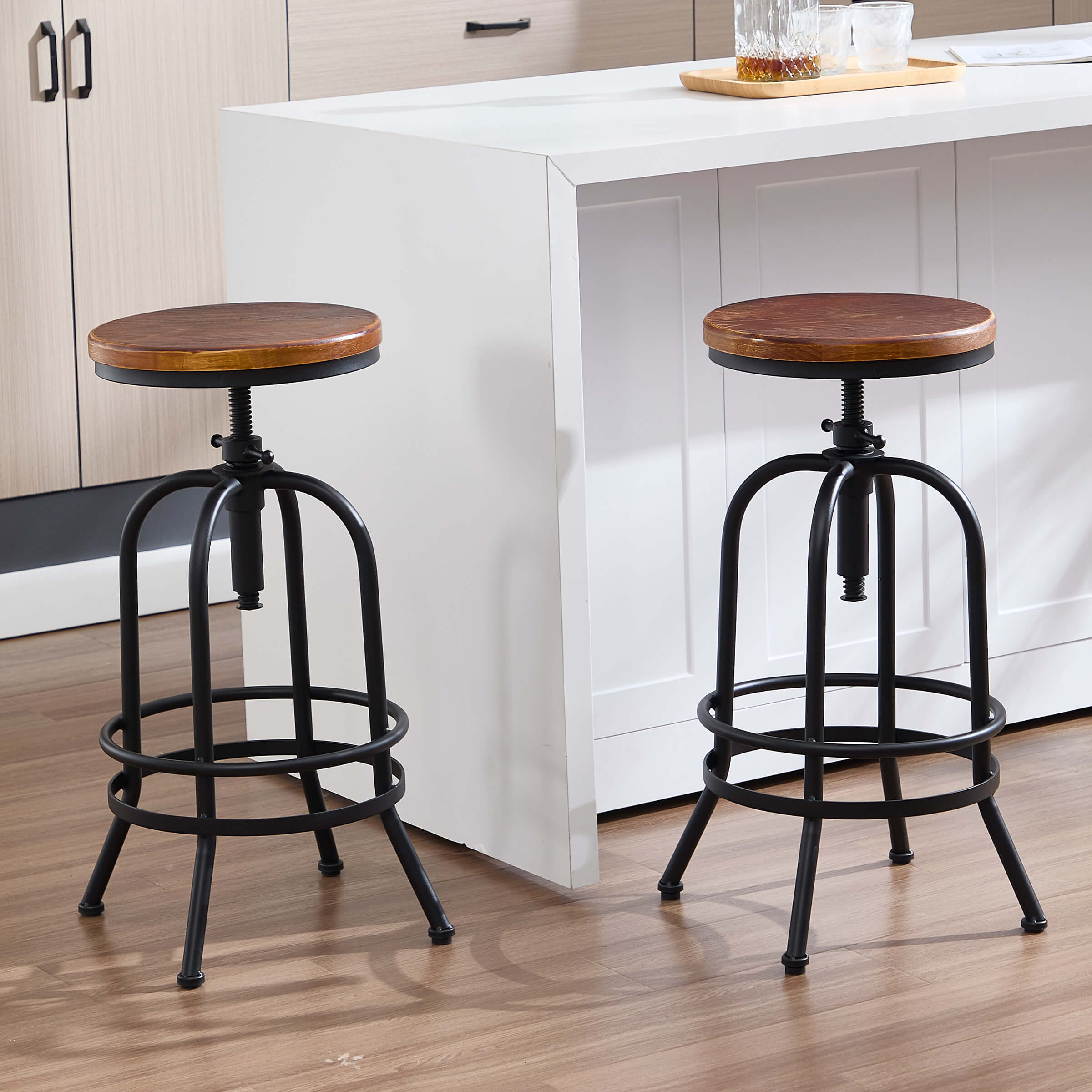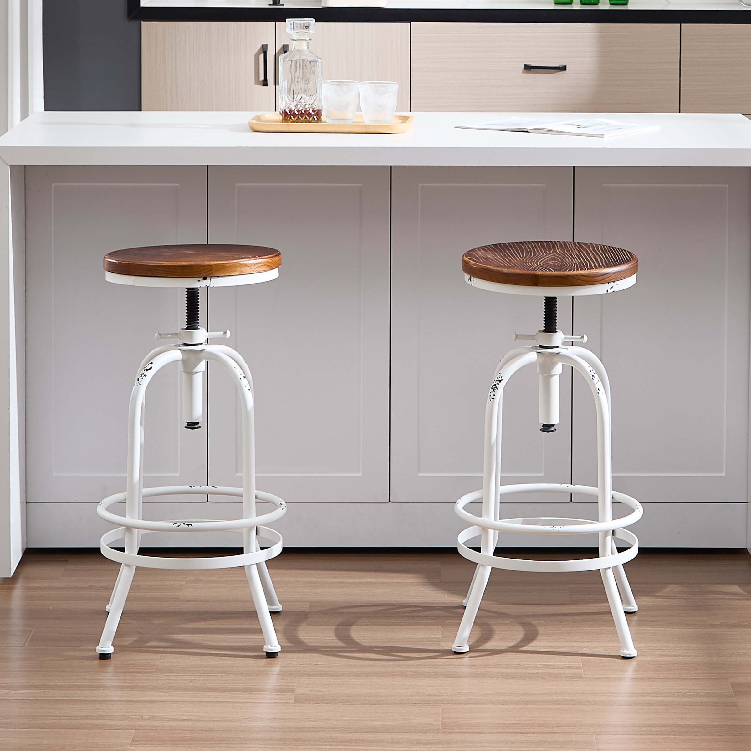 CIMOTA Industrial 26″-32″ H Adjustable Backless Bar Stools Set of 2 – XX551AB