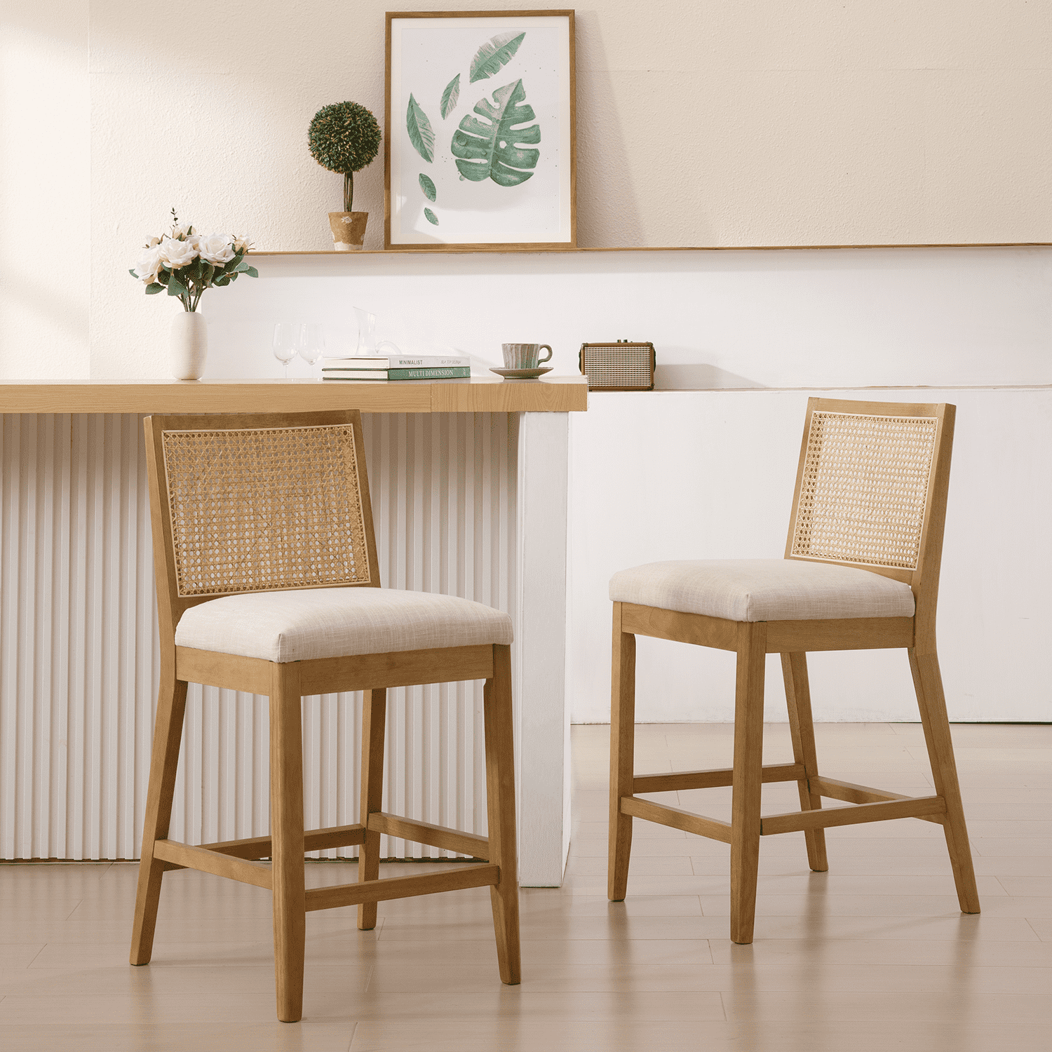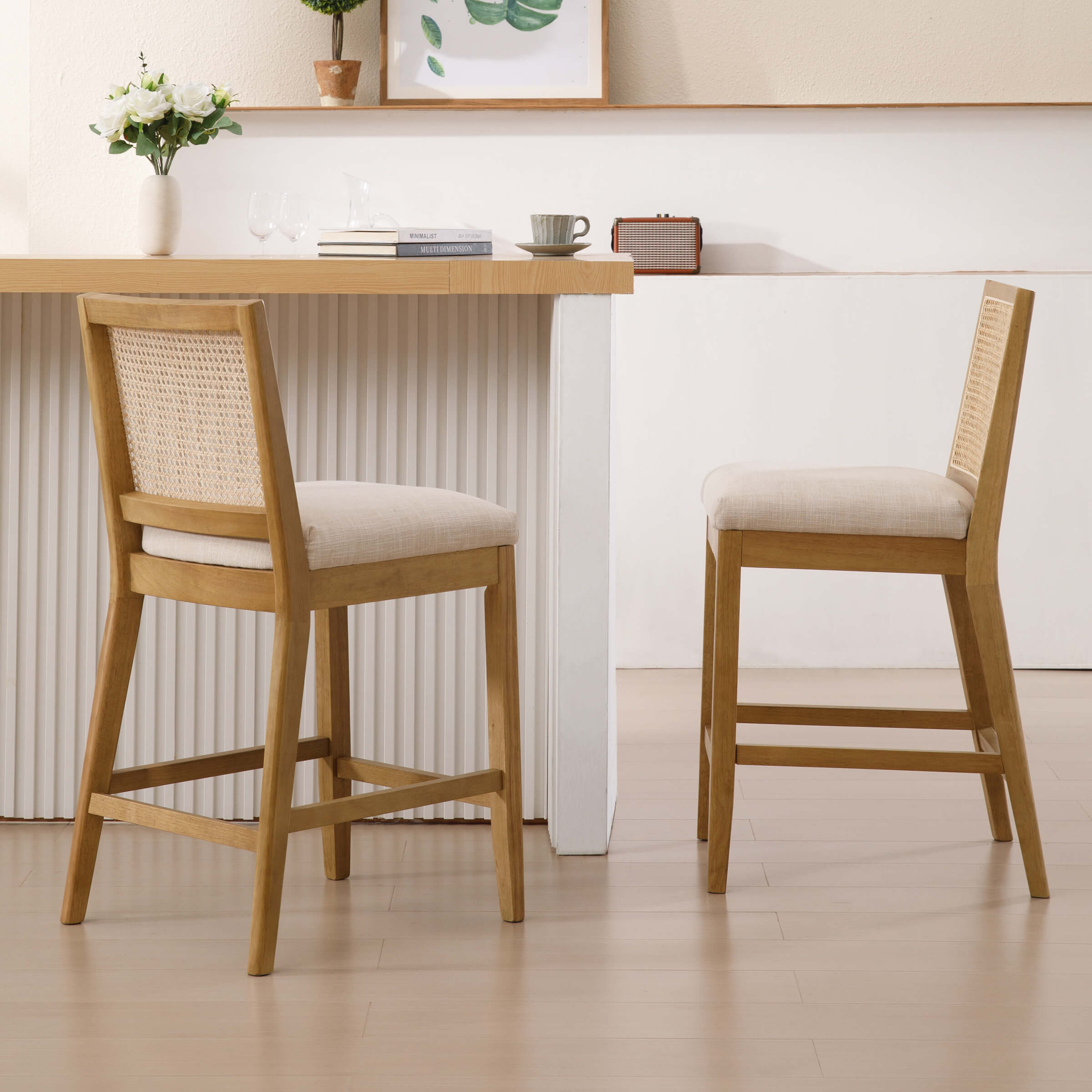 EALSON 26.5″H Rattan Back Wood Counter Stools Set of 2 – 5802CS