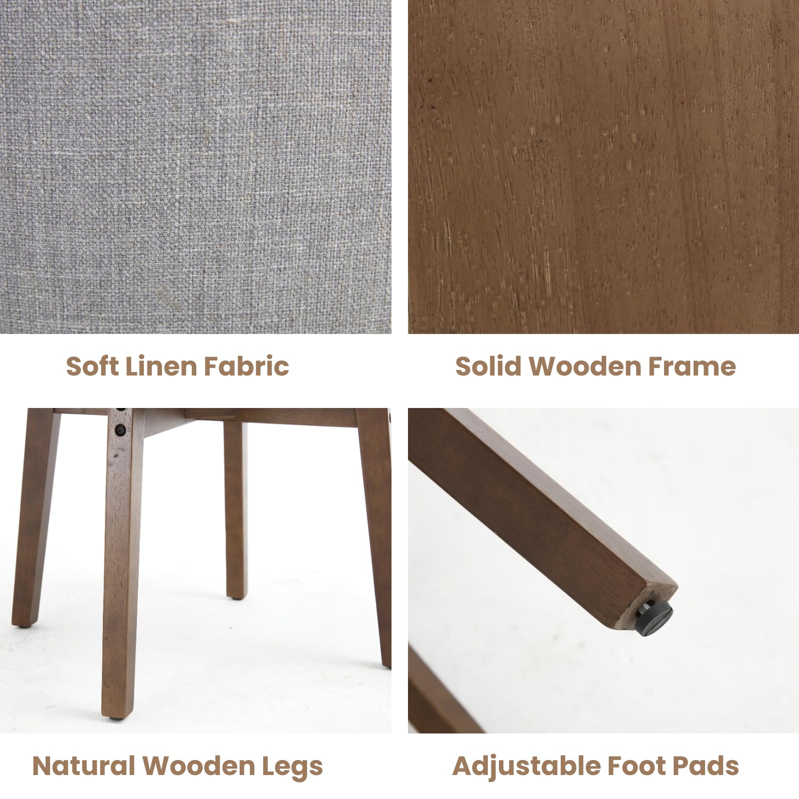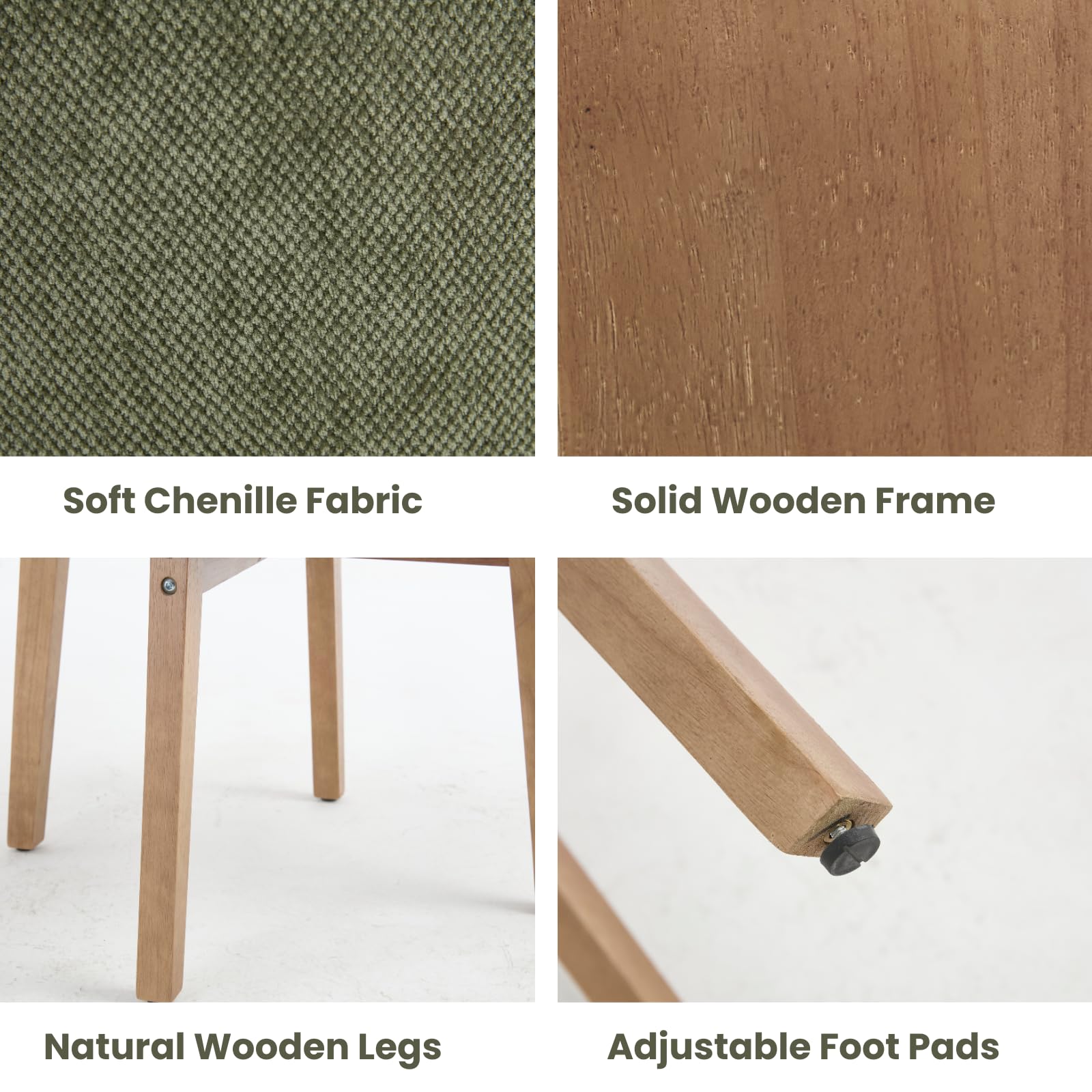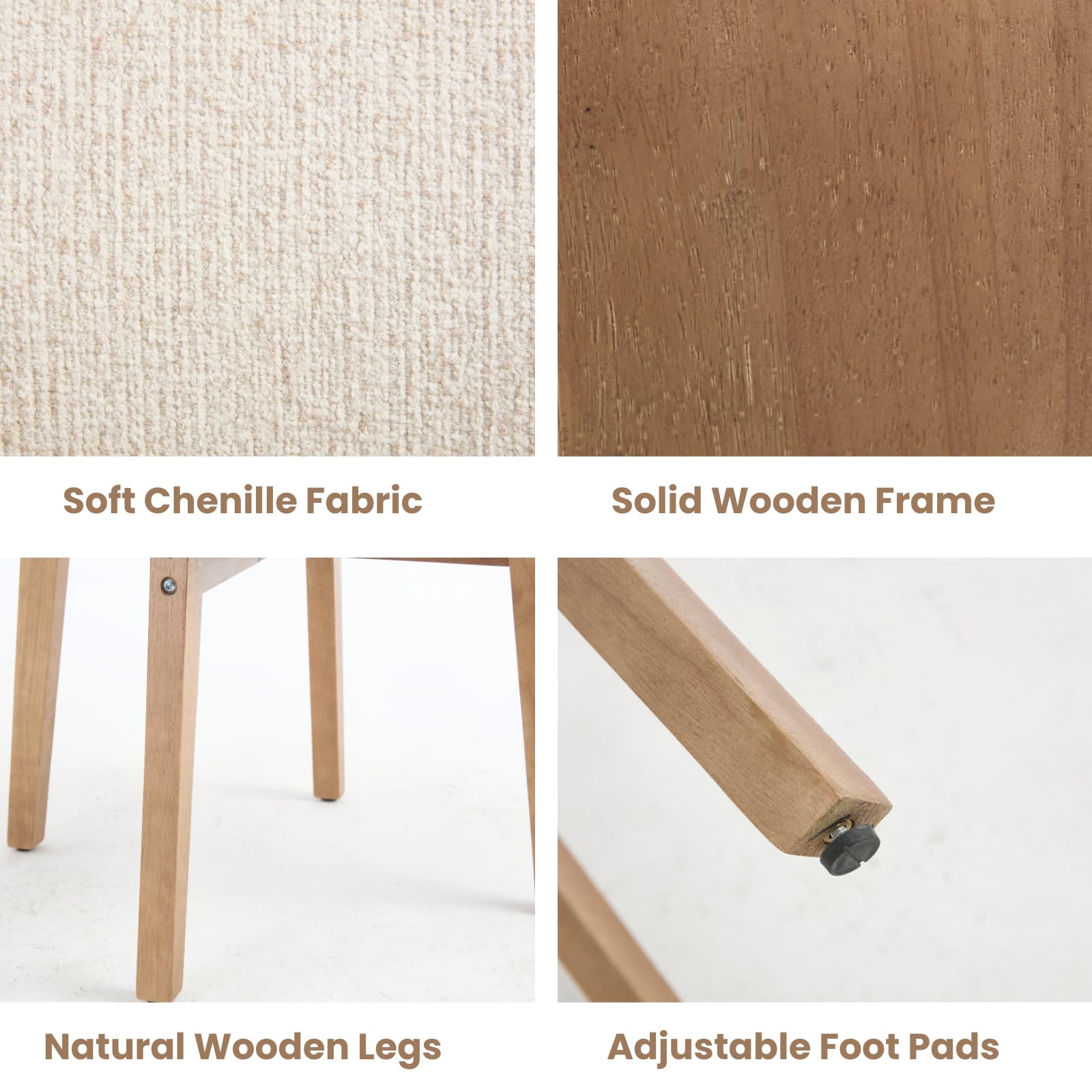 - Solid wood legs support up to 350 lbs, with adjustable feet for stability on uneven floors.