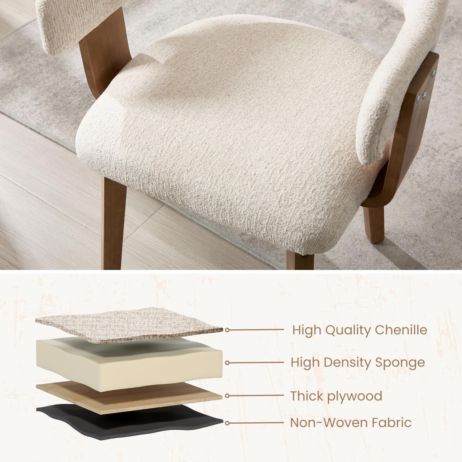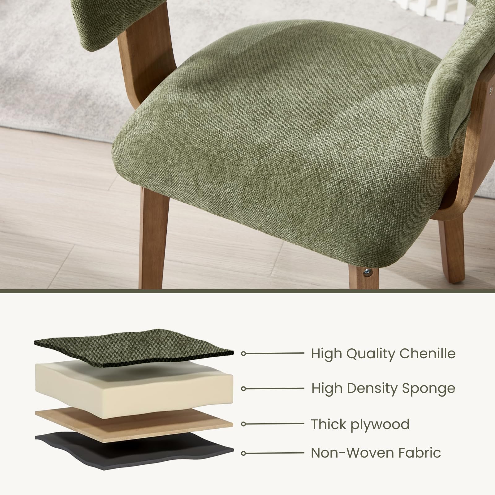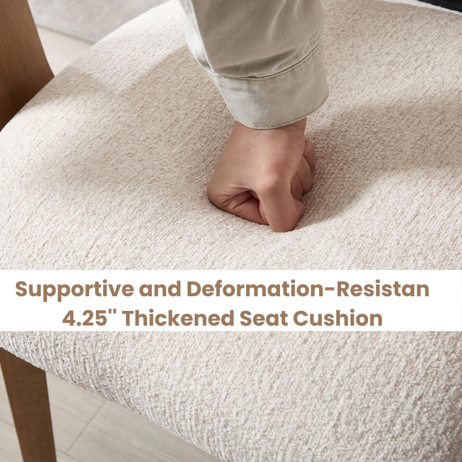 - Solid wood legs support up to 350 lbs, with adjustable feet for stability on uneven floors.