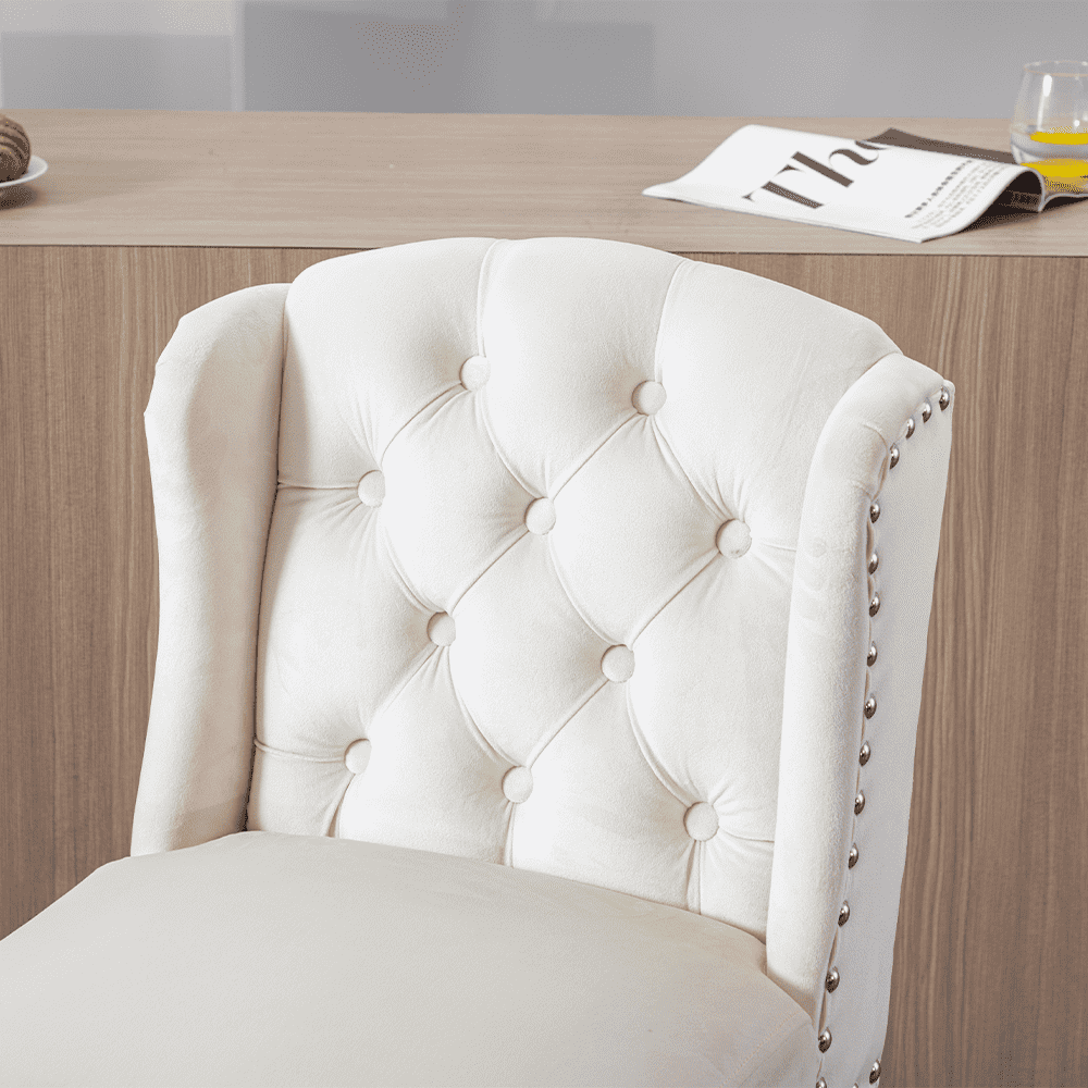 - Classic tufted backrest with button detailing adds timeless elegance.