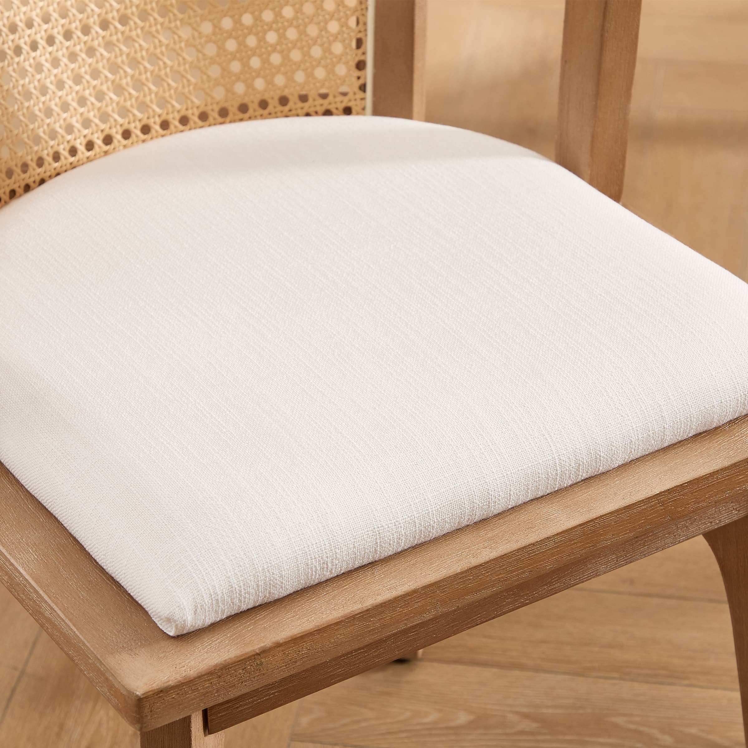 - Ergonomic semi-barrel curved cane backrest supports posture and adds rustic, natural texture.