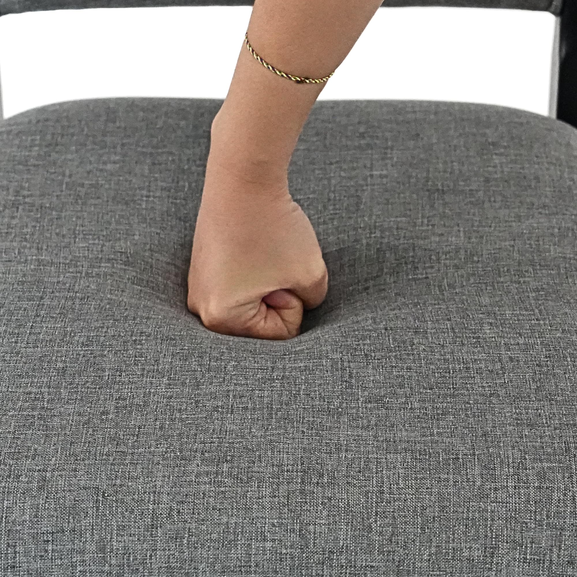 - Ladder back with 3 padded panels in linen/chenille for soft support.