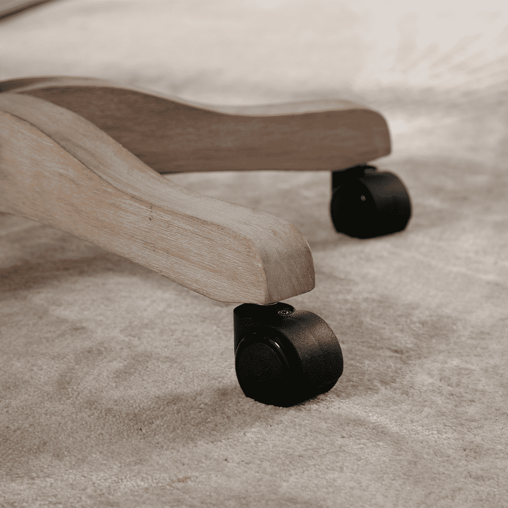 - Rolling casters with a wood-finished base for smooth mobility