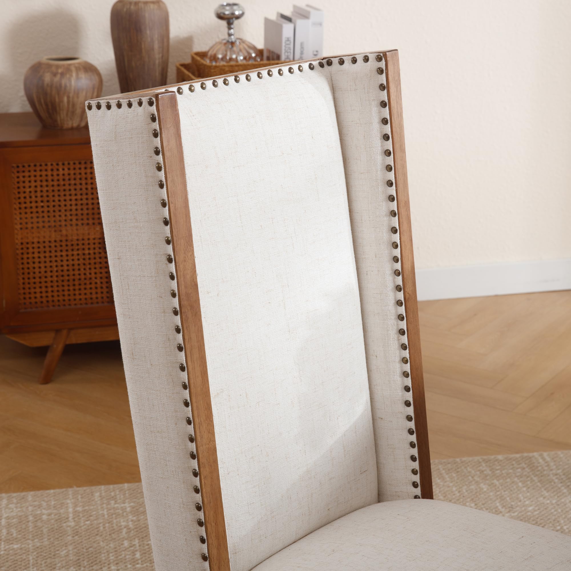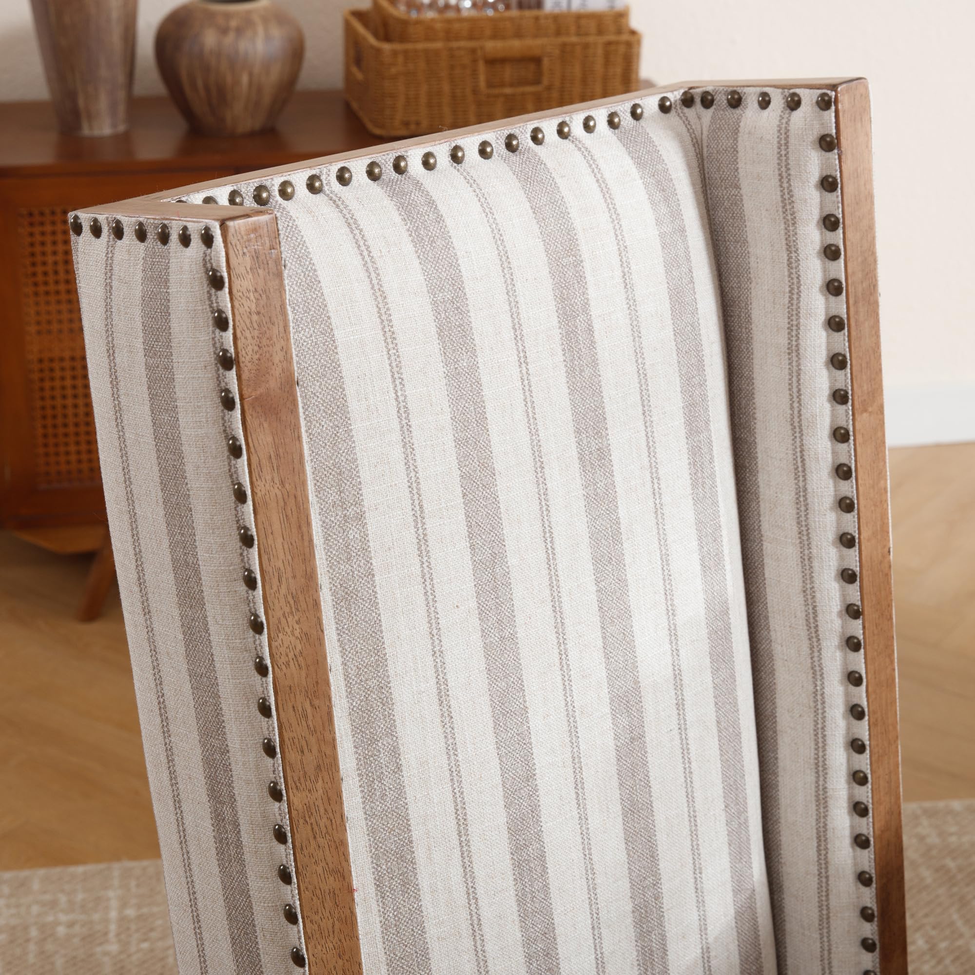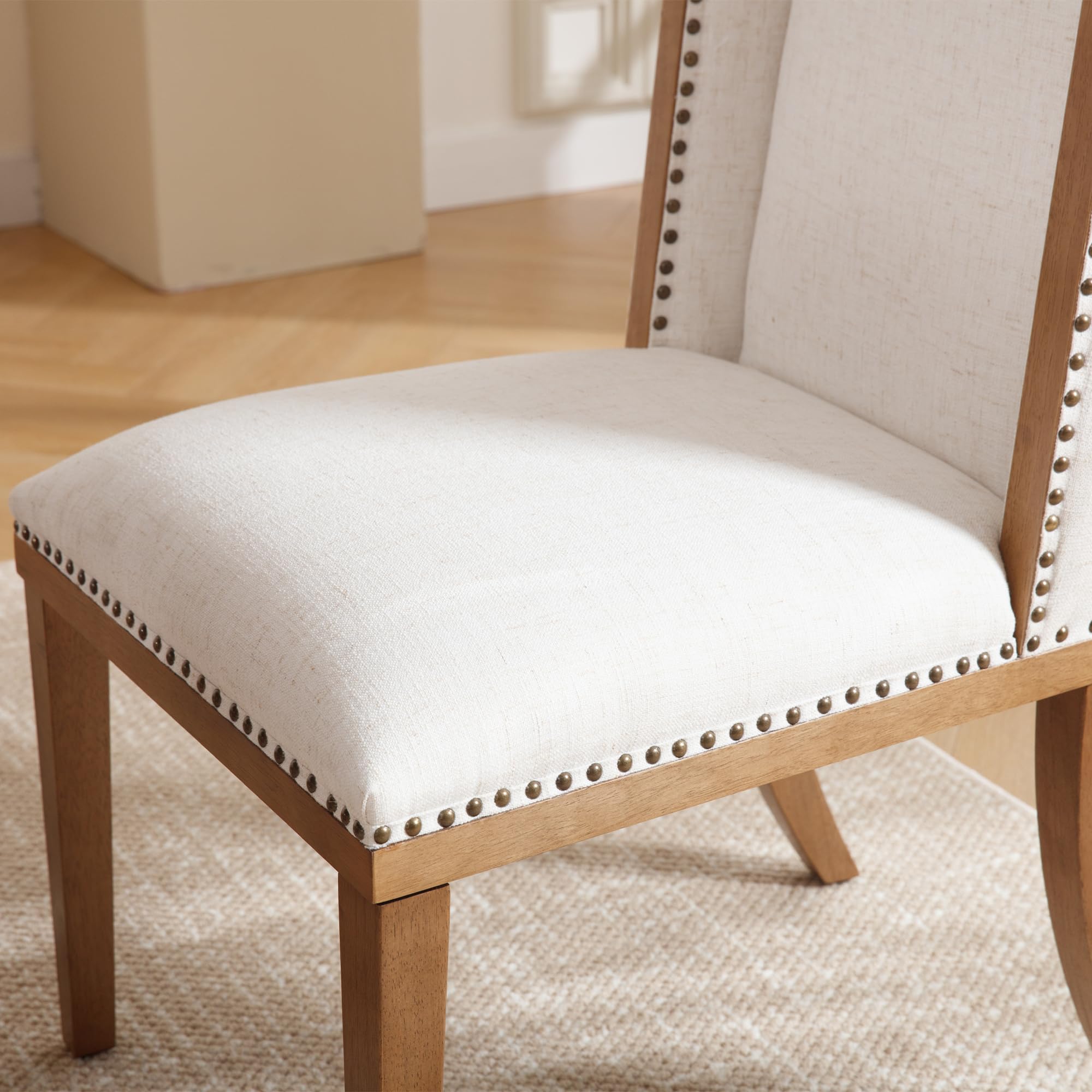 Elegant Farmhouse StyleLinen Padded SeatHigh Wing BackClassic Rivet DecorationProduct Dimensions
