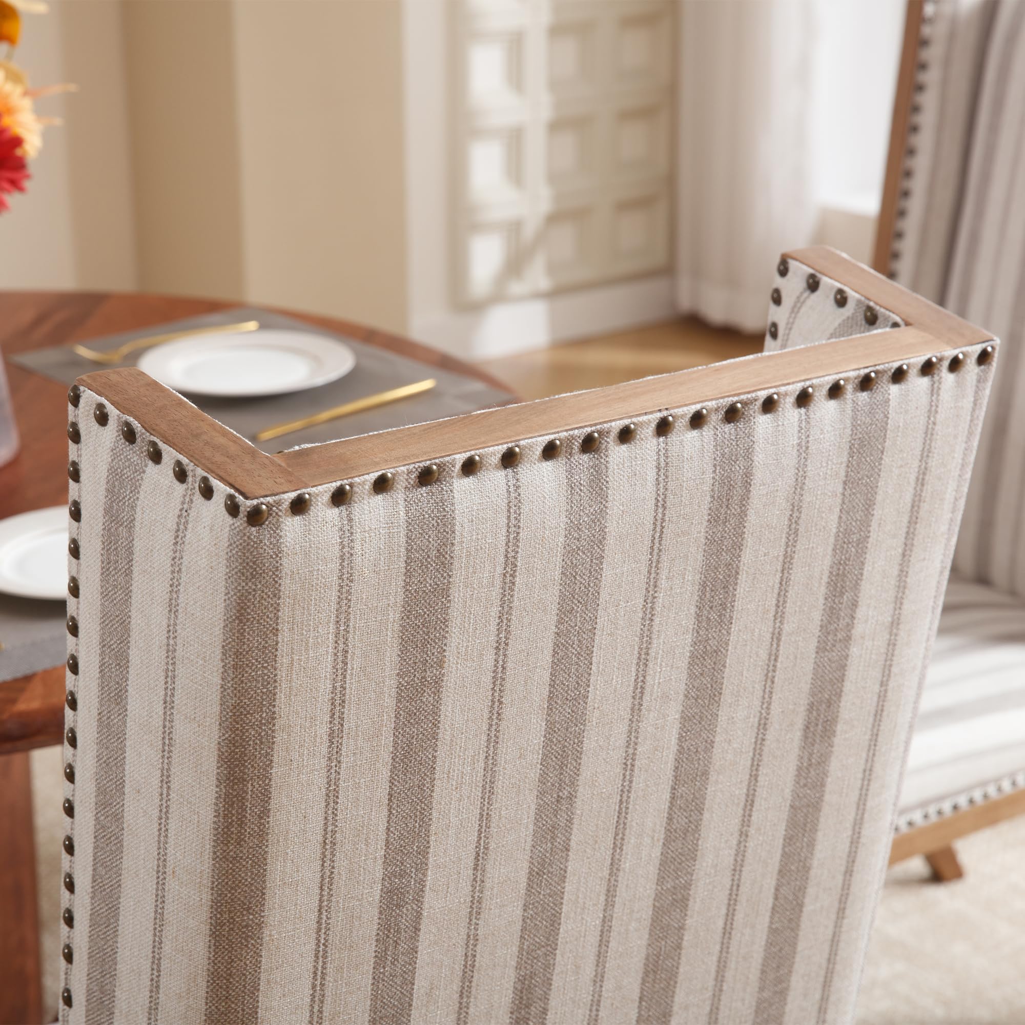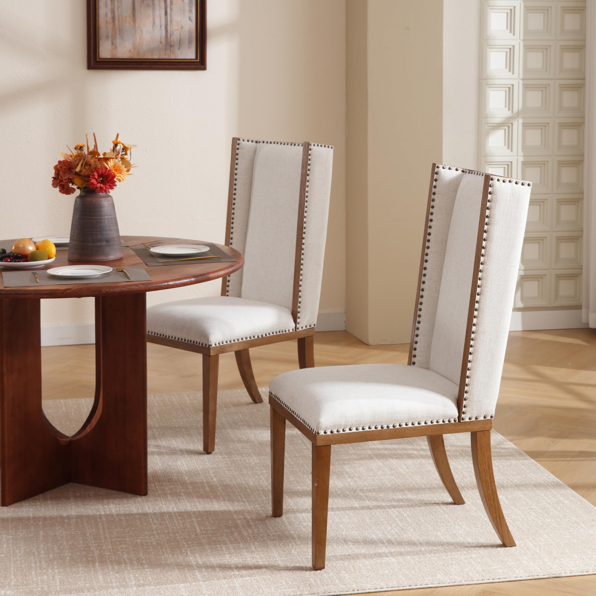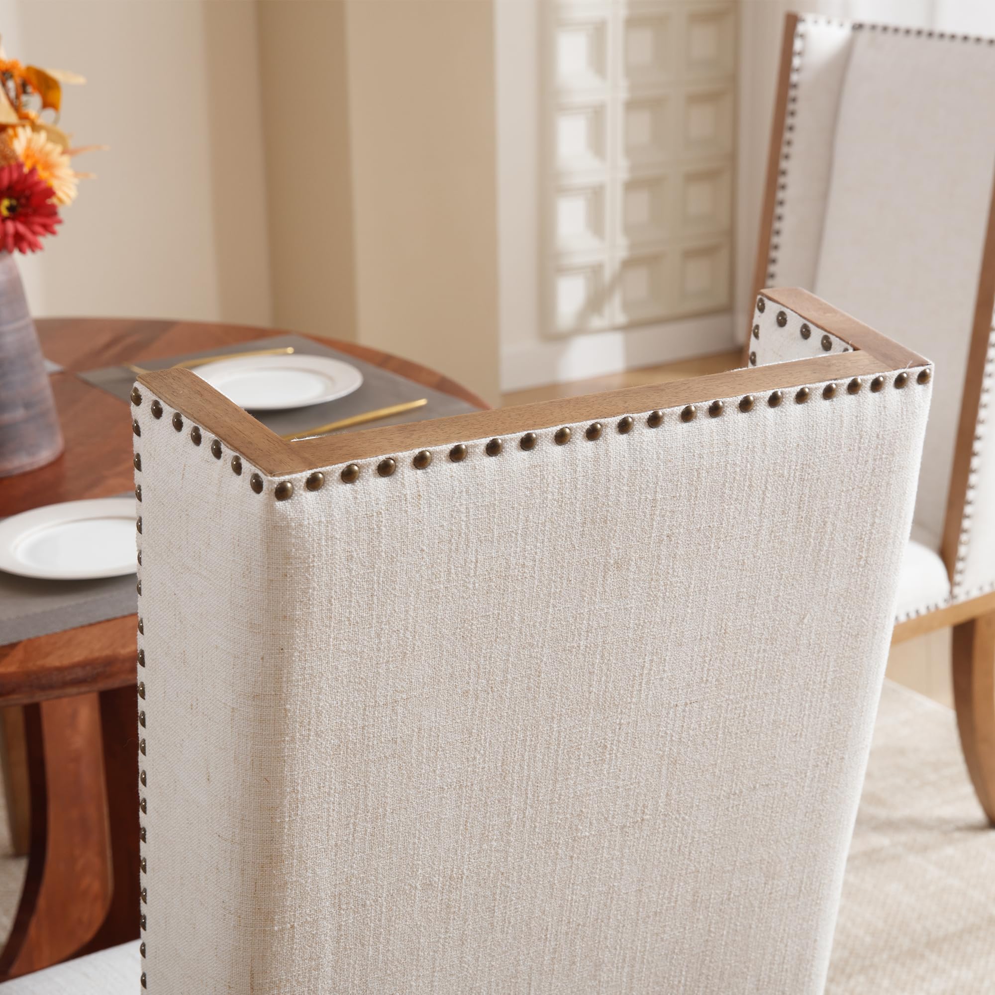 Elegant Farmhouse StyleLinen Padded SeatHigh Wing BackClassic Rivet DecorationProduct Dimensions