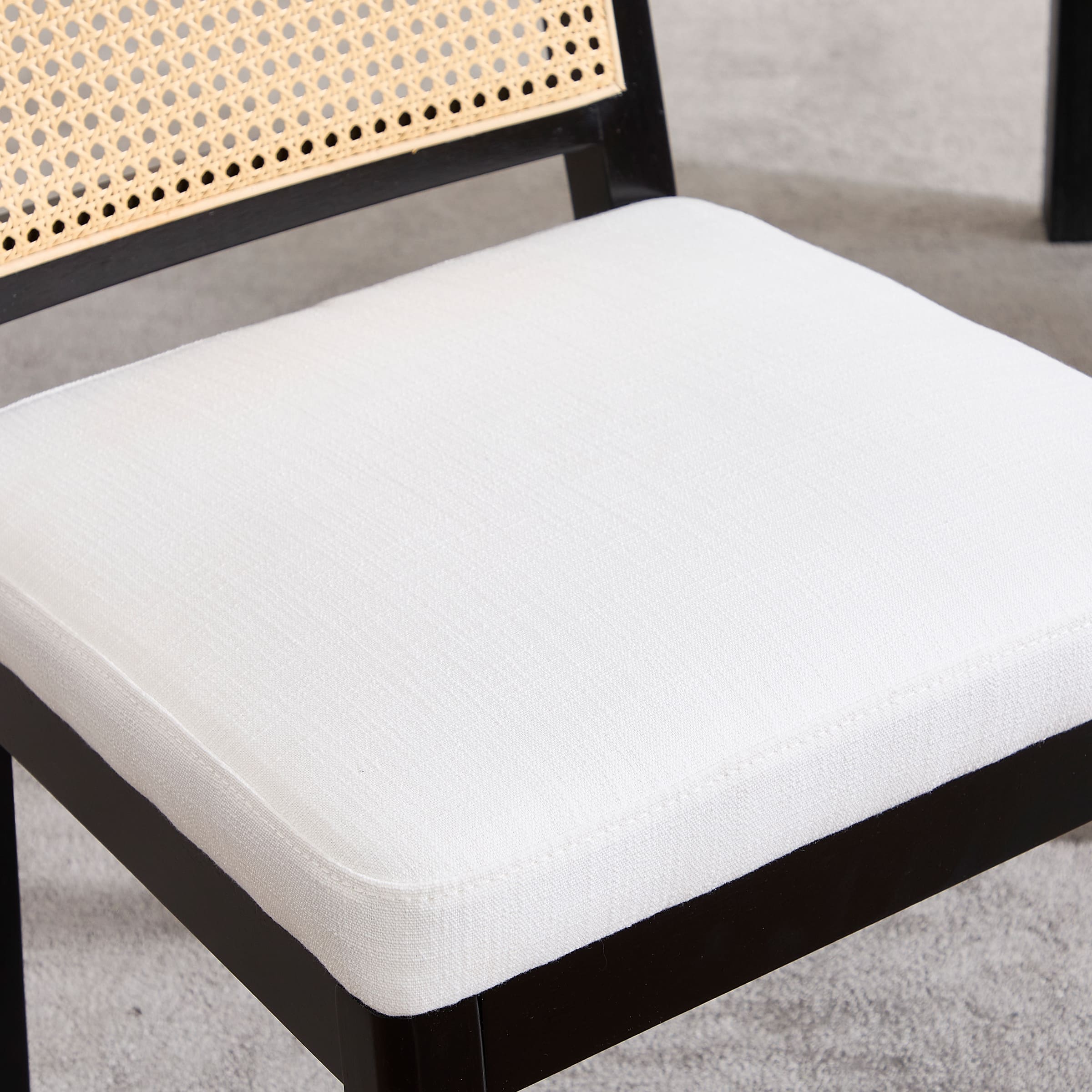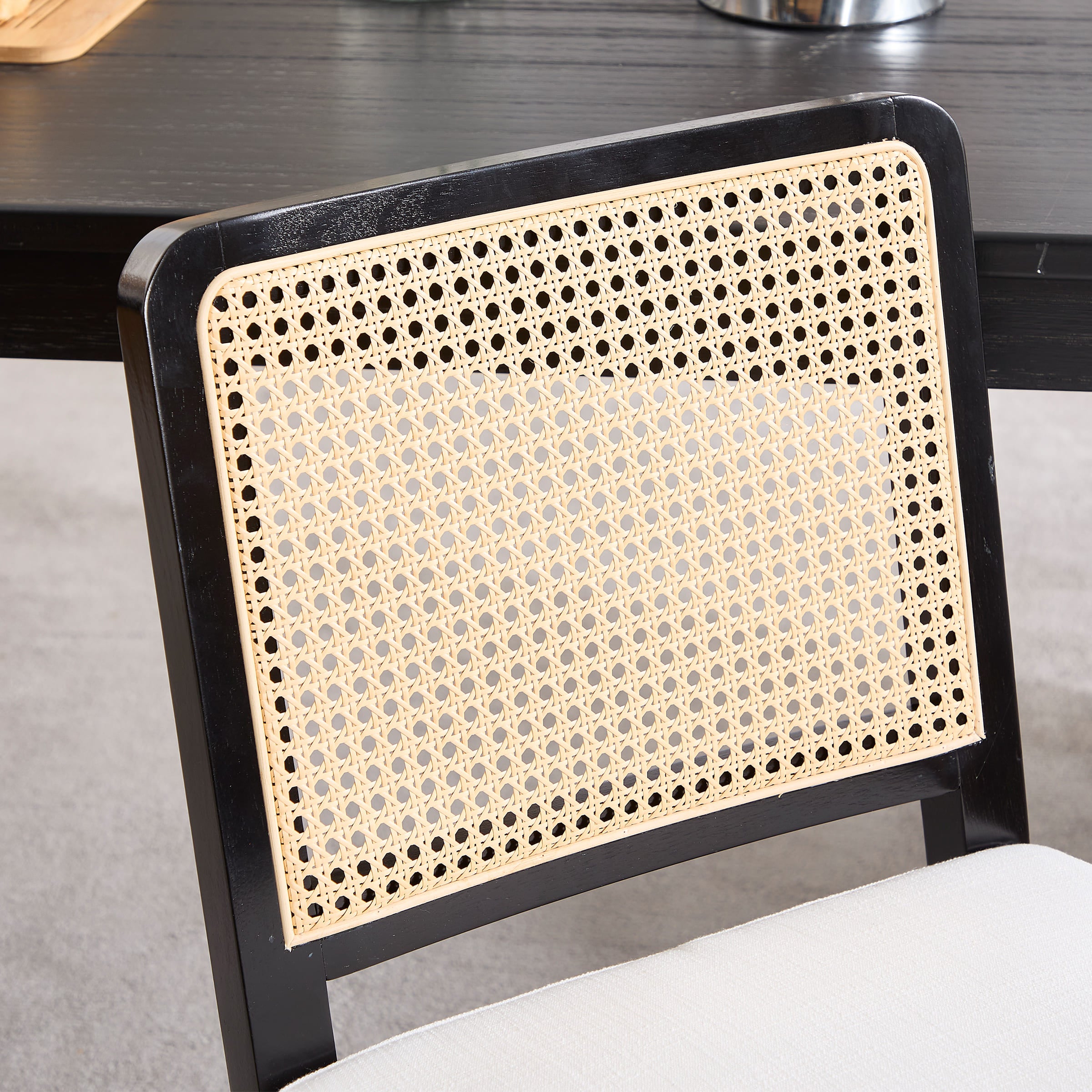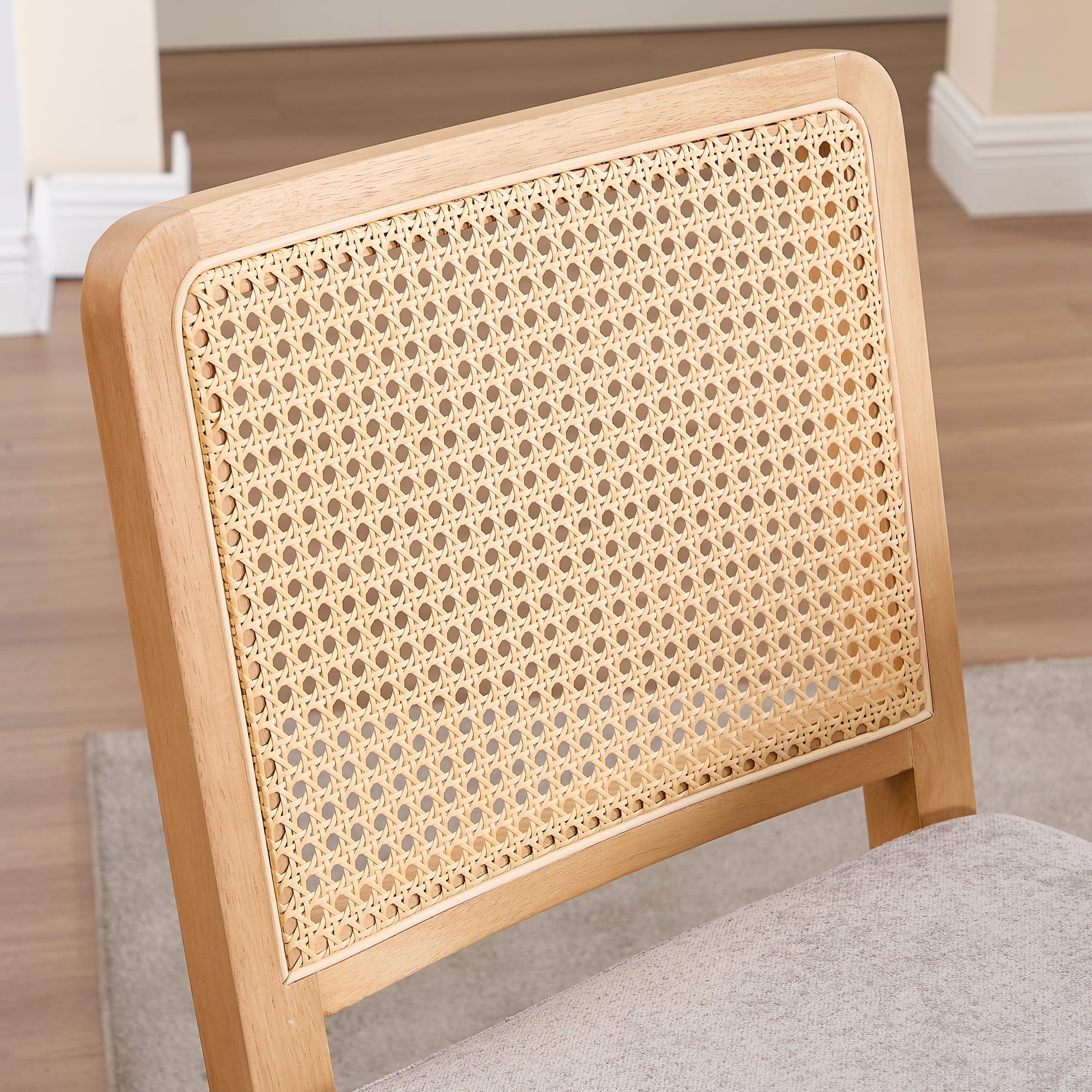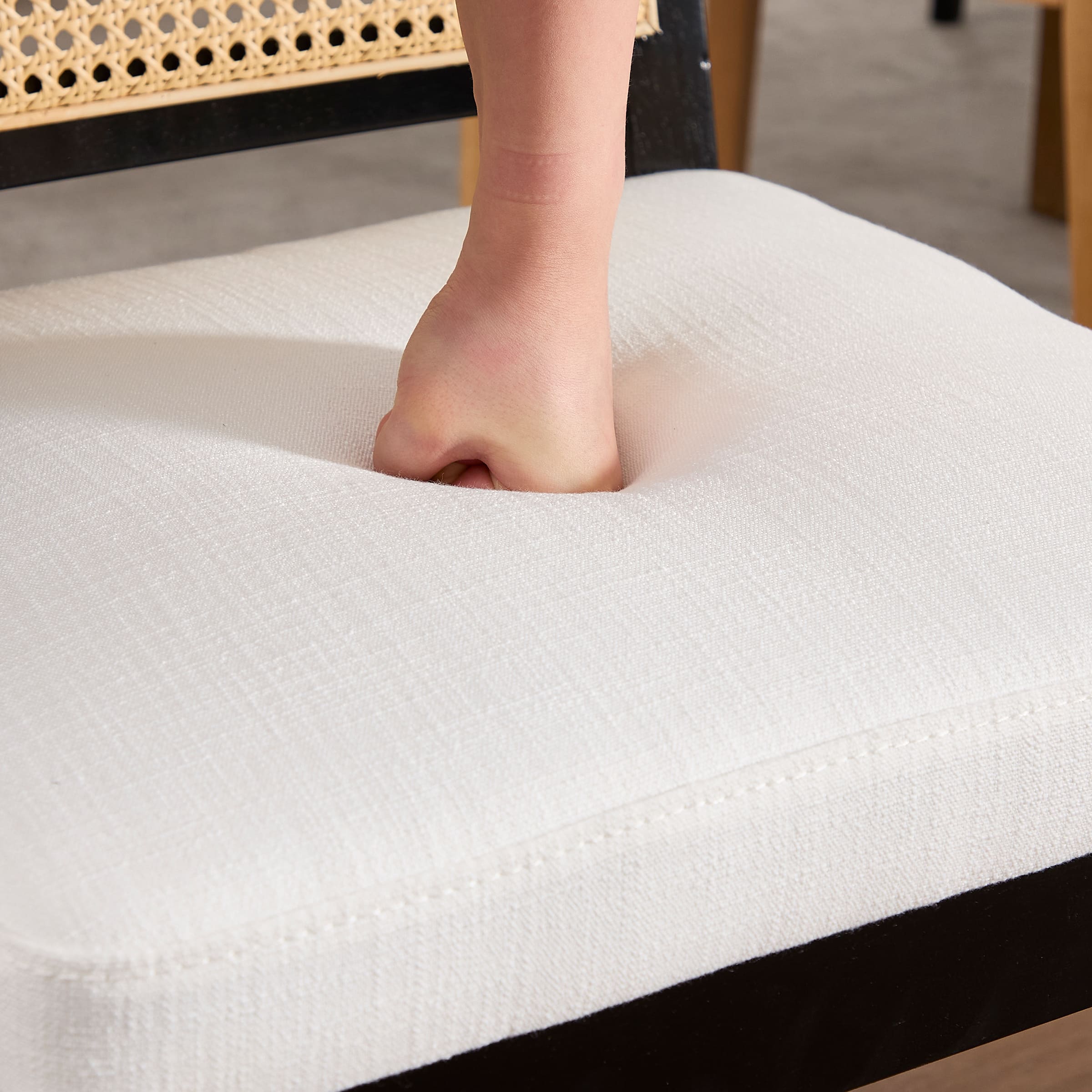 - Woven faux rattan backrest is breathable, elastic, and smooth to the touch.