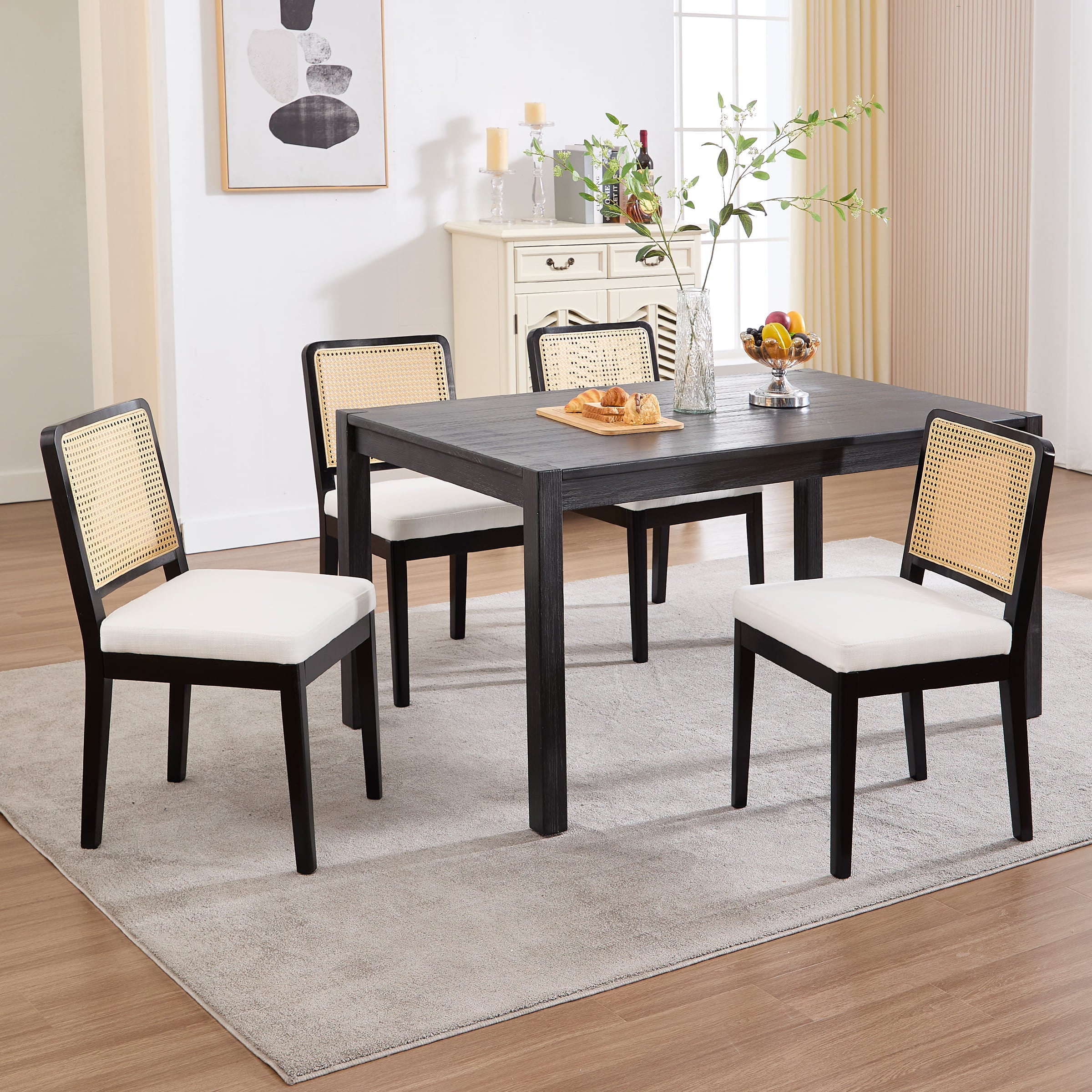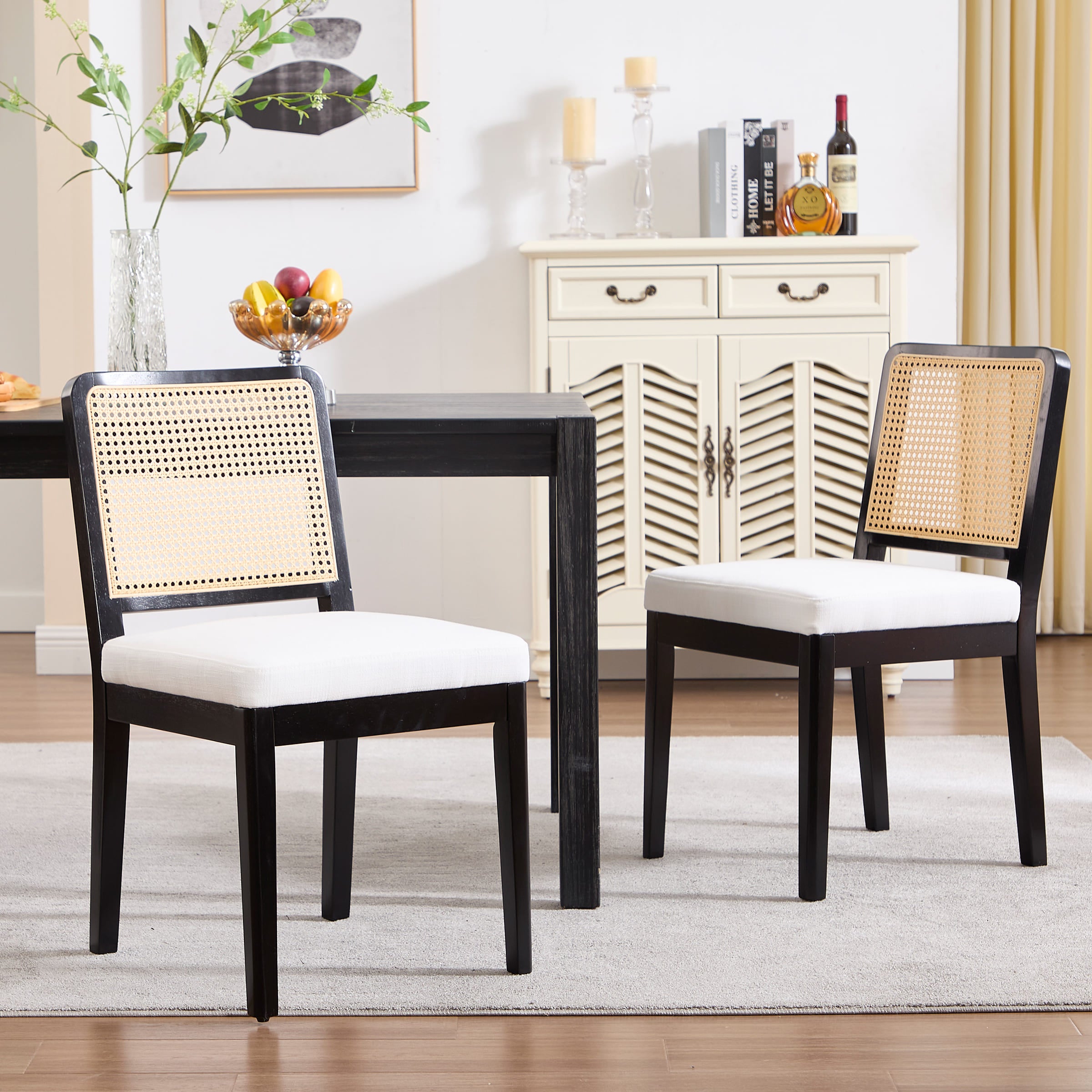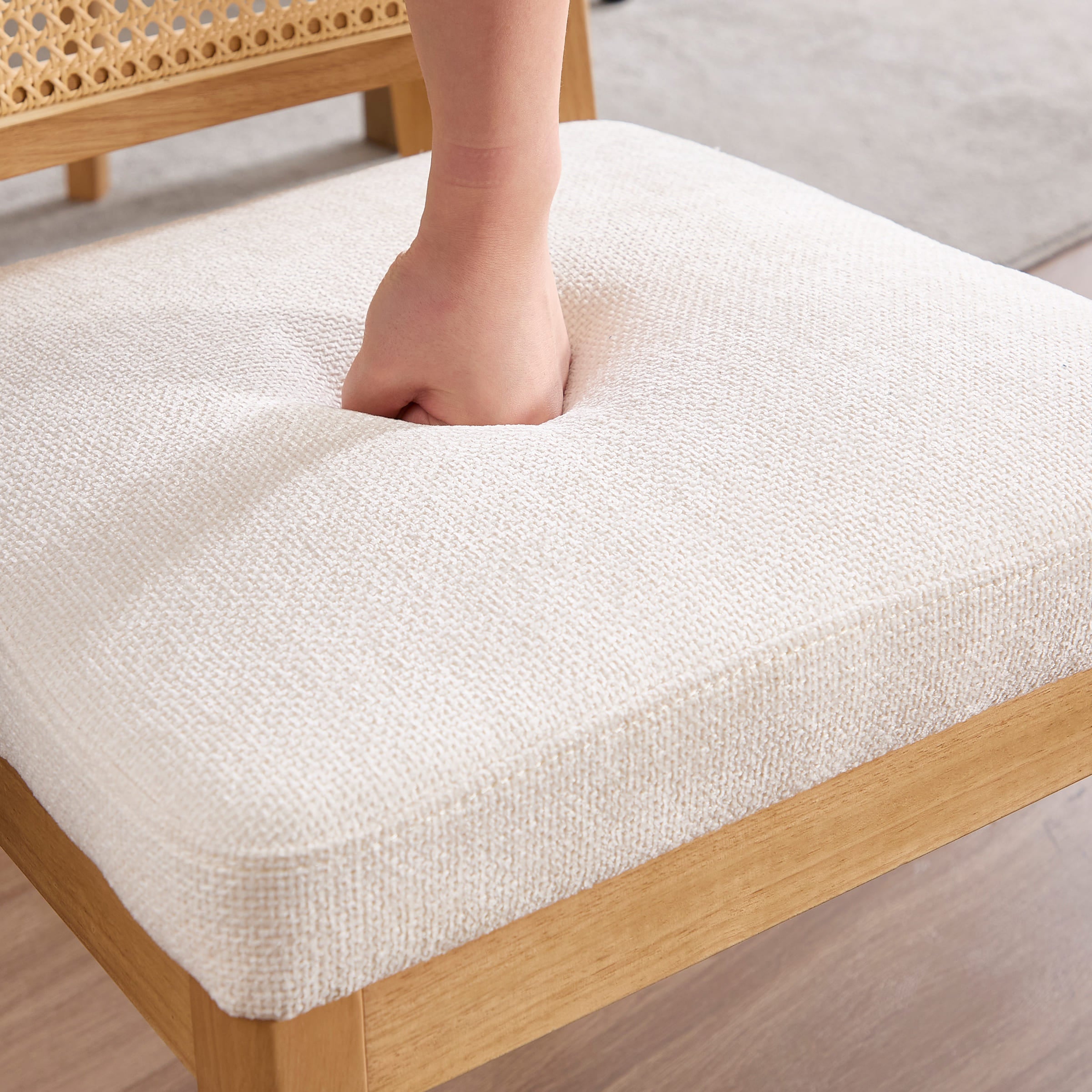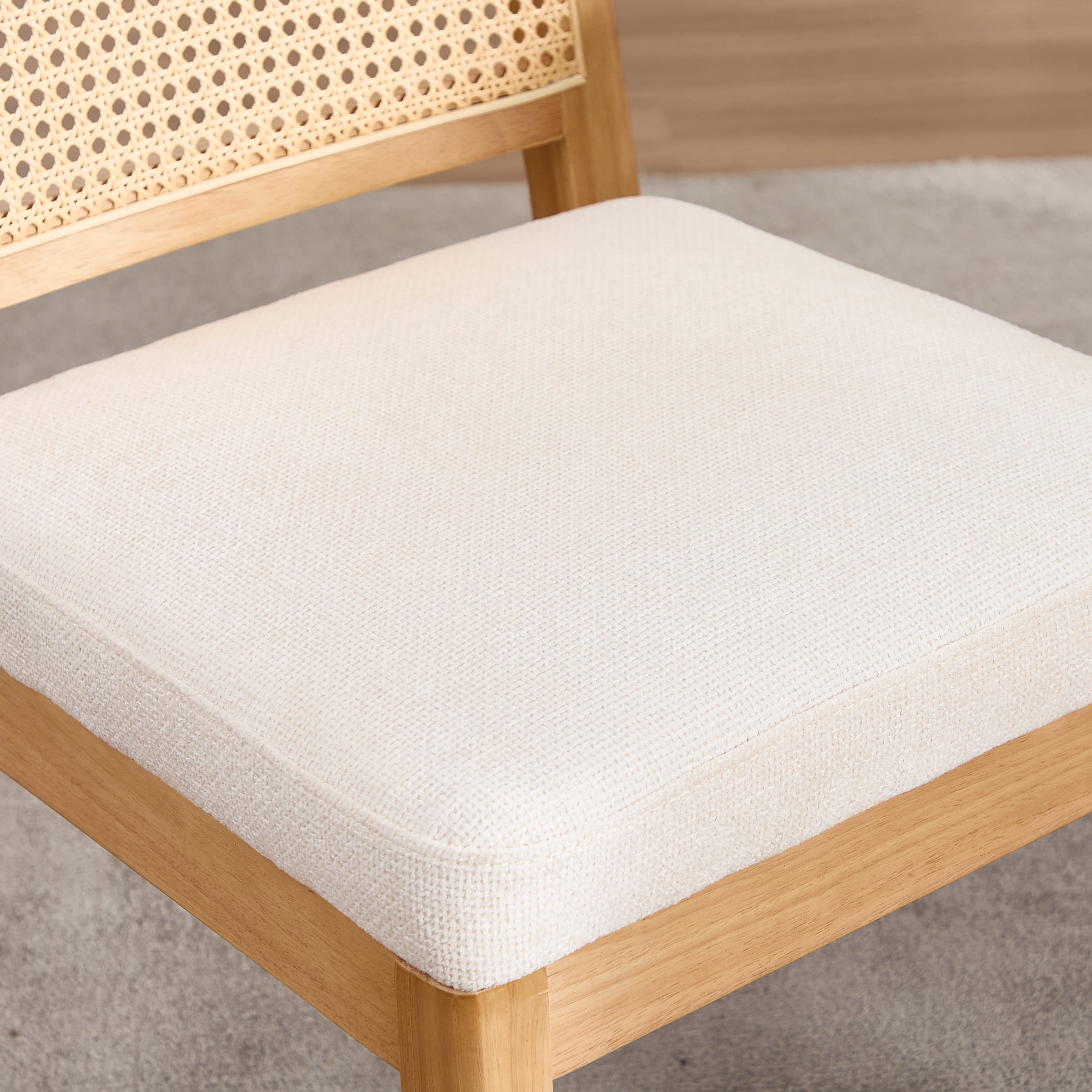 - Woven faux rattan backrest is breathable, elastic, and smooth to the touch.