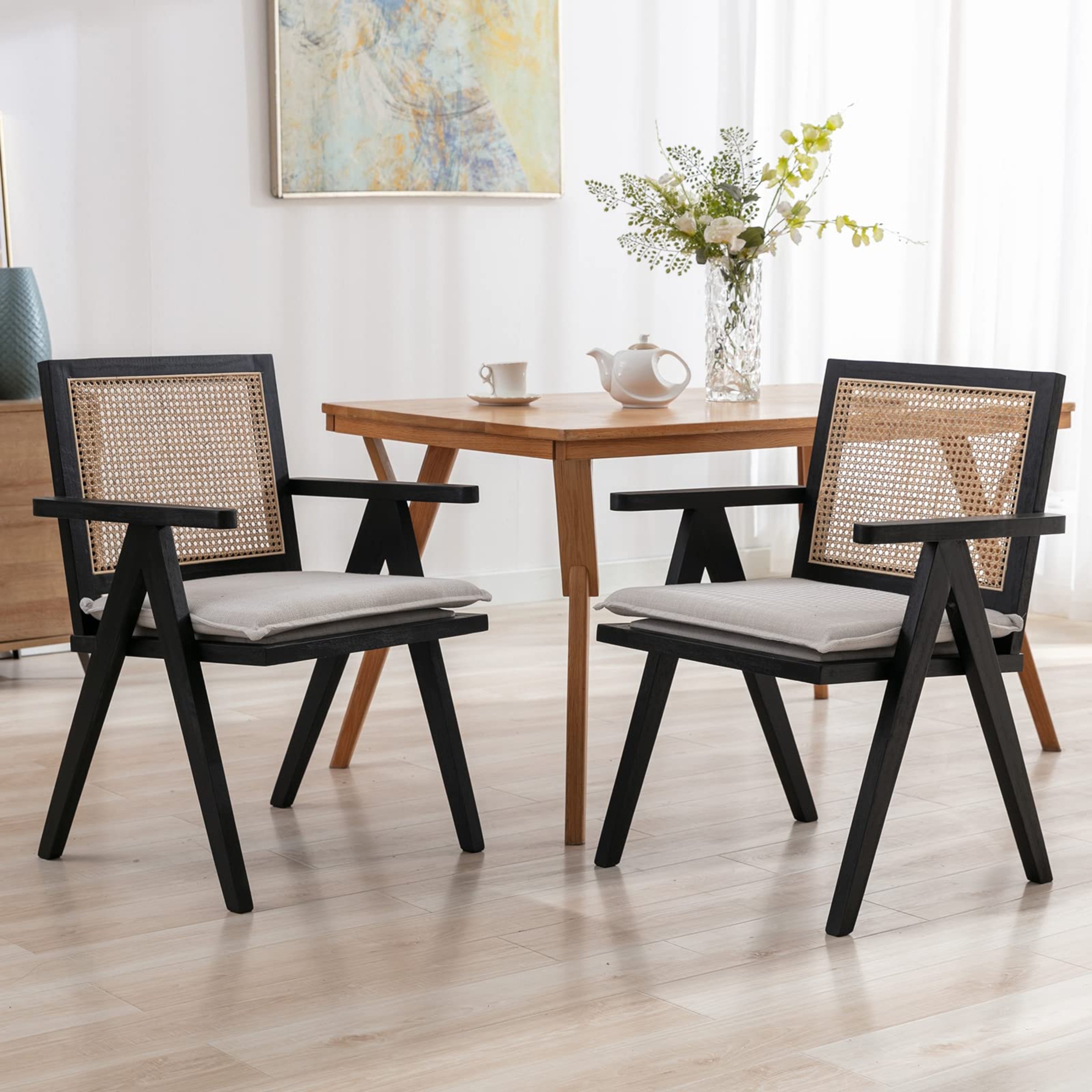 French Country Rattan ChairMulti Functional Corner ChairDetachable Seat CushionElegant Rattan BackClassic Inverted V LegsProduct Dimensions