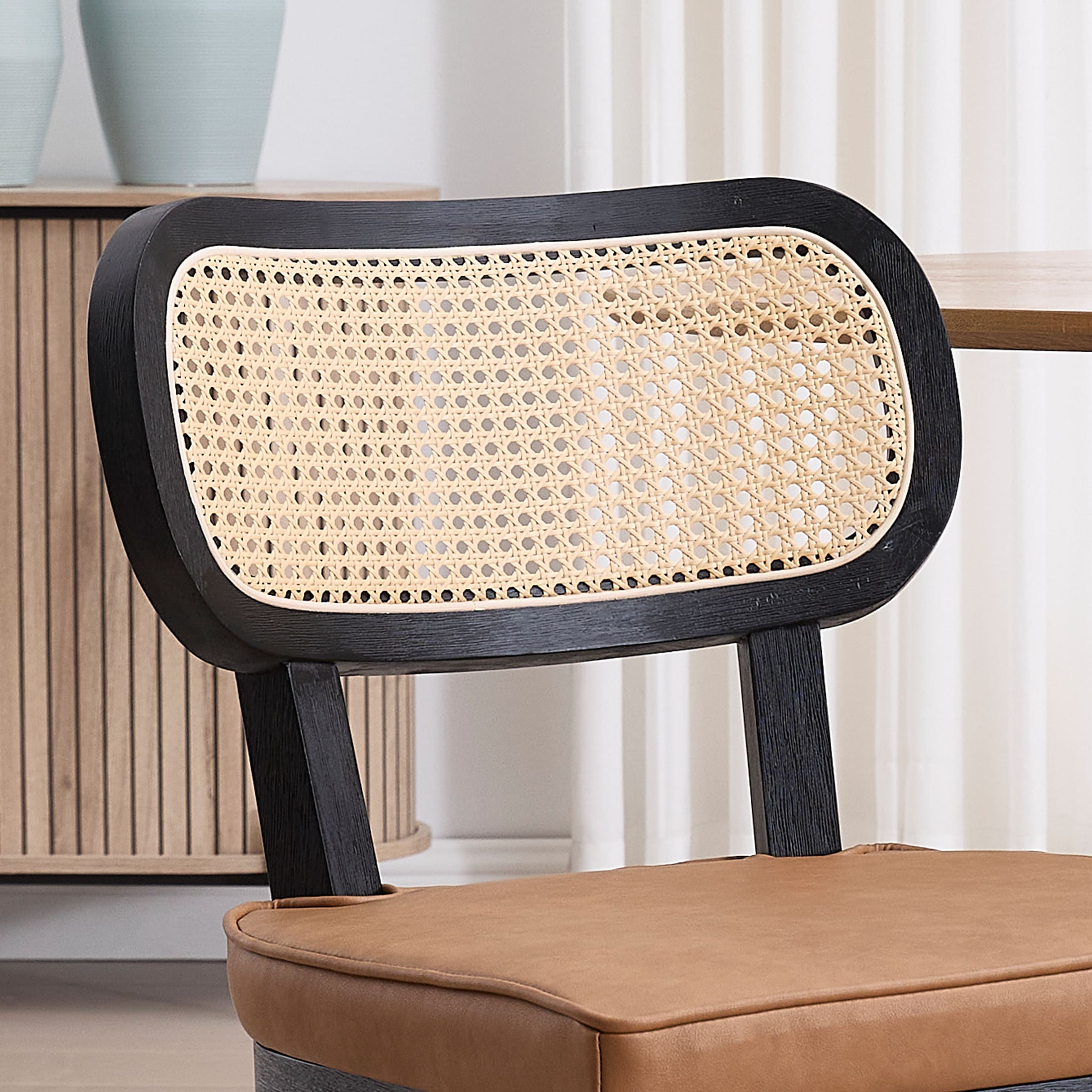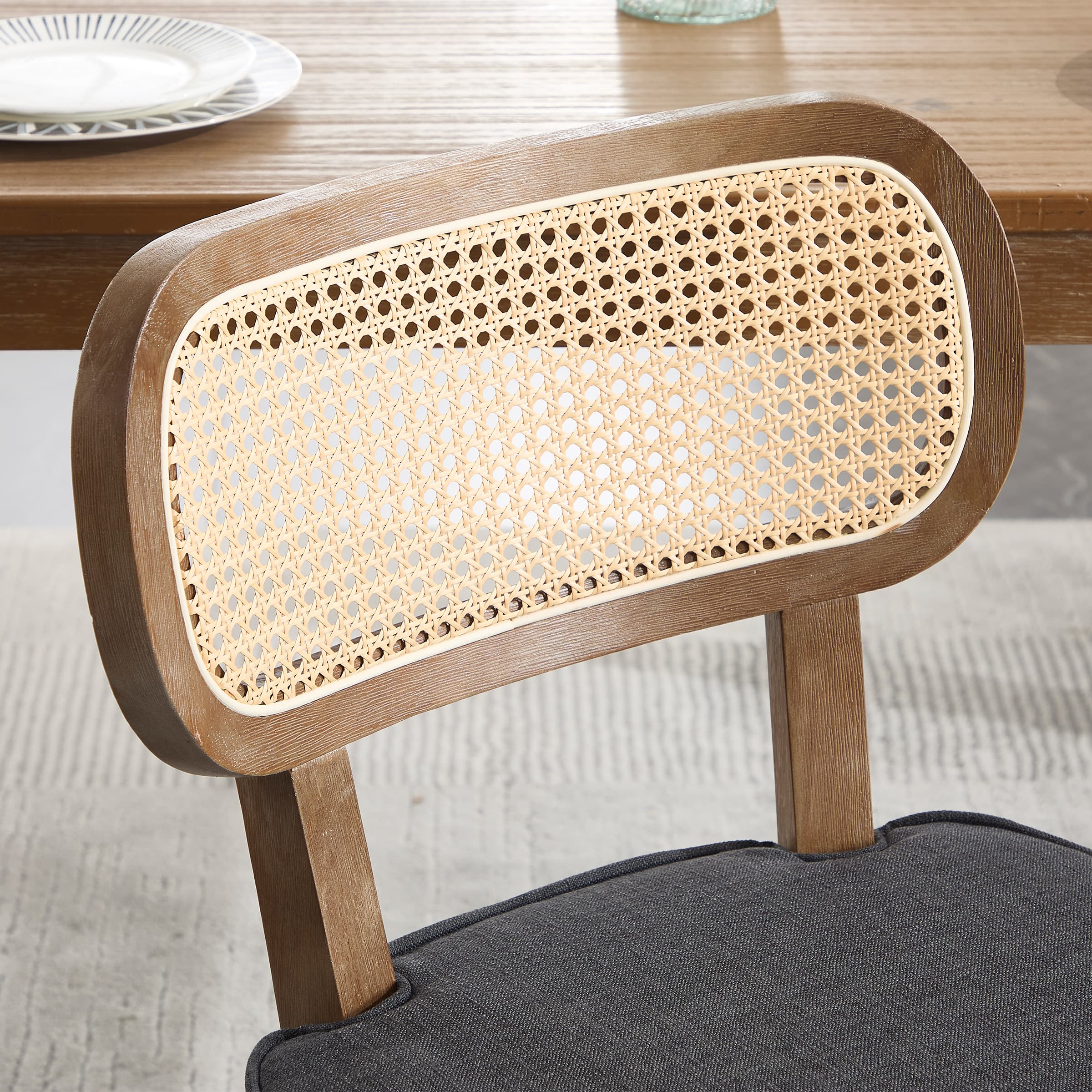 Vintage Aesthetics & Contemporary StyleComfortable & Thick CushionModern Rattan BackSturdy & Protective LegsProduct Dimensions