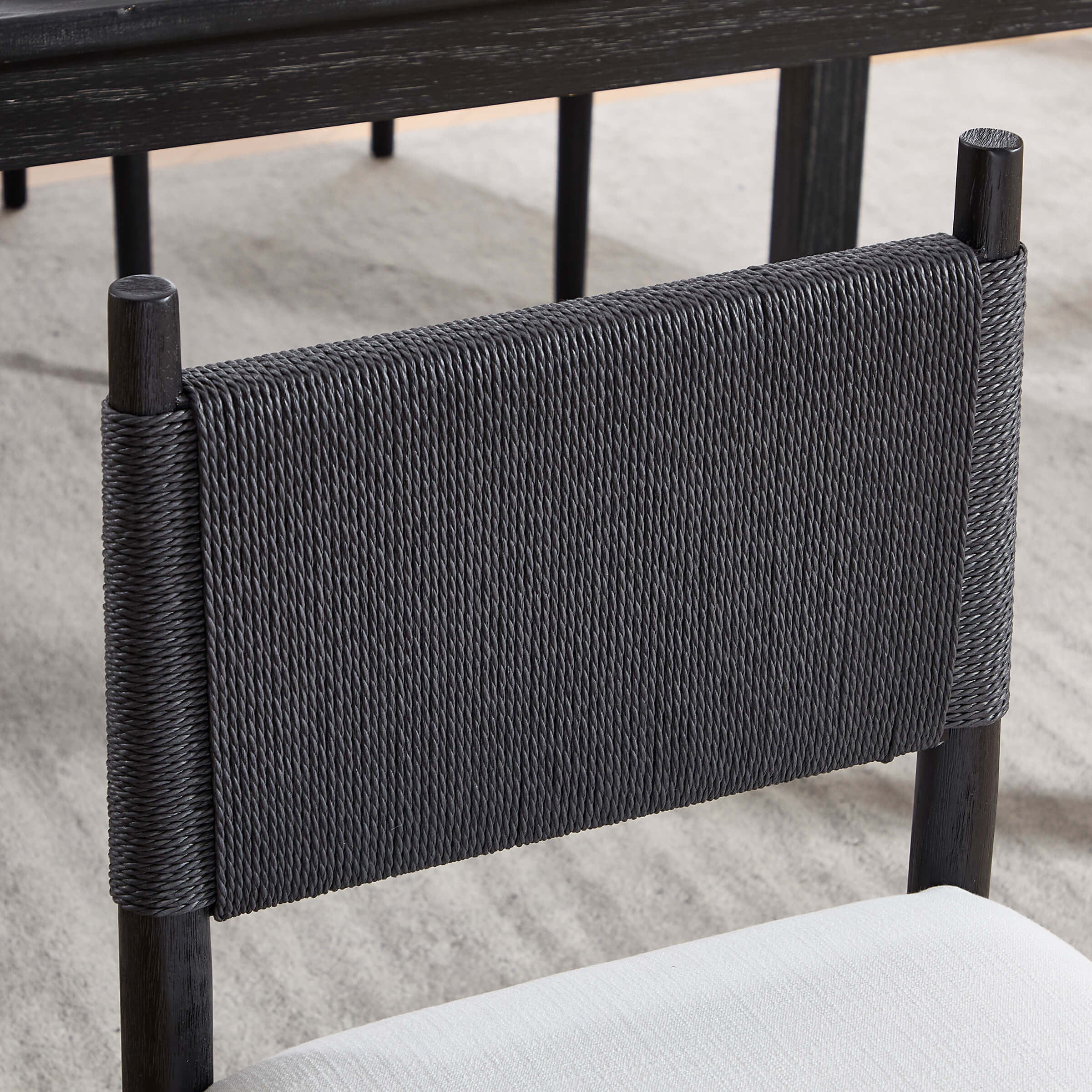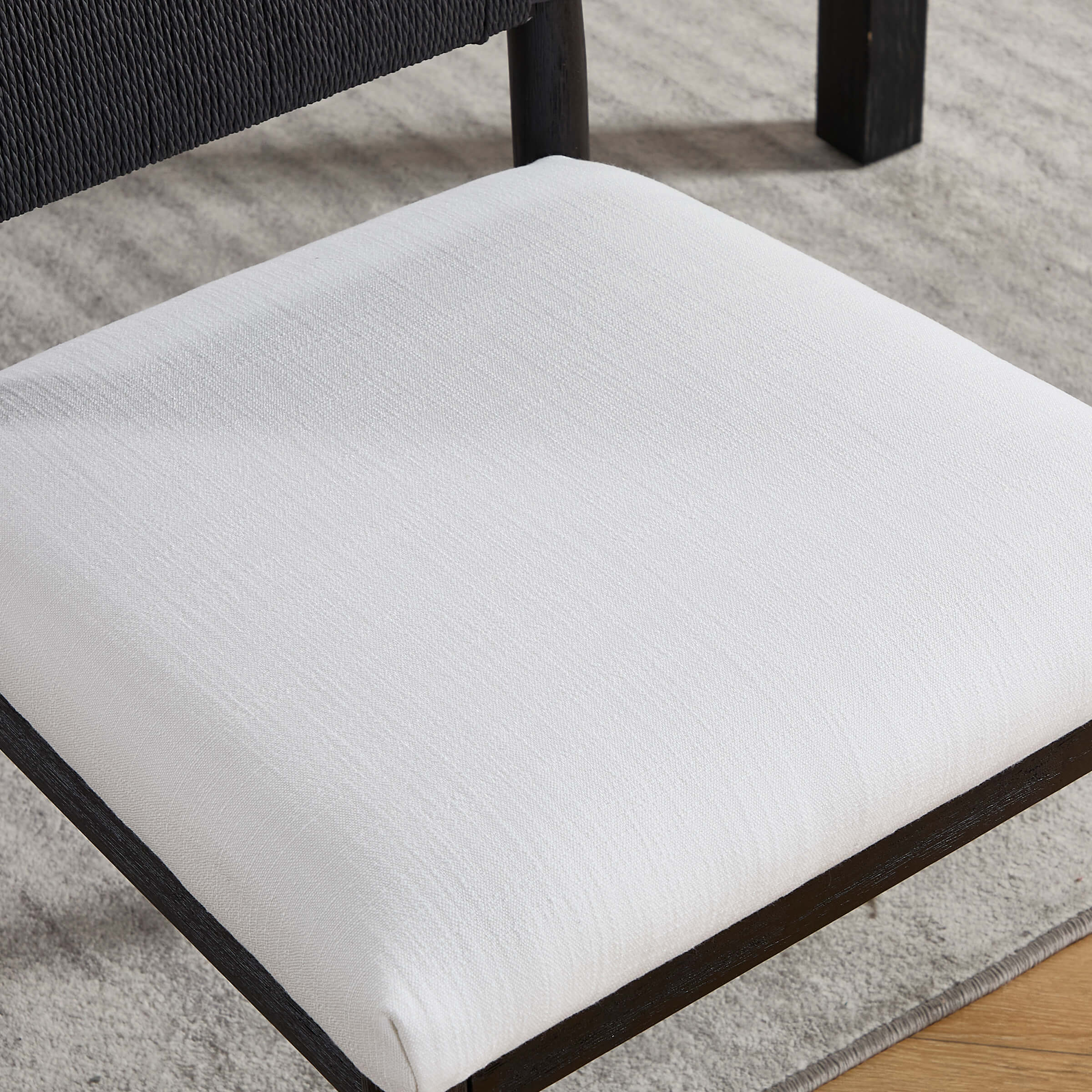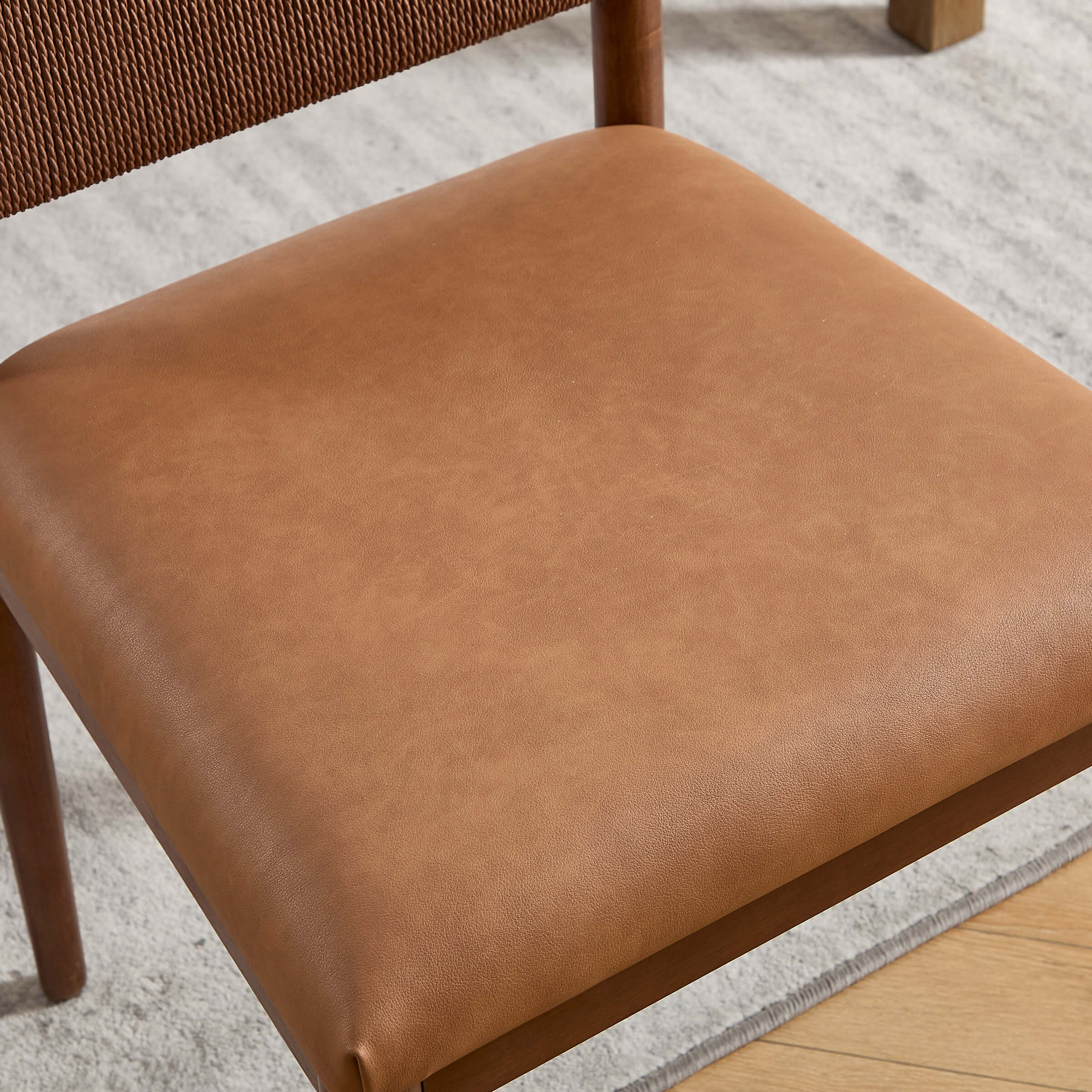 - Handwoven hemp rope backrest adds mid-century and rustic charm.