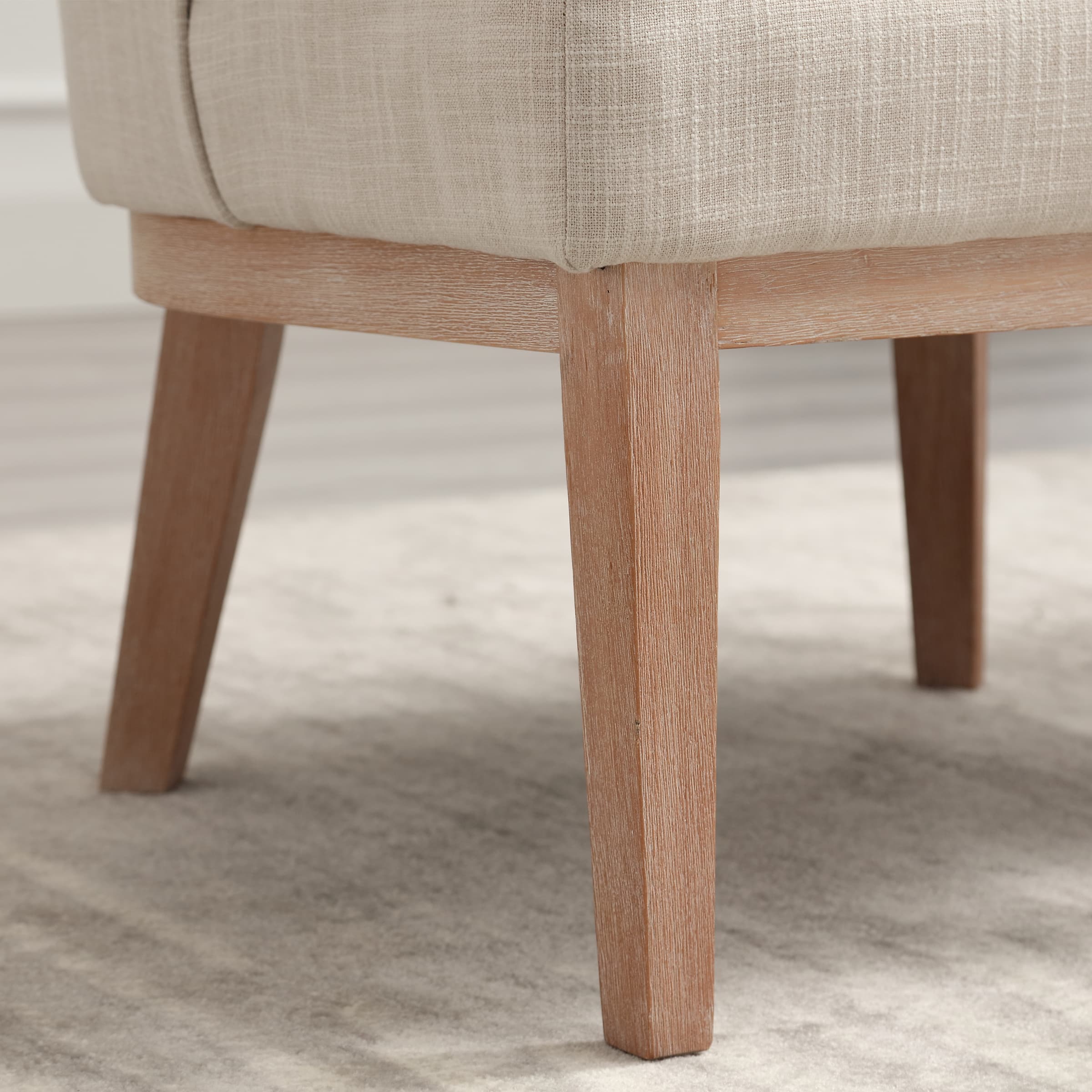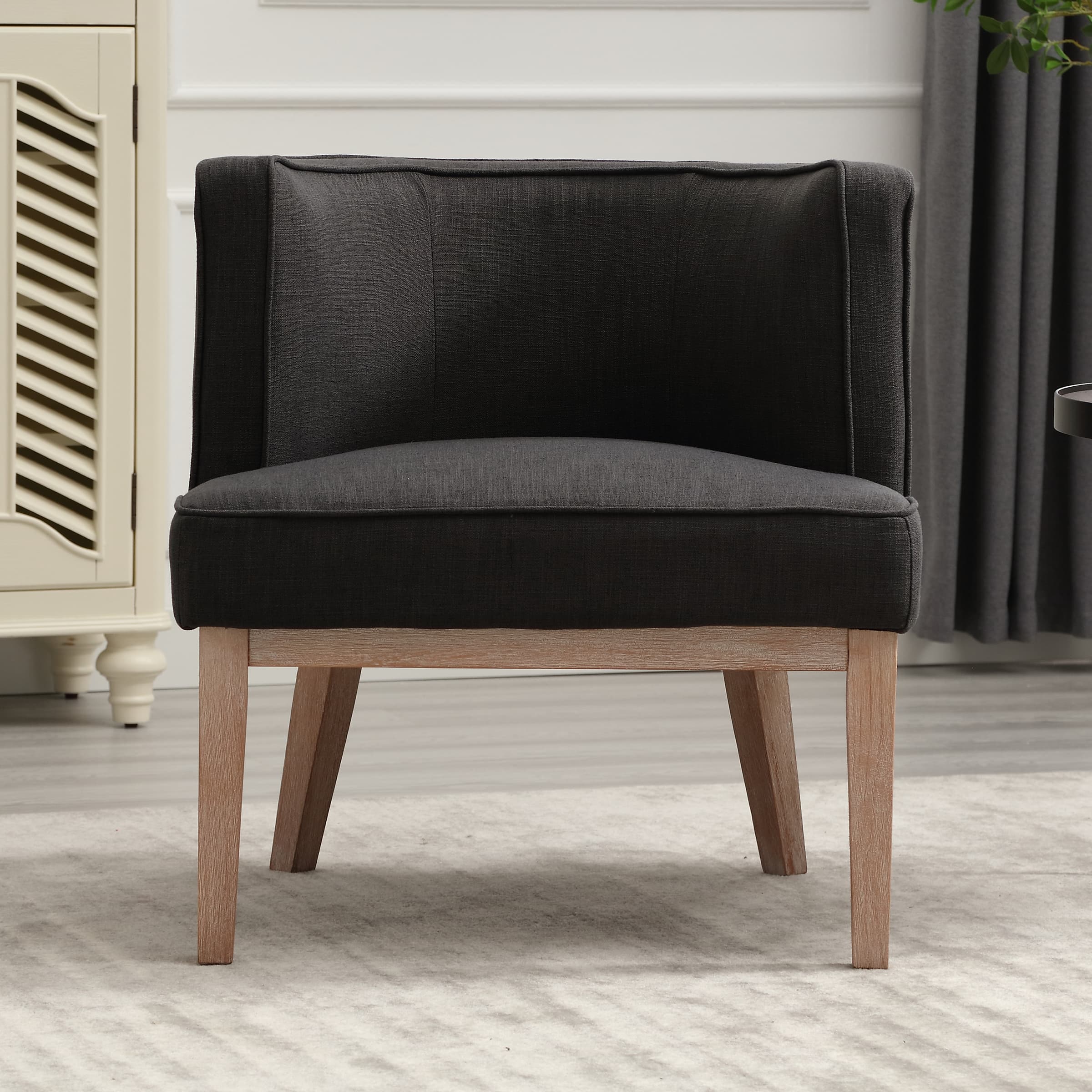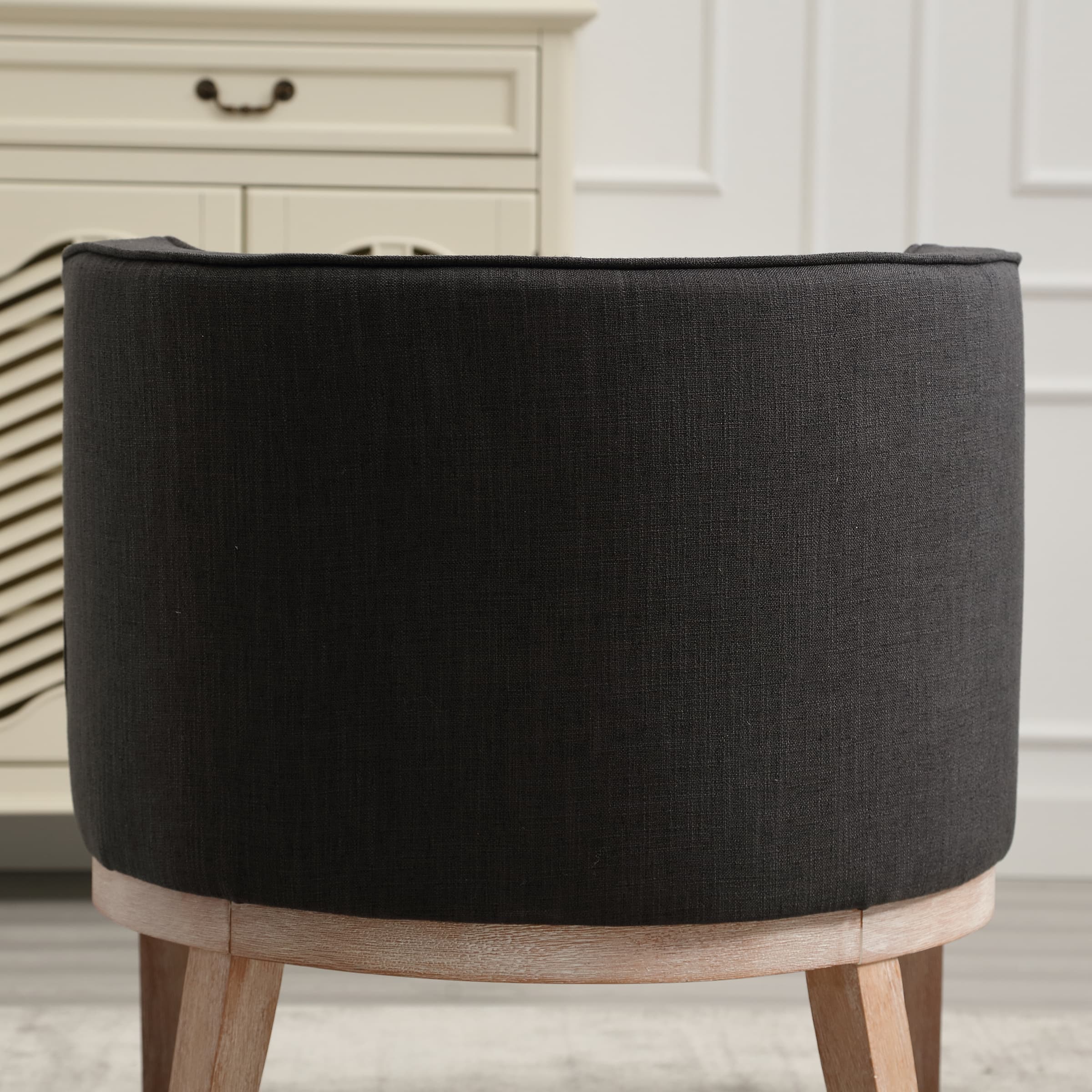 Classic DesignUpholstered SeatSemi-round Back Stone Wash Wood LegsProduct Dimensions