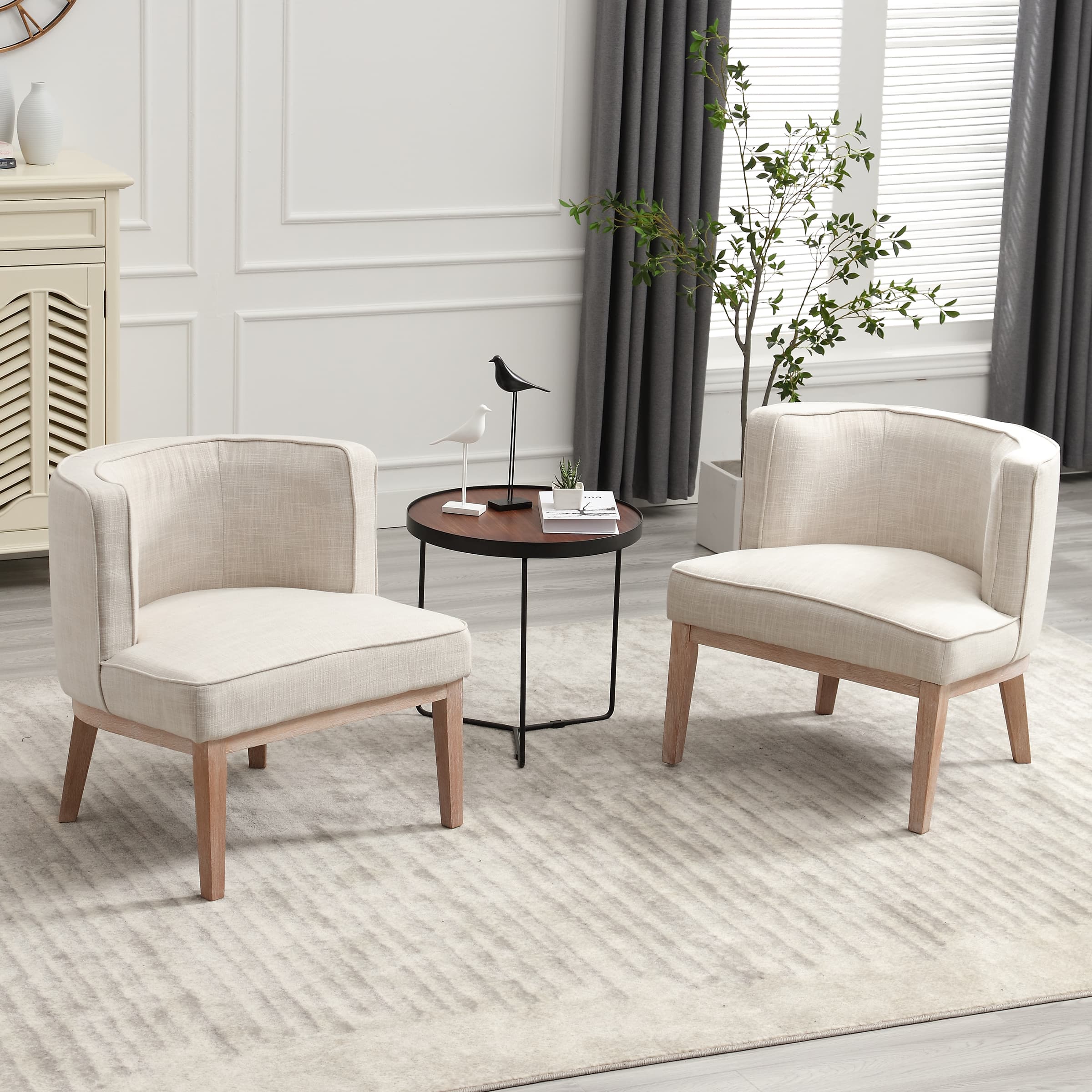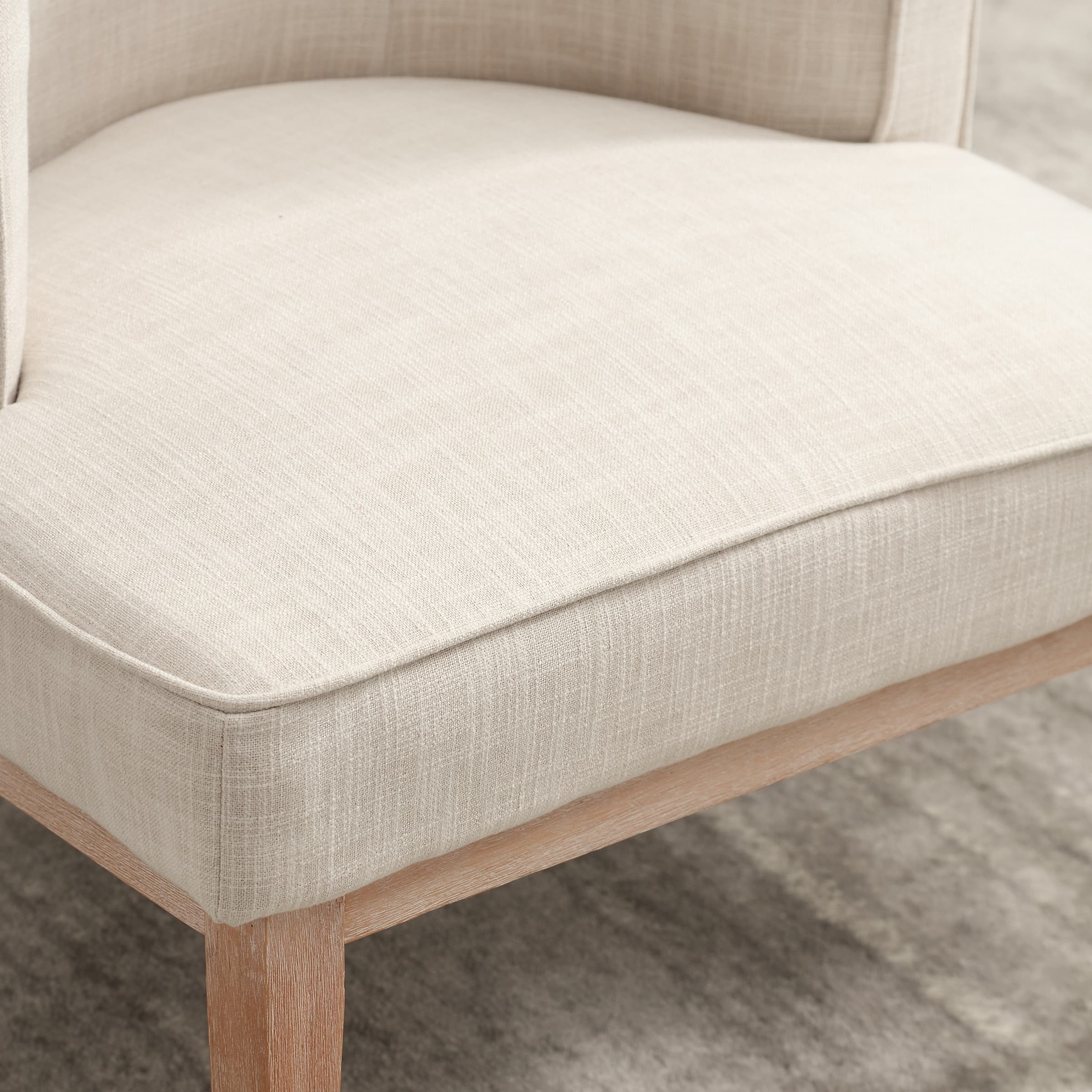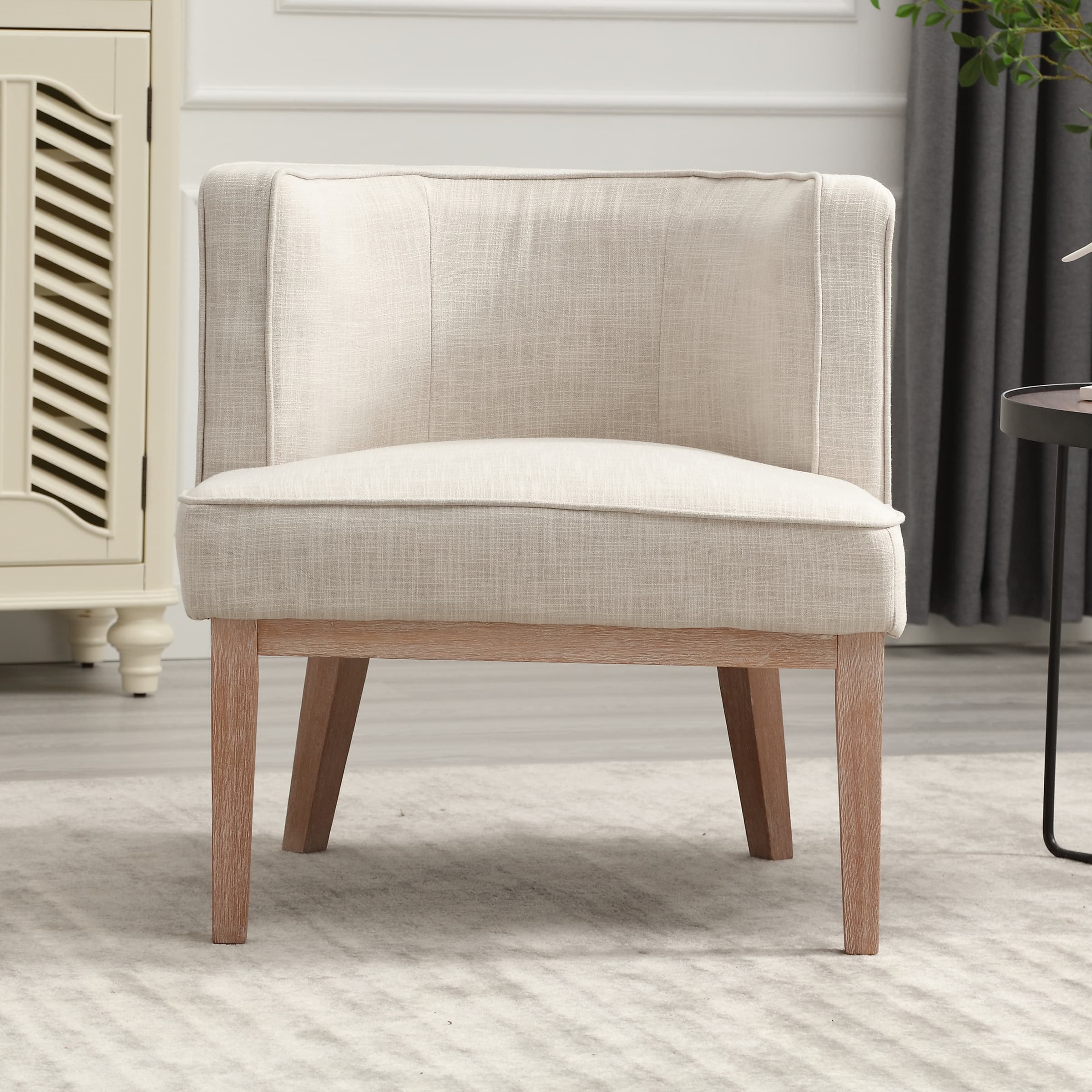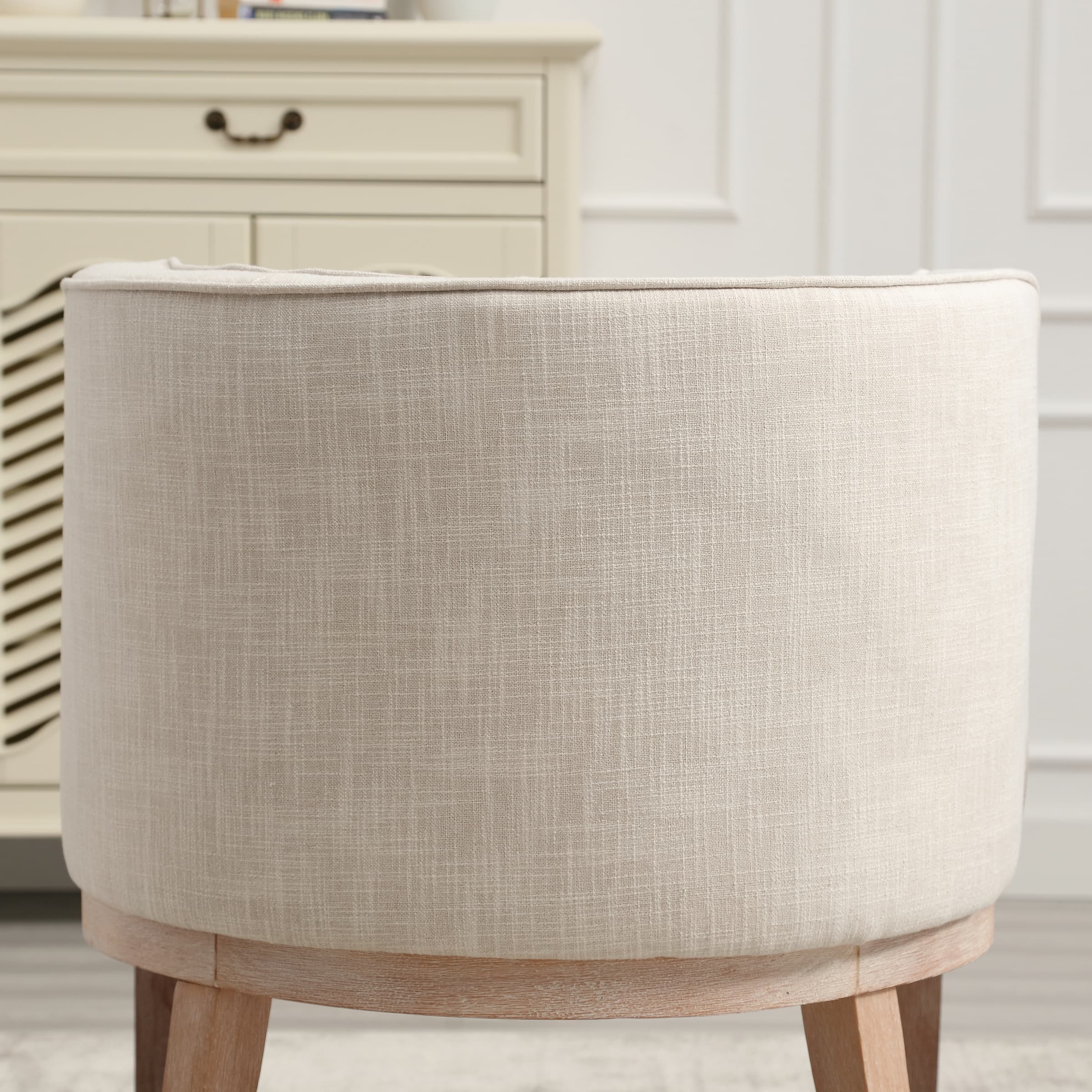 Classic DesignUpholstered SeatSemi-round Back Stone Wash Wood LegsProduct Dimensions