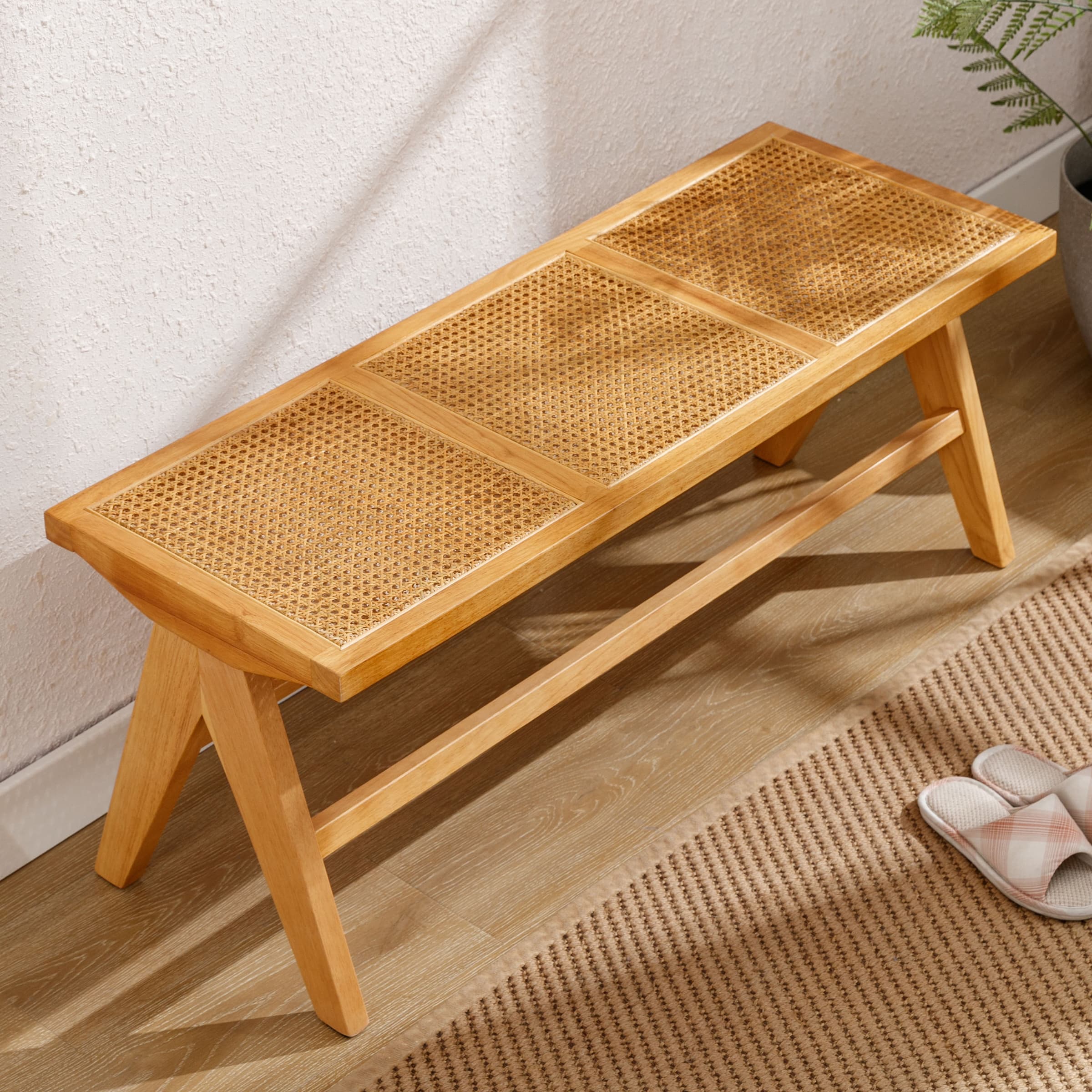 - Crafted from solid wood and bamboo rattan for natural, rustic charm.