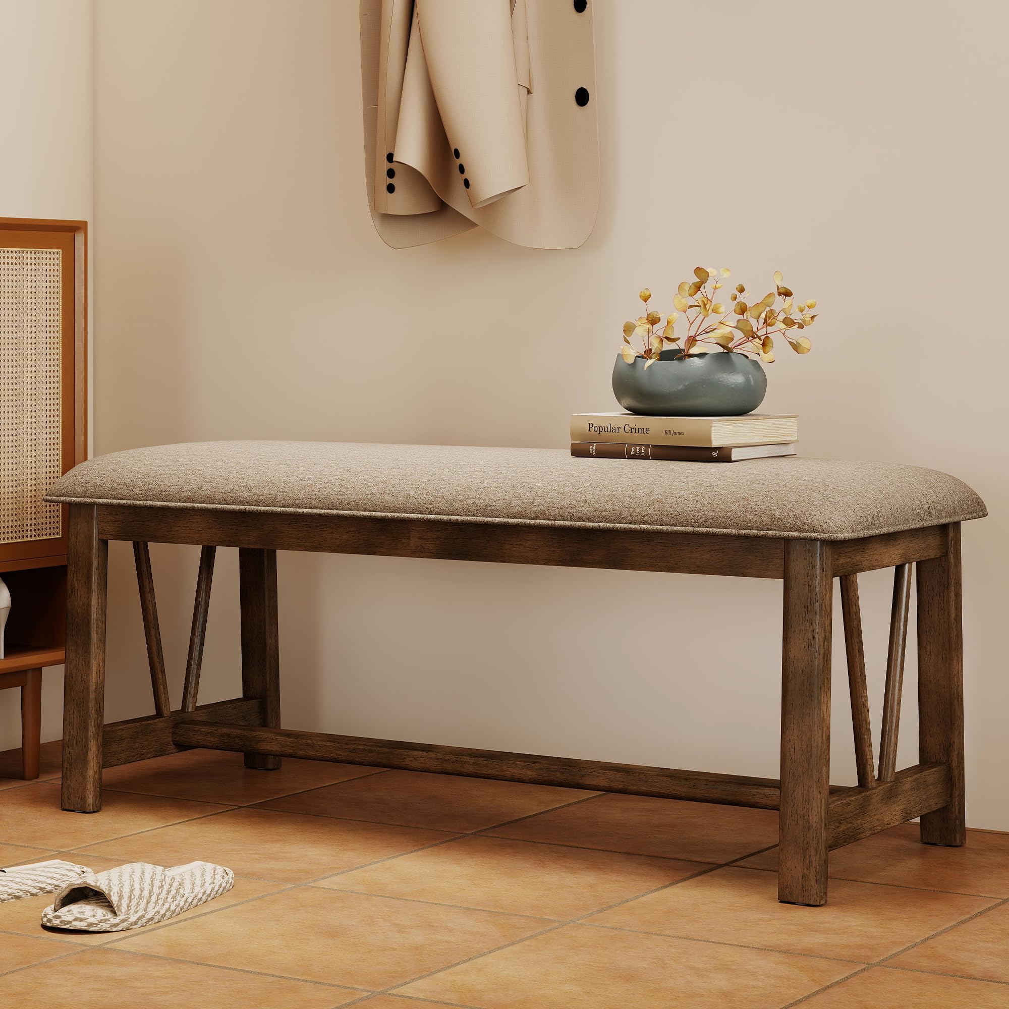 Kmax 44″ Farmhouse Upholstered Wood Bench – 6103BH