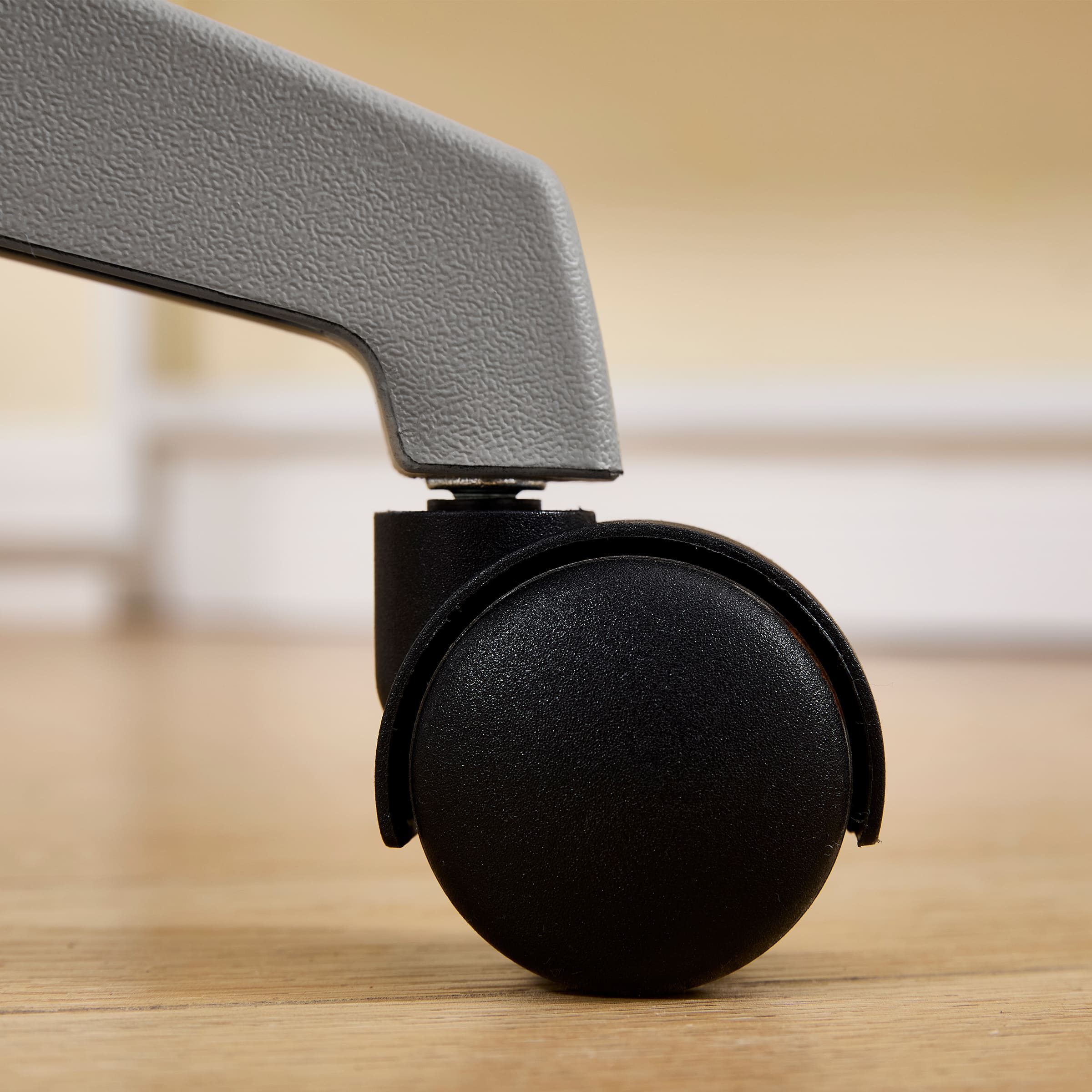 - Heavy-duty dual-wheel casters provide smooth movement and floor protection.