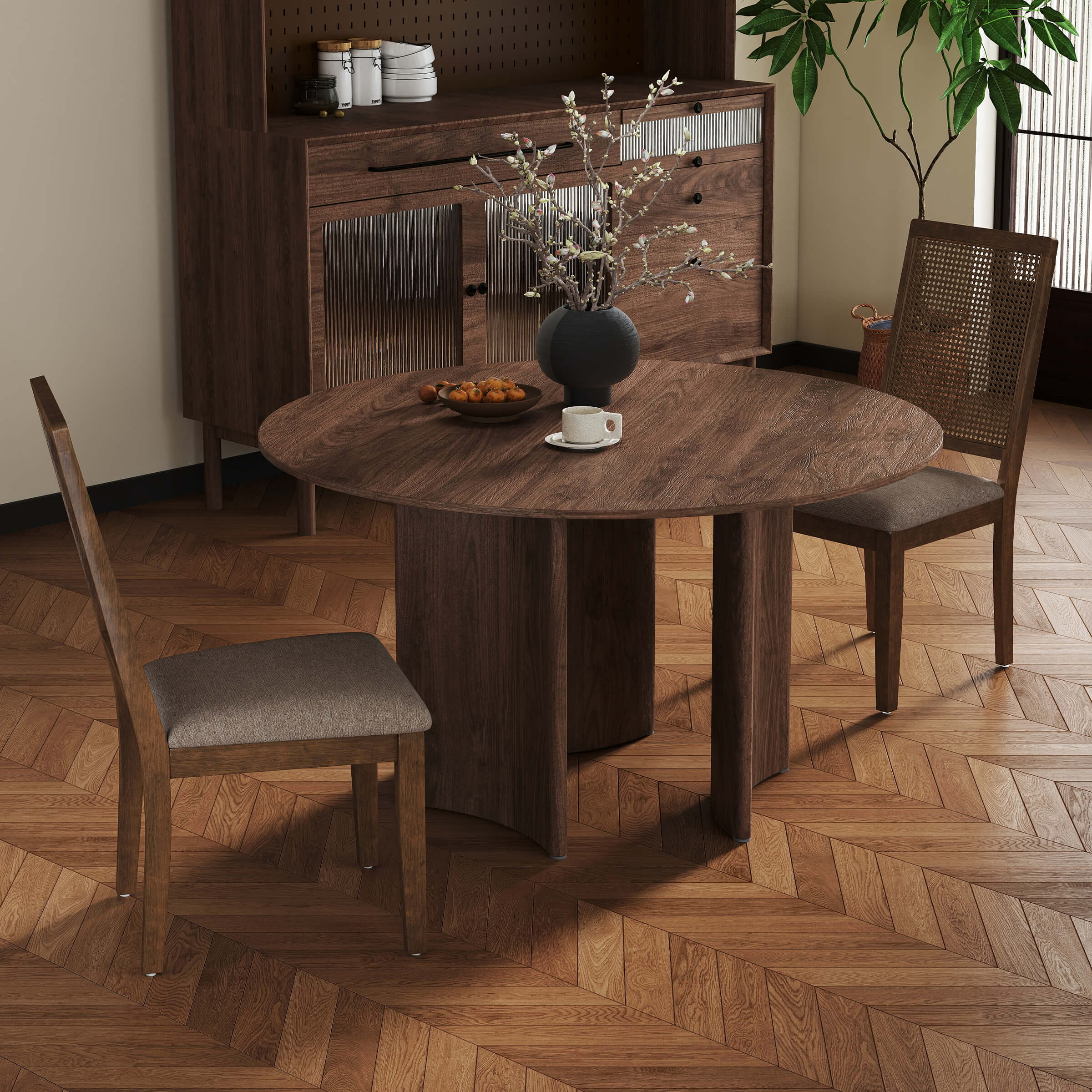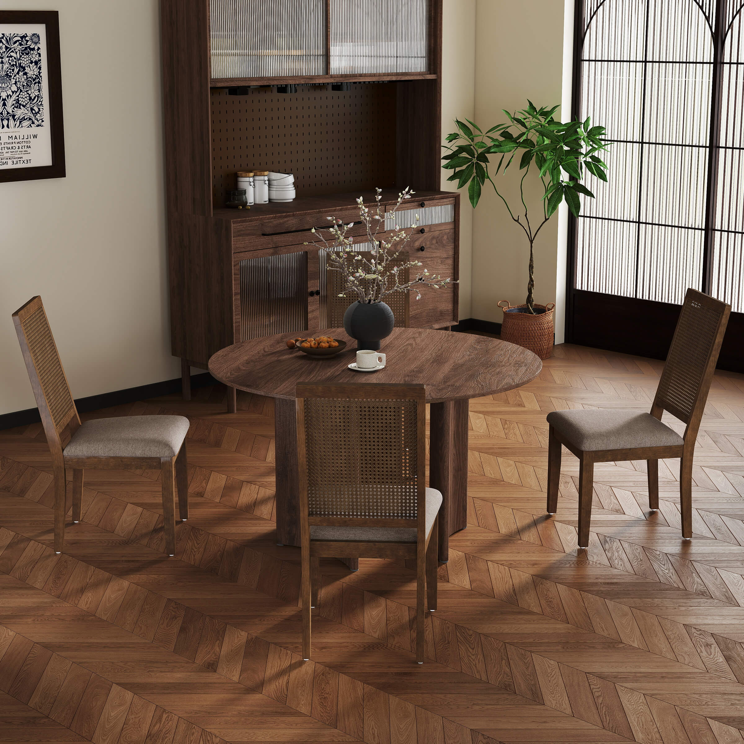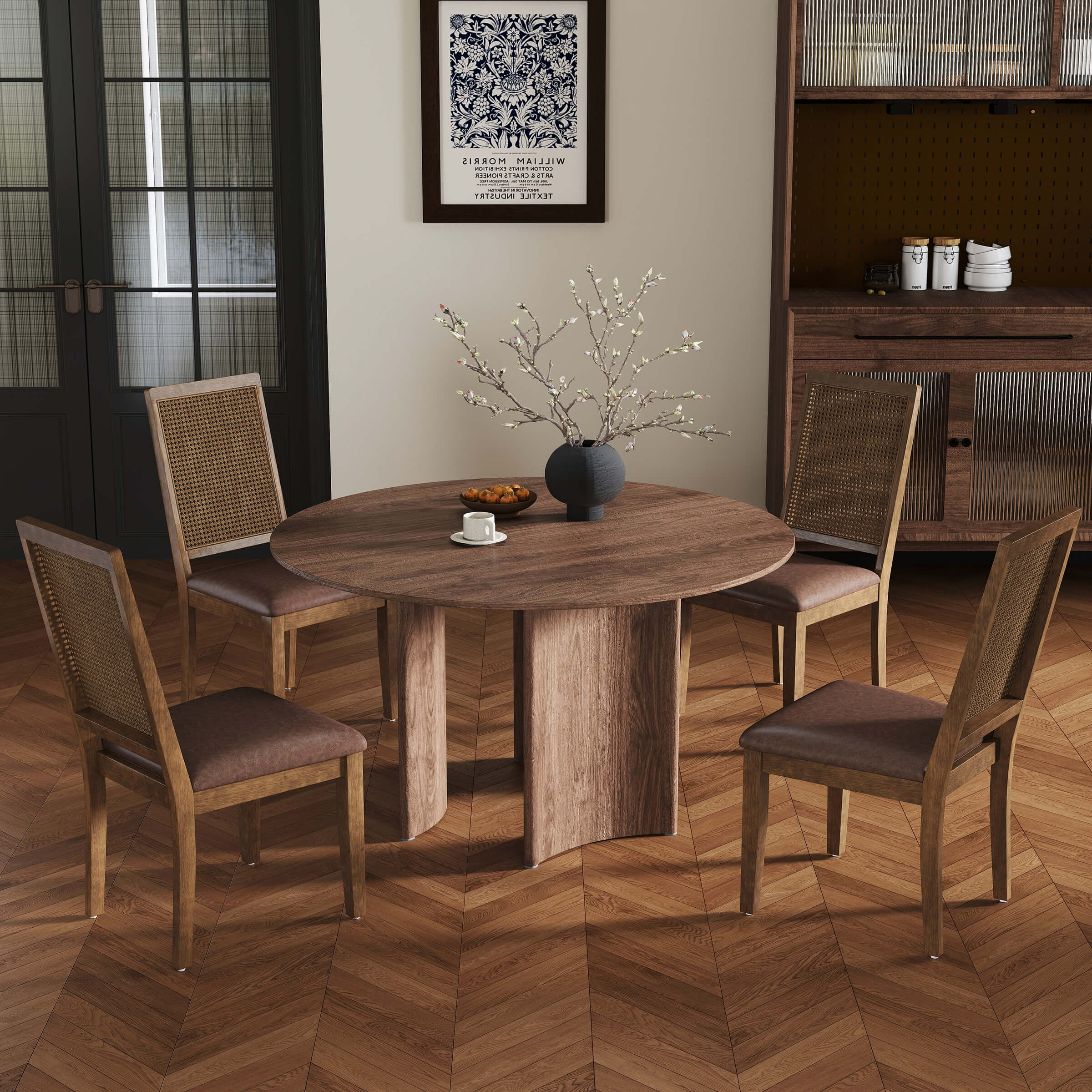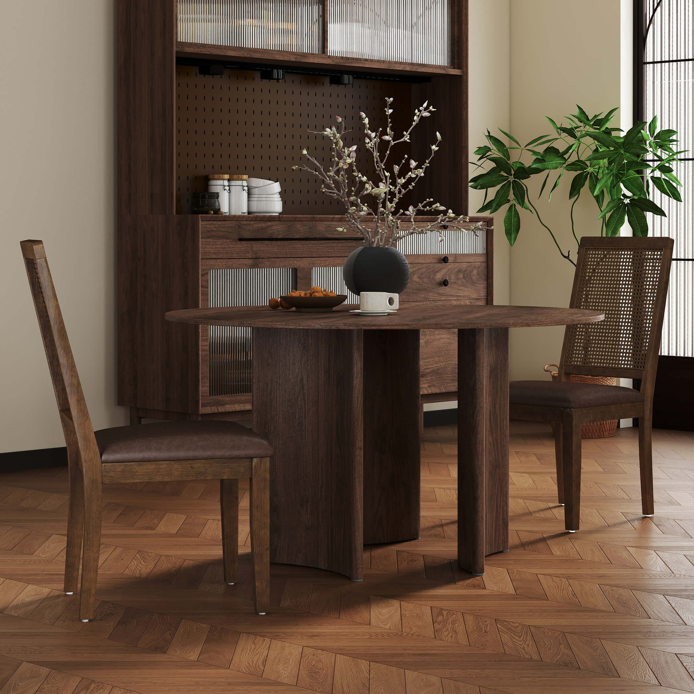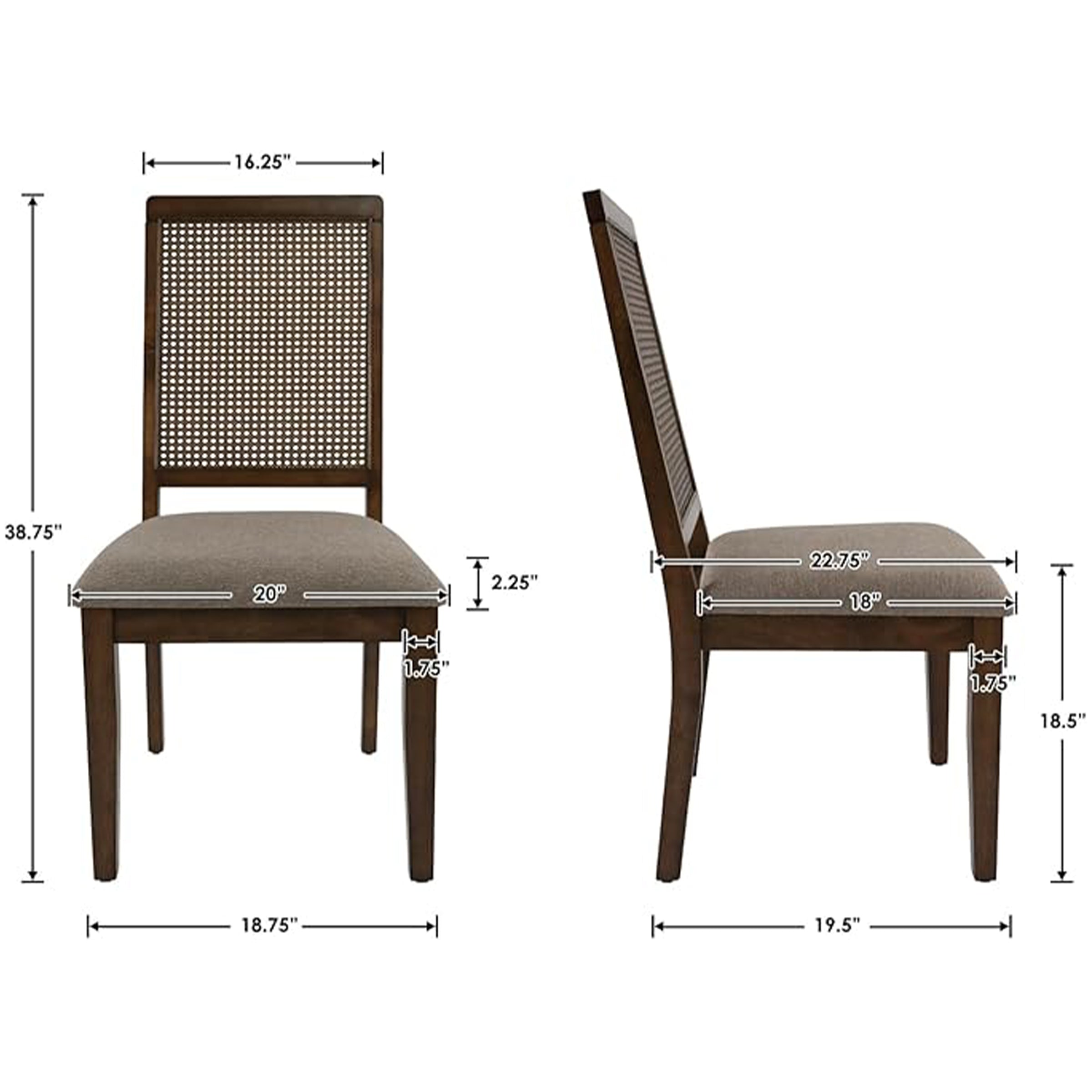 Kmax Armless Dining Chairs with High Rattan Back Set of 2 – 50047DC