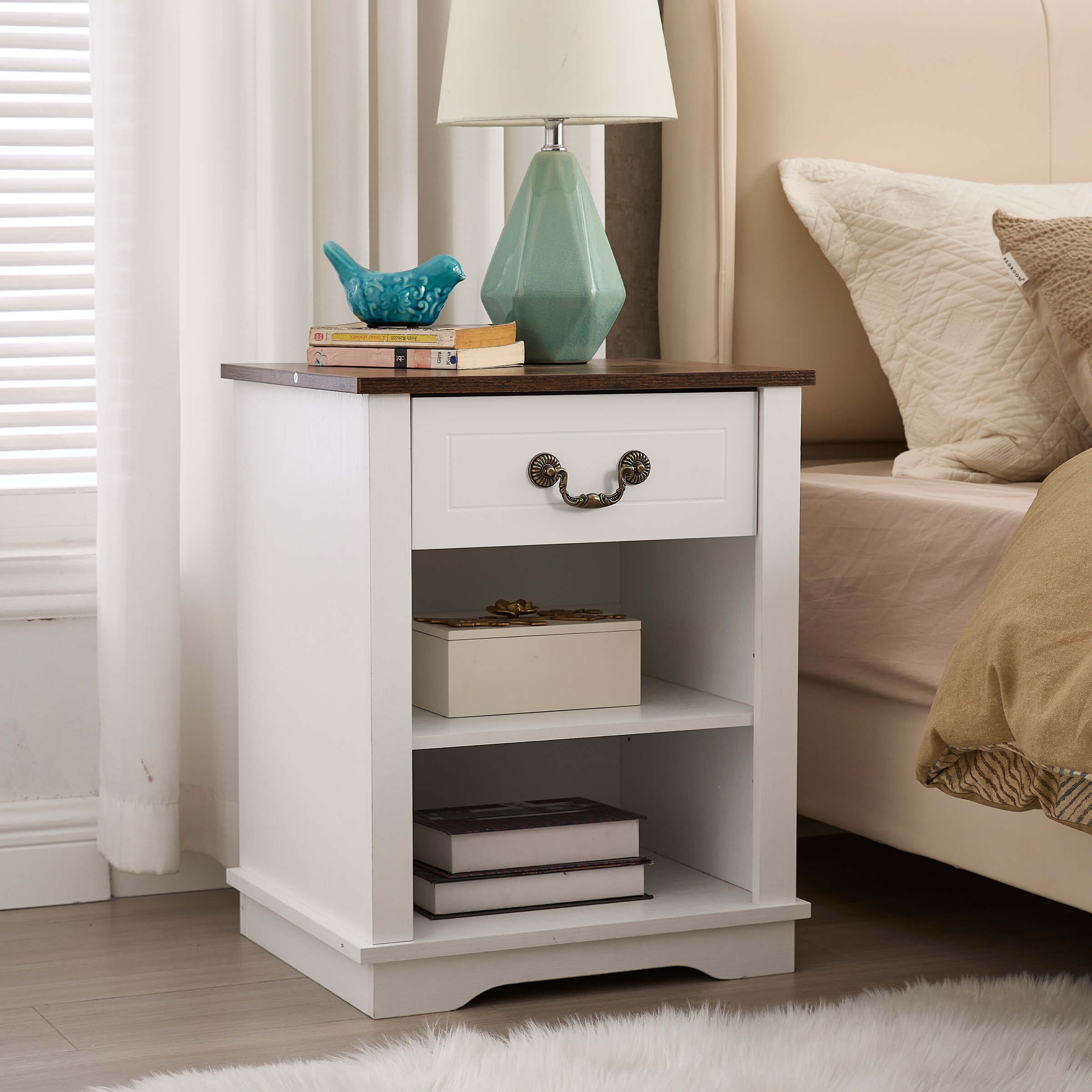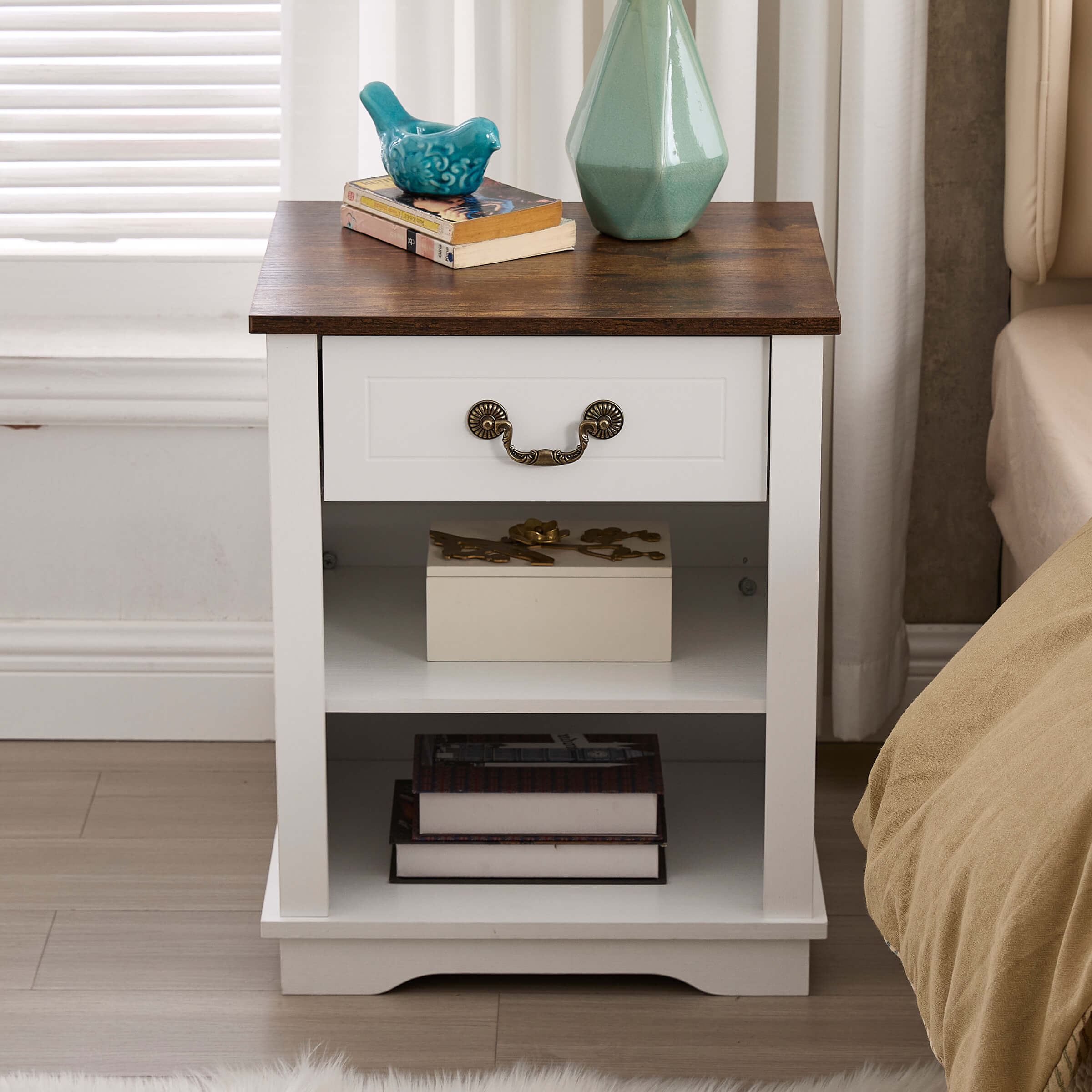 Kmax Farmhouse Nightstand with Drawer and Adjustable Shelf – XX162CB