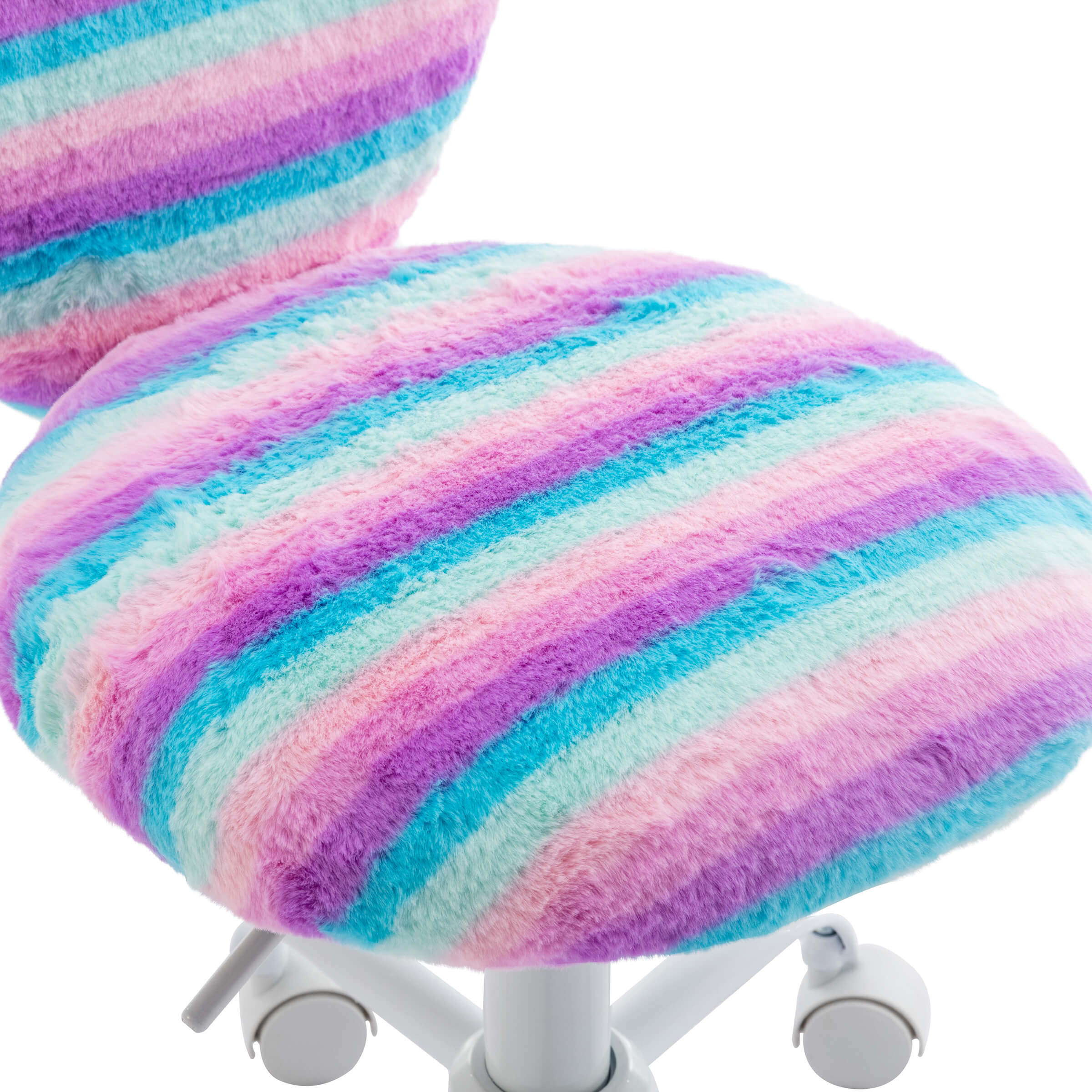 - Soft faux fur seat offers cozy comfort for long sitting.