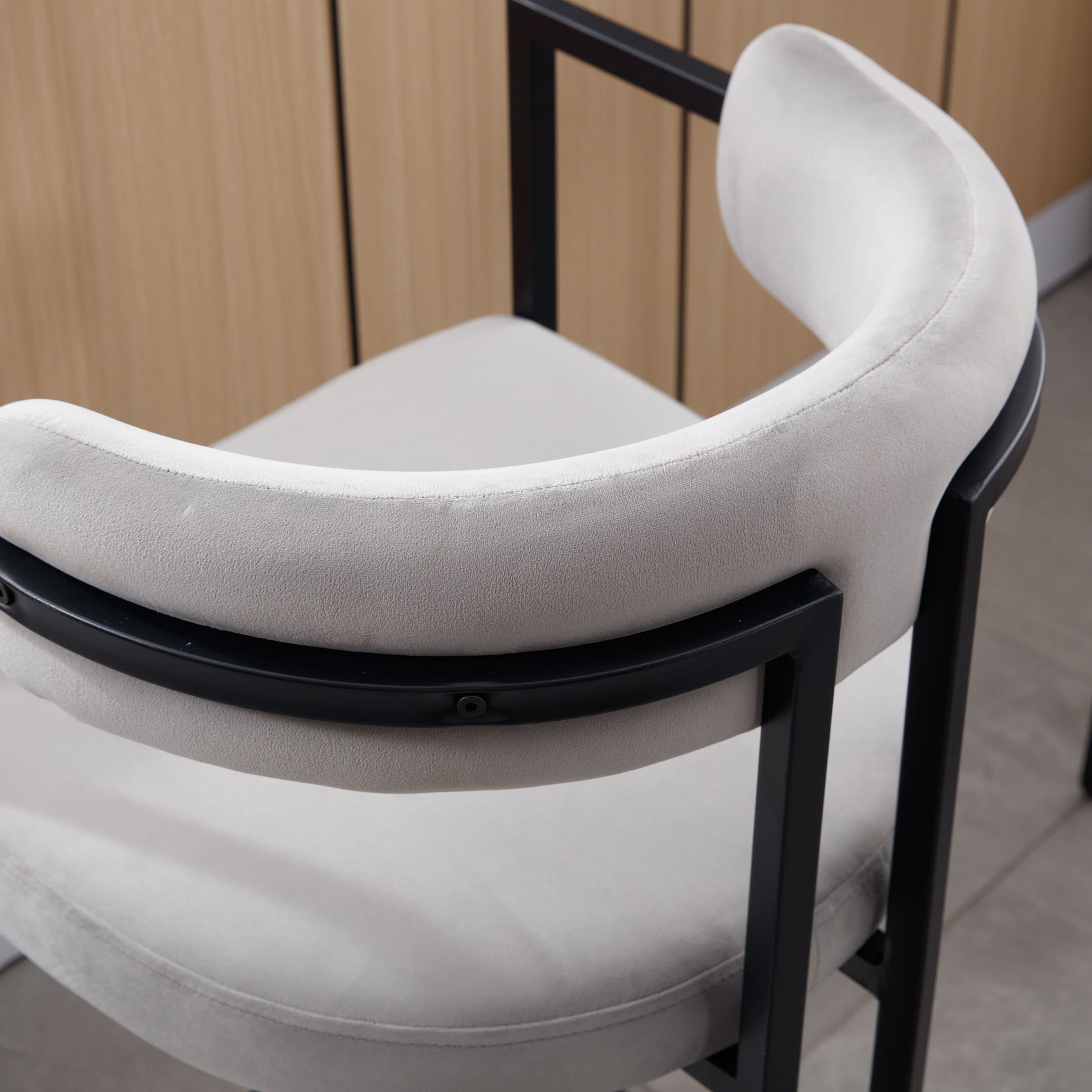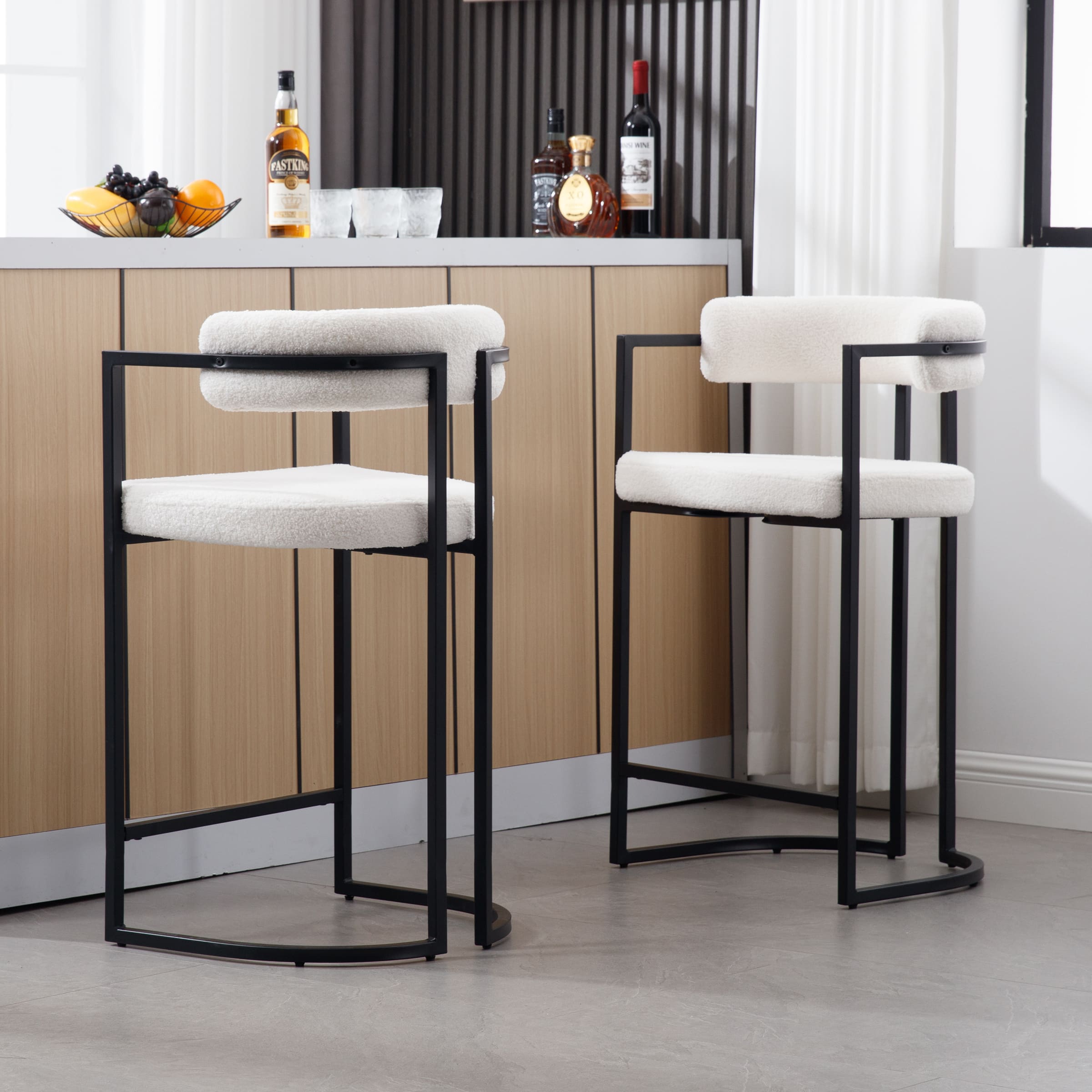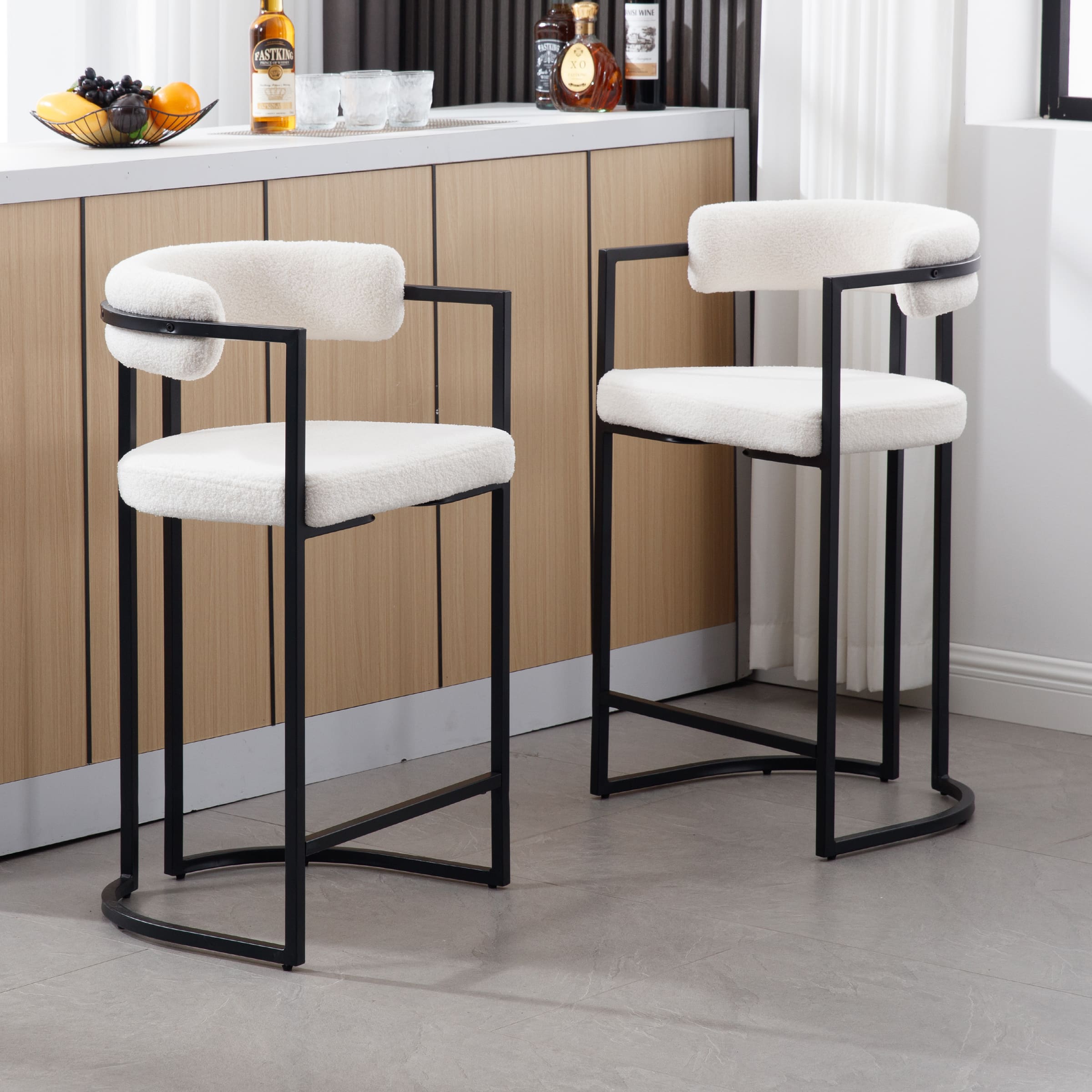 - Barrel-shaped counter stools with a round-back design blend classic style and modern flair, fitting various decor styles.