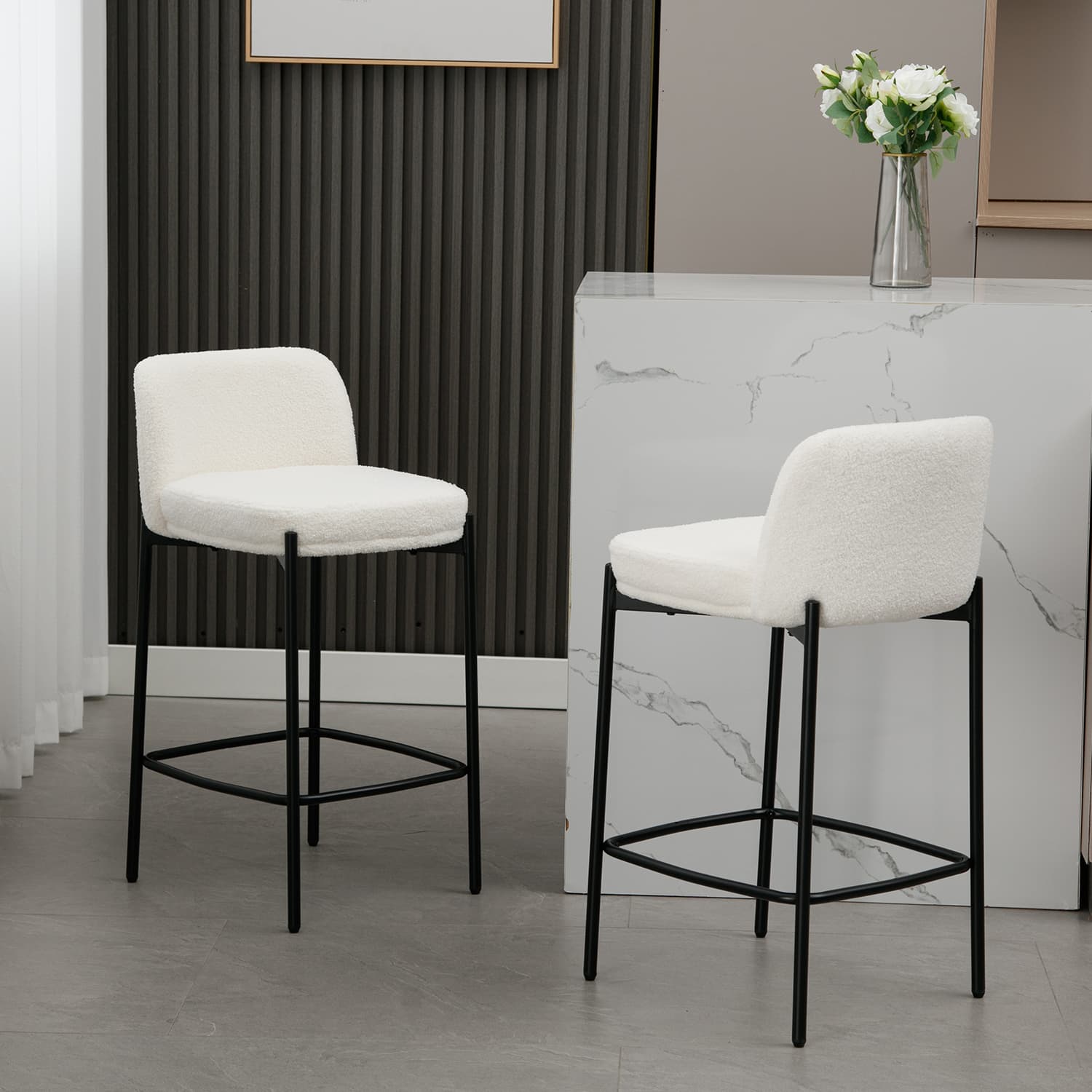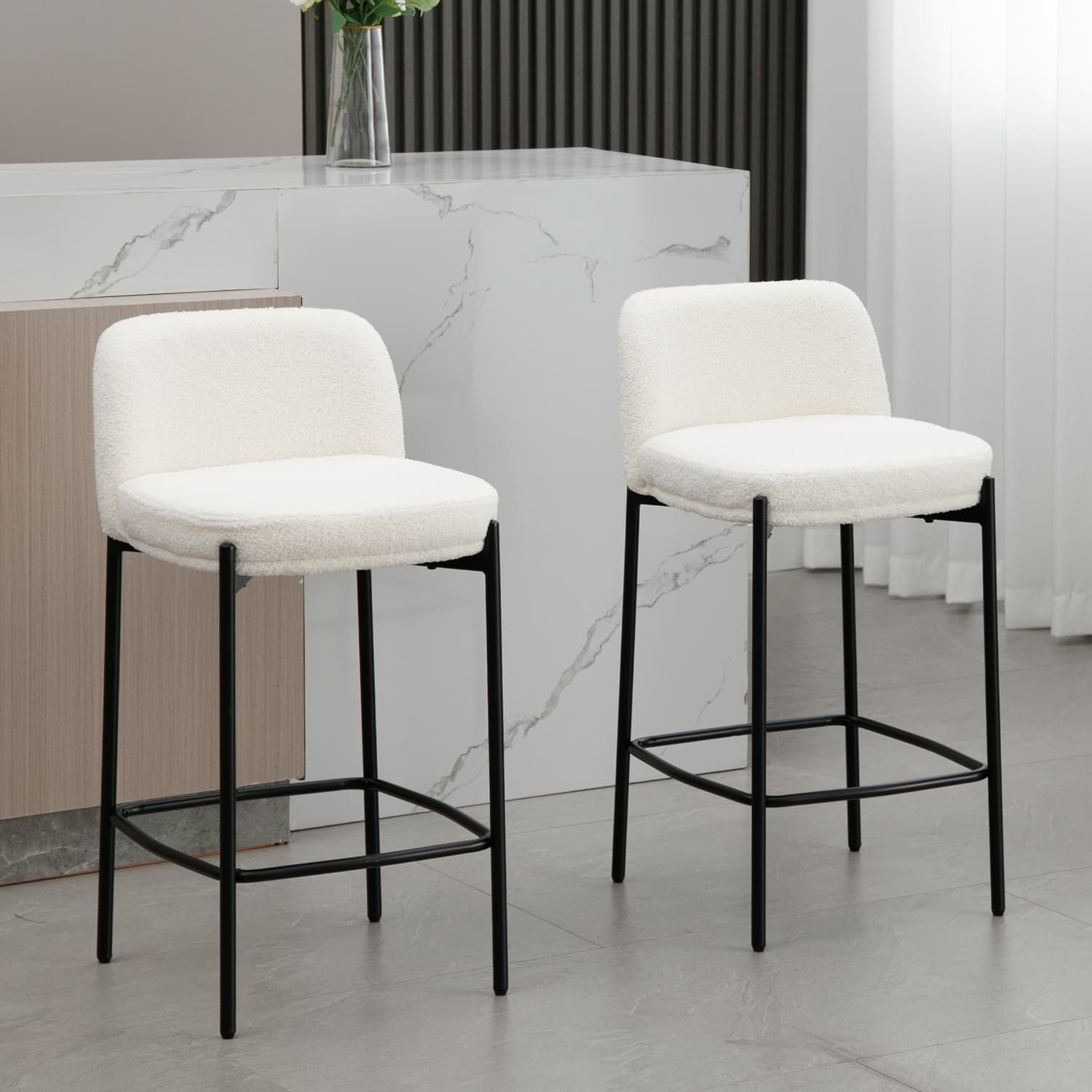 ROCITY 26″H White Boucle Bar Stools Set of 2 – 23727CS
