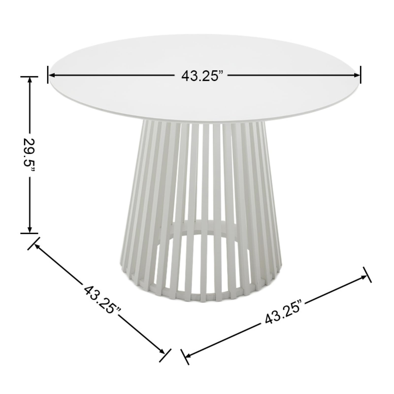 - Dimensions: 43.25″ W x 43.25″ D x 29.5″ H.