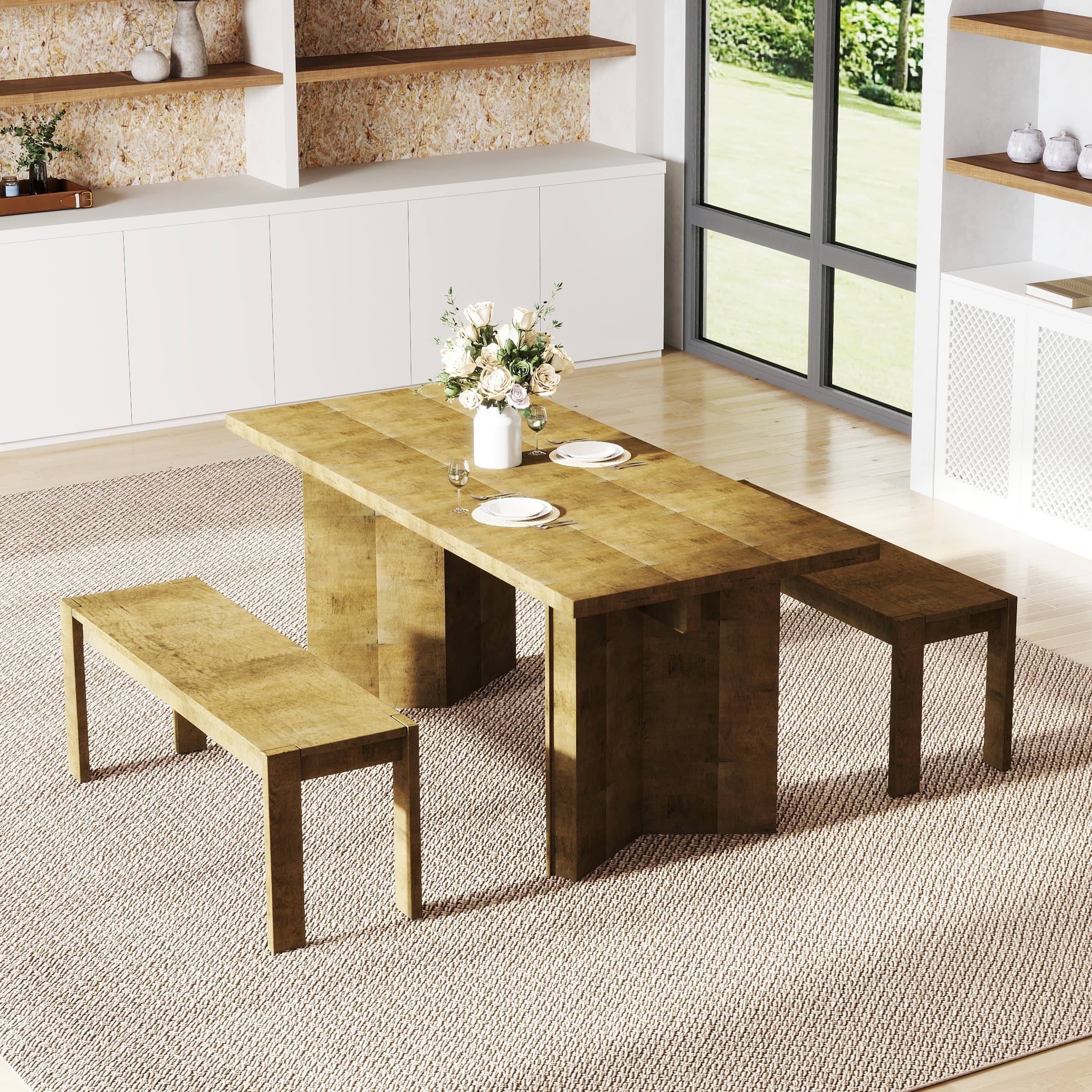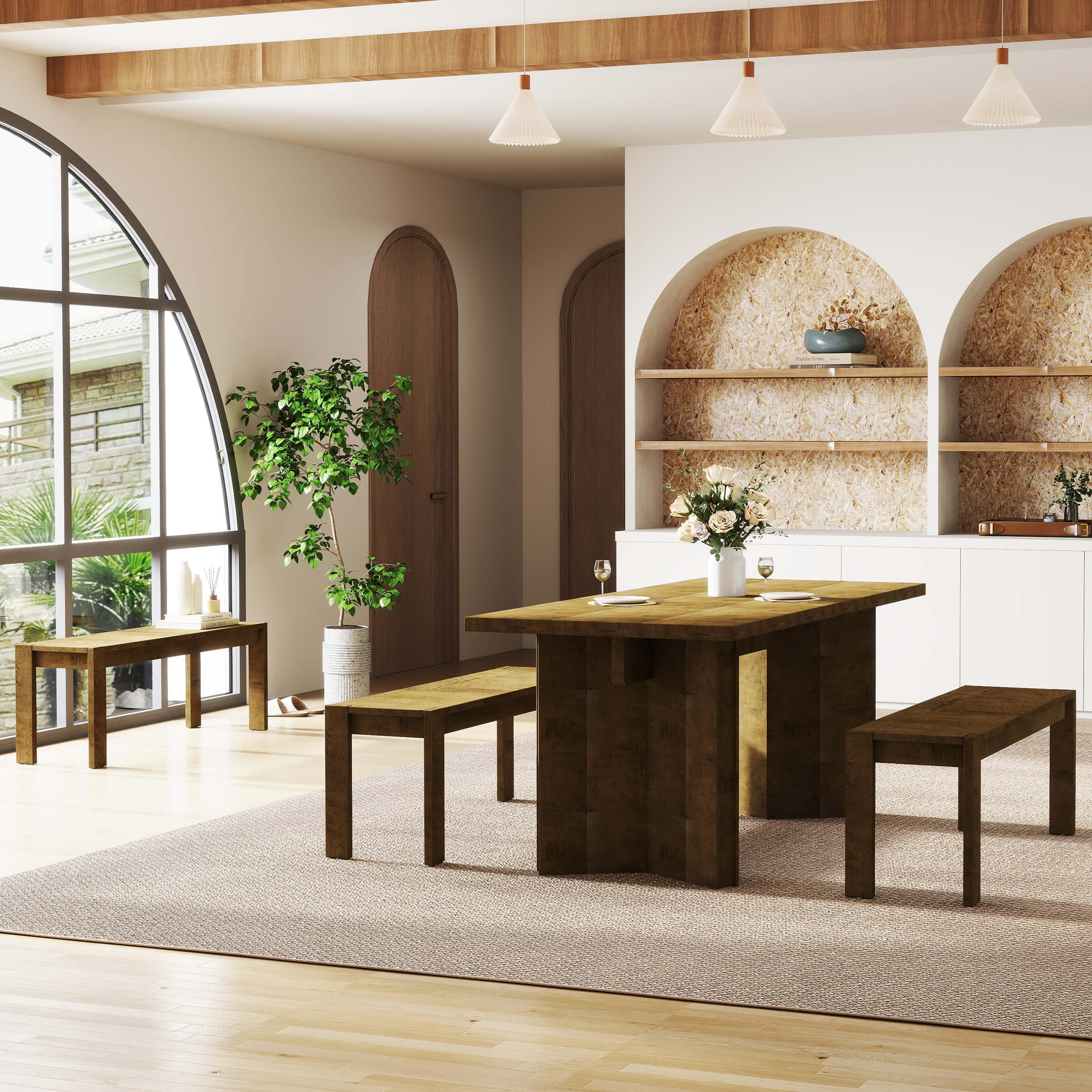 - Works well as a dining bench, entryway seat, or end-of-bed bench