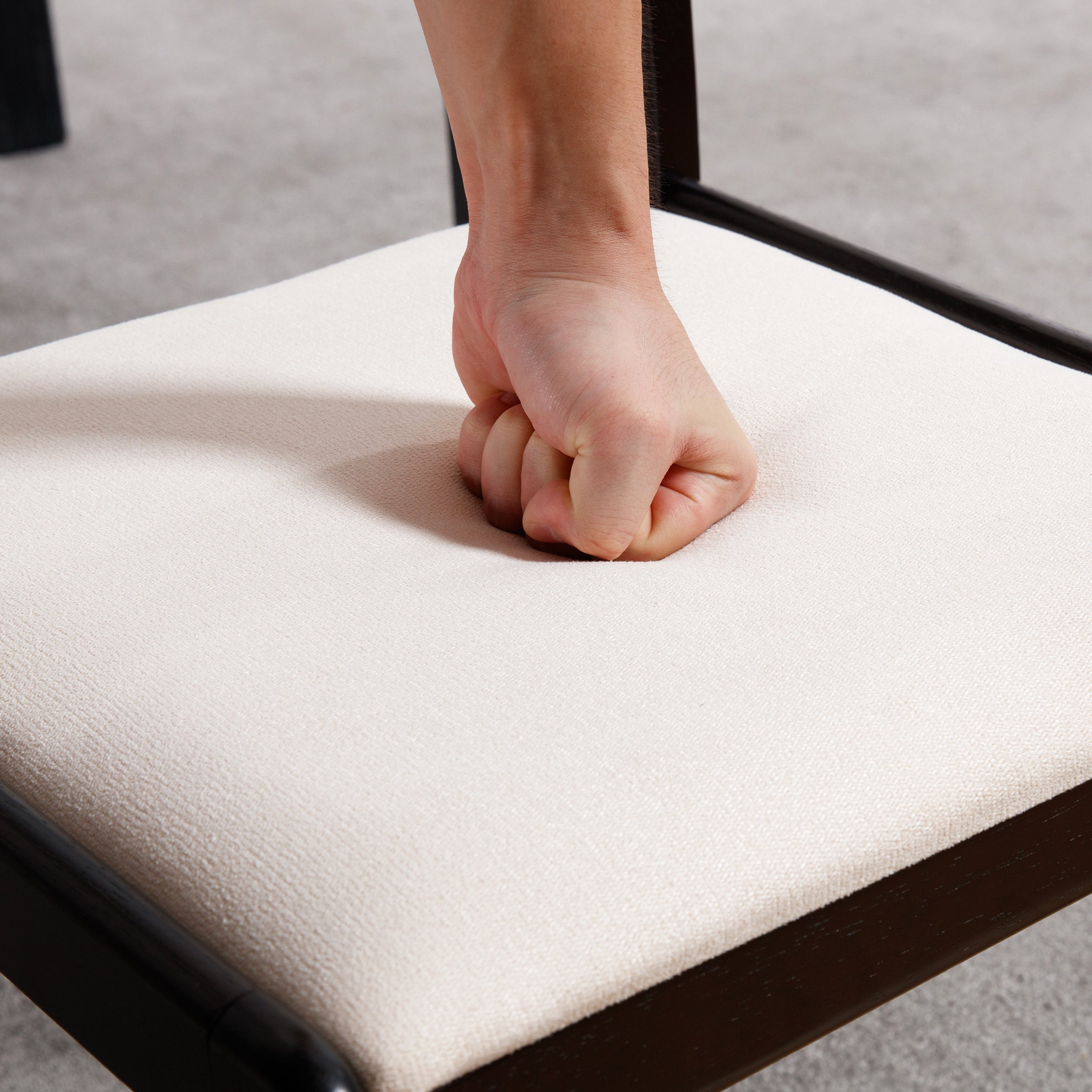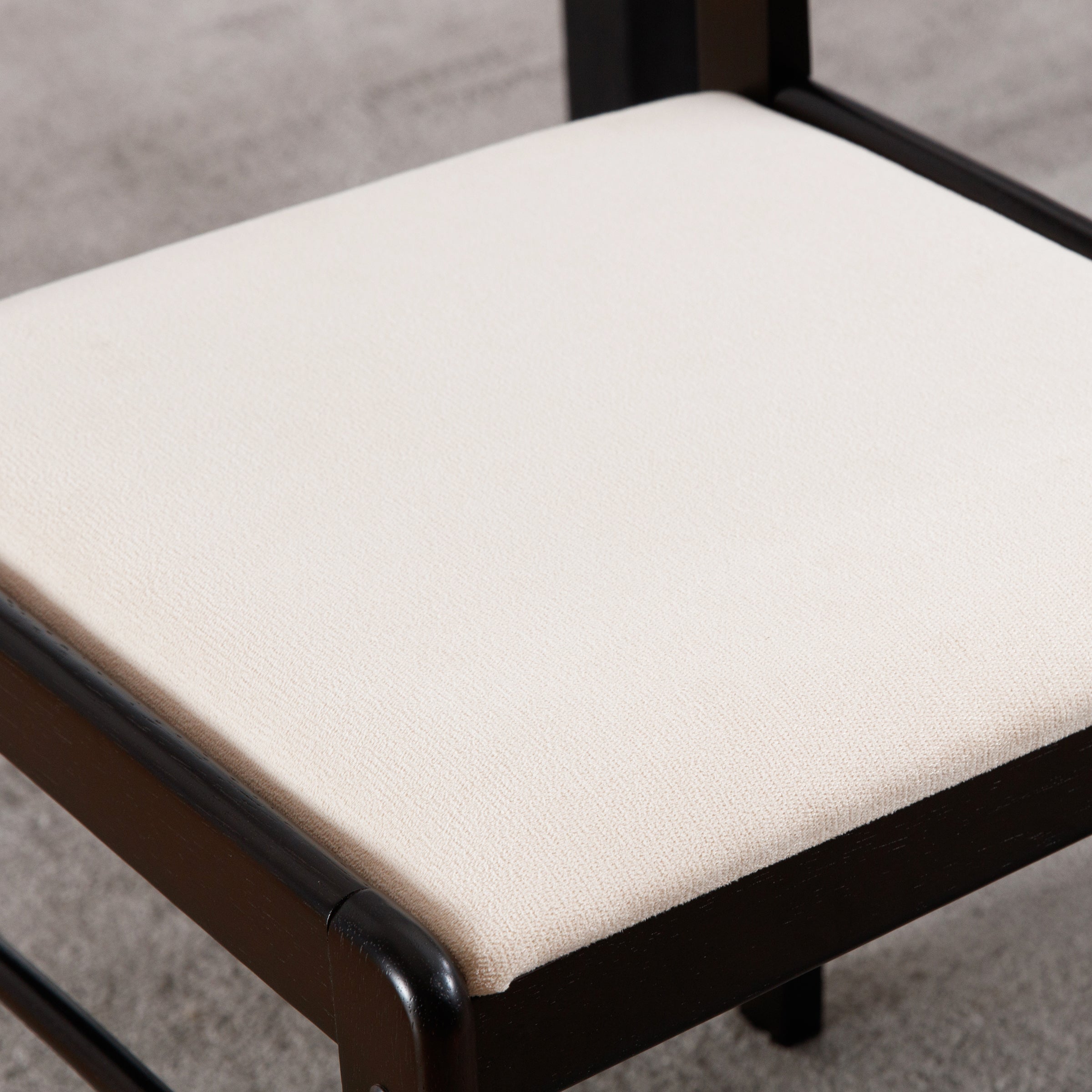 - Black wood legs and white chenille cushions for versatile style.