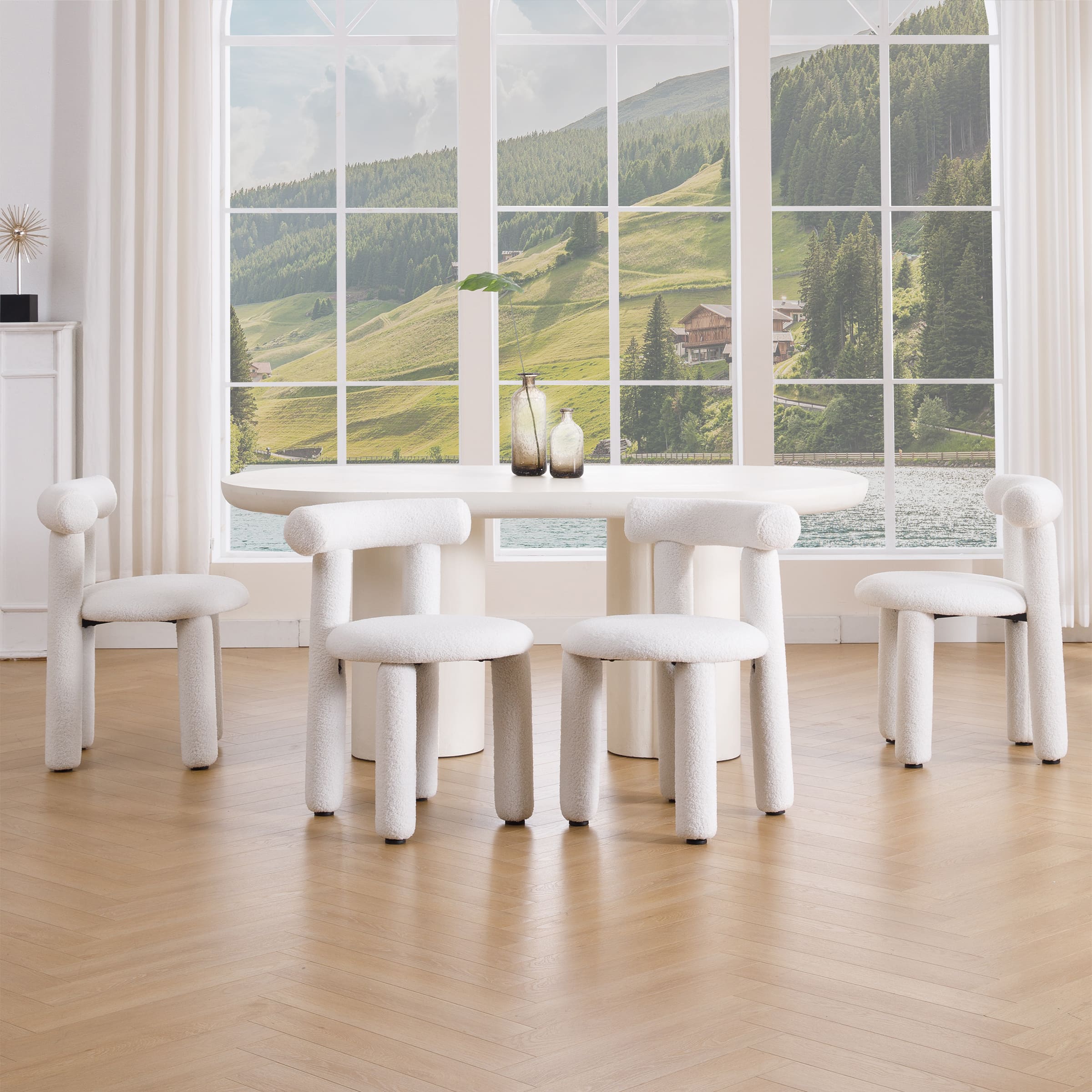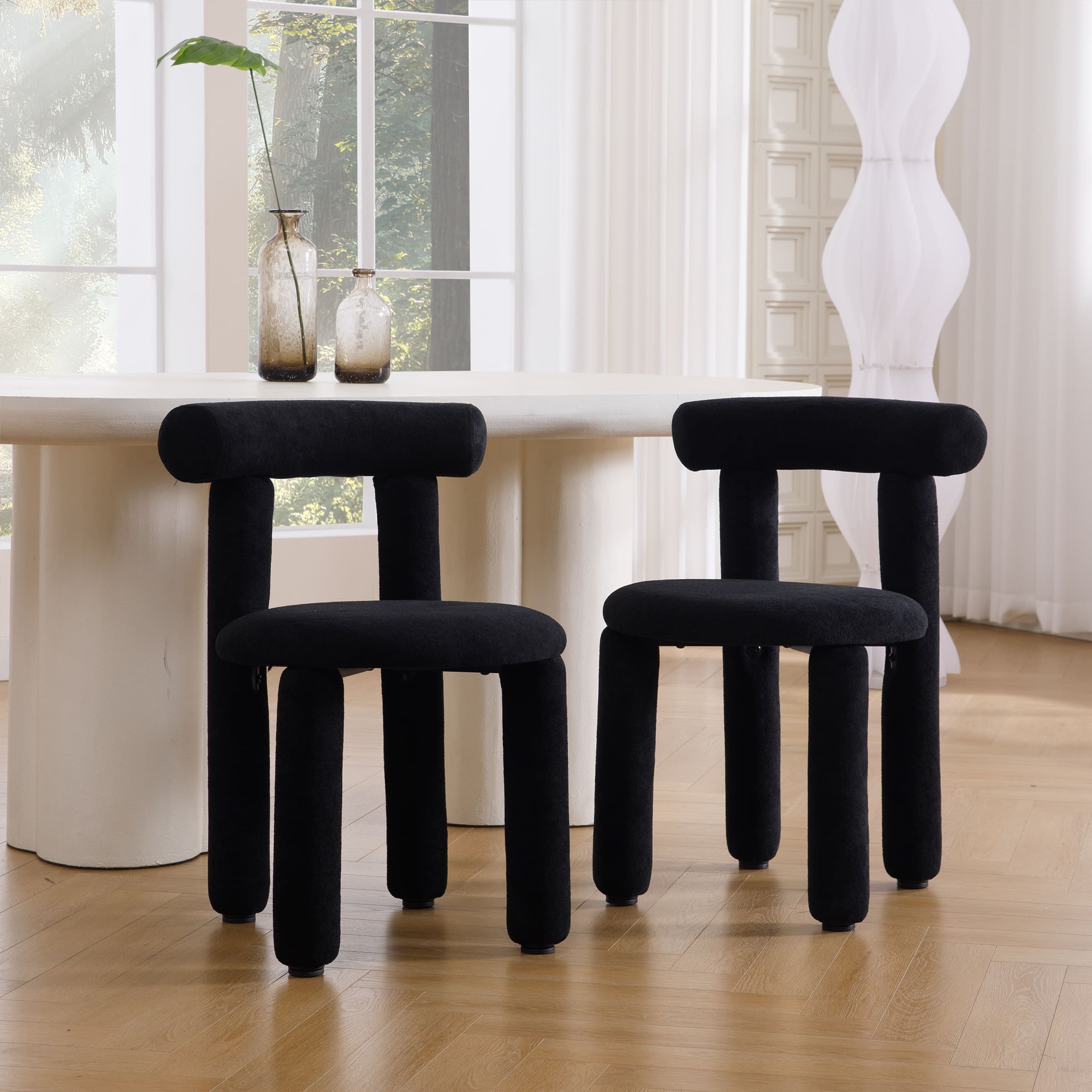 ROCITY Modern Sherpa Cute Dining Chairs Set of 2 – 3136DC