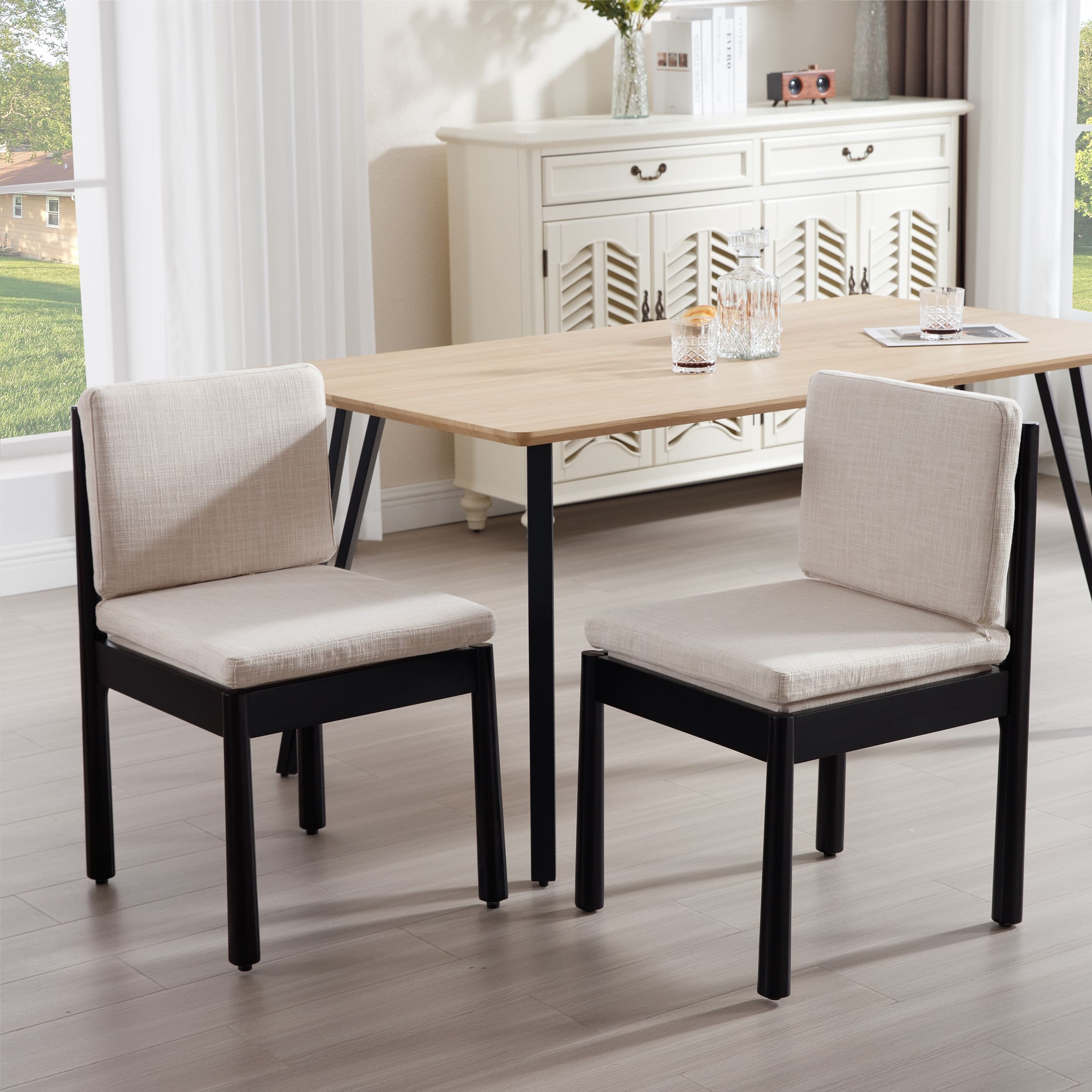 - Solid wood legs form a triangular support for strong, stable construction.