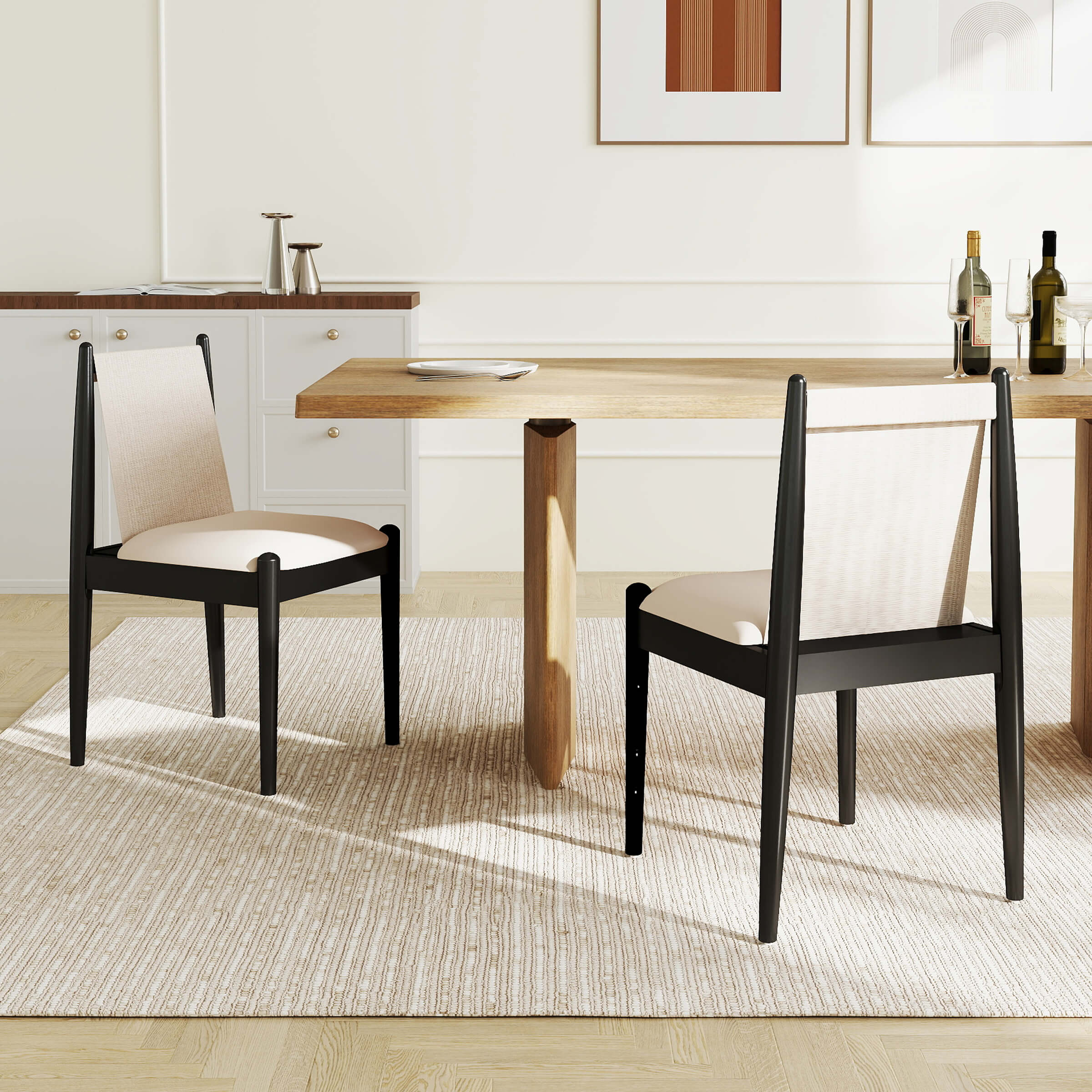ROCITY Modern Upholstered Linen Fabric Dining Chairs Set of 2 – 0009DC