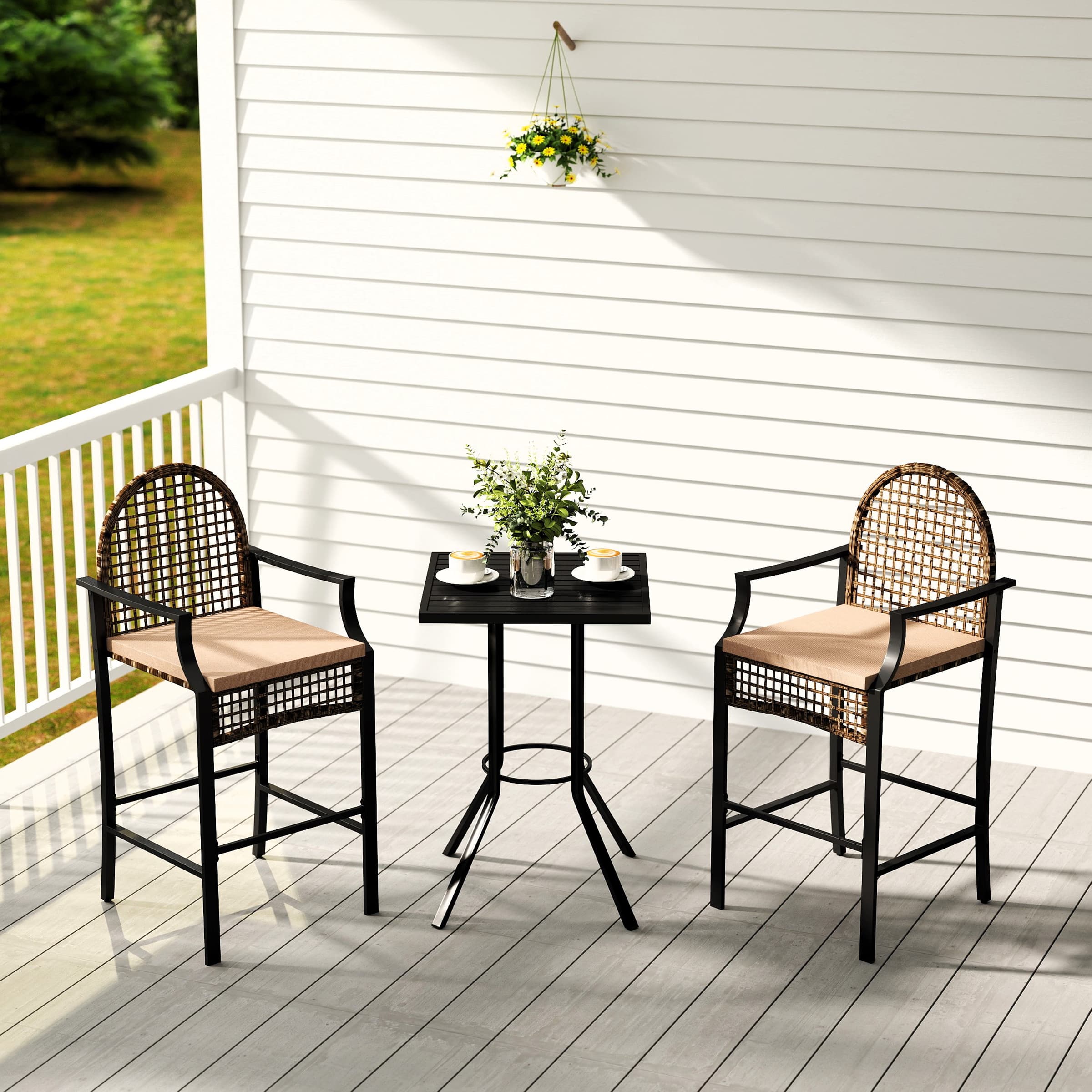 Fitting Any Outdoor SettingChic Square Bar TableRemovable UpholsteryDurable RattanThoughtful Footrest