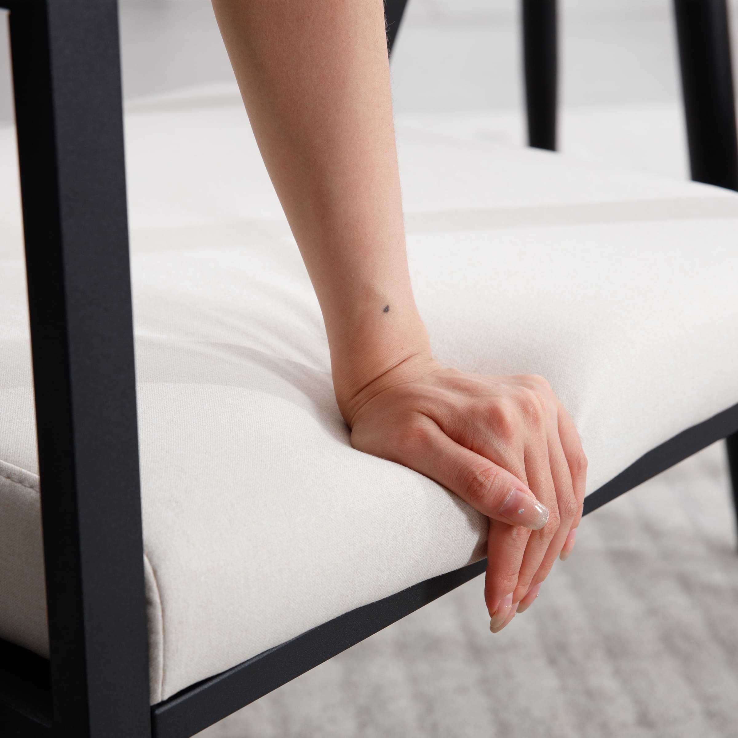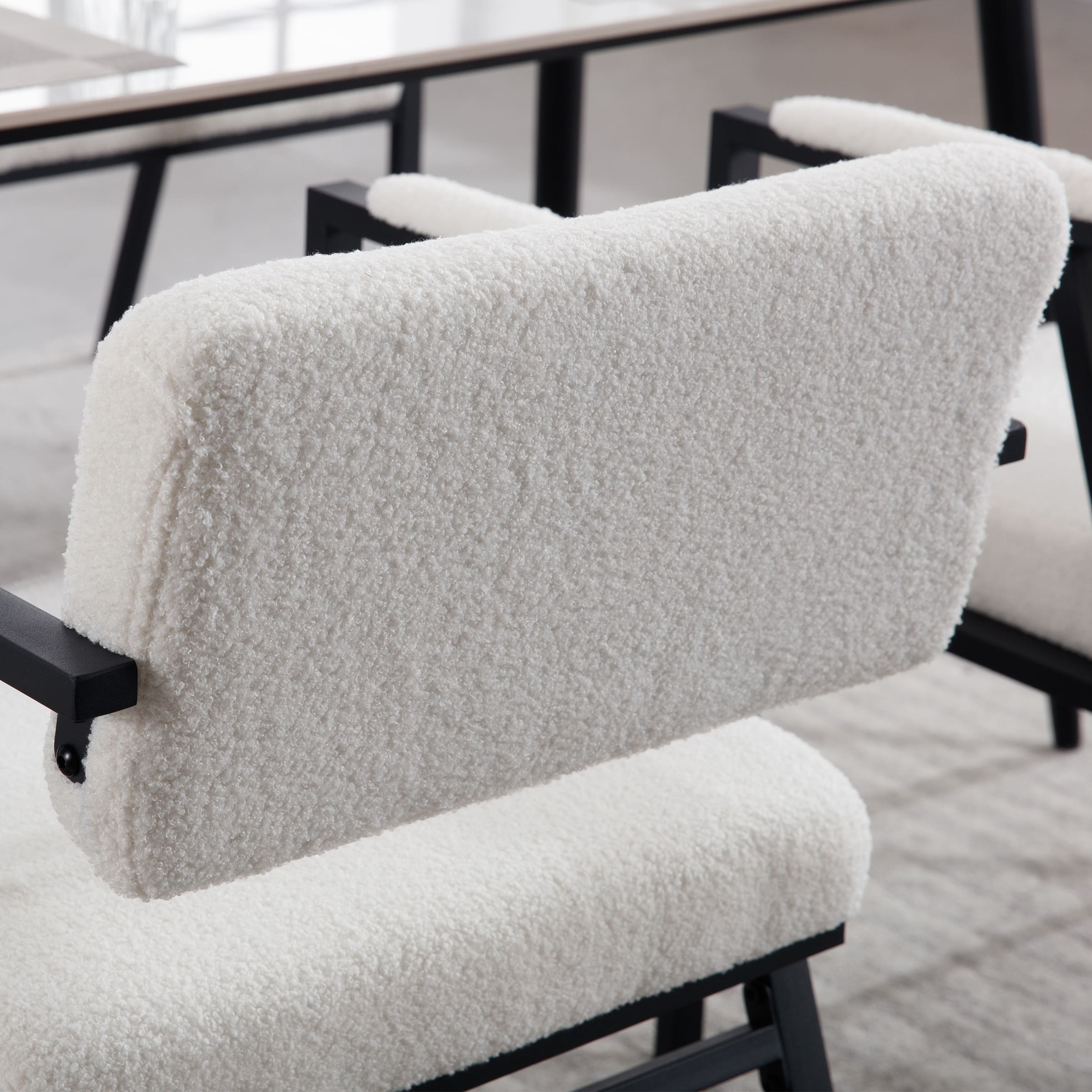 - Black metal base ensures stability with a sleek modern look.
