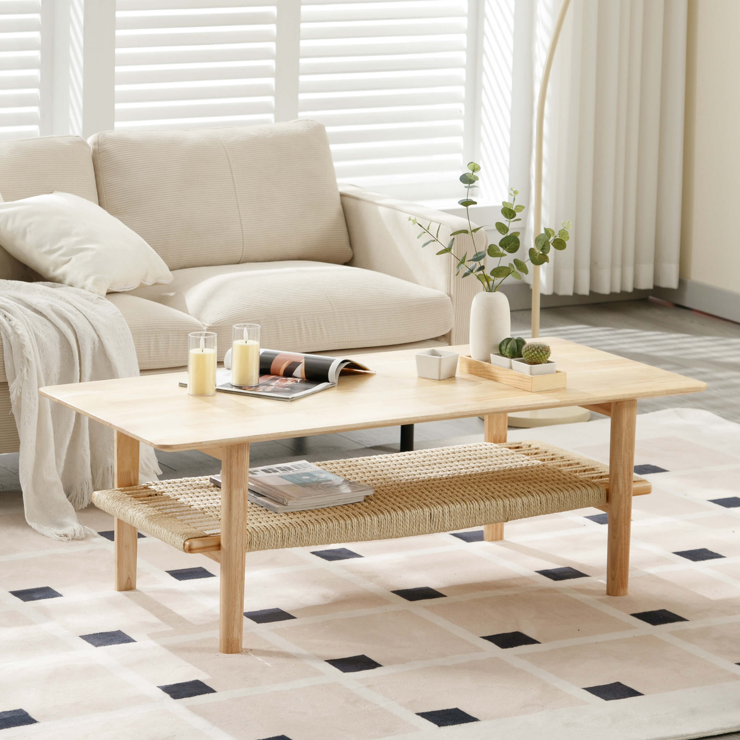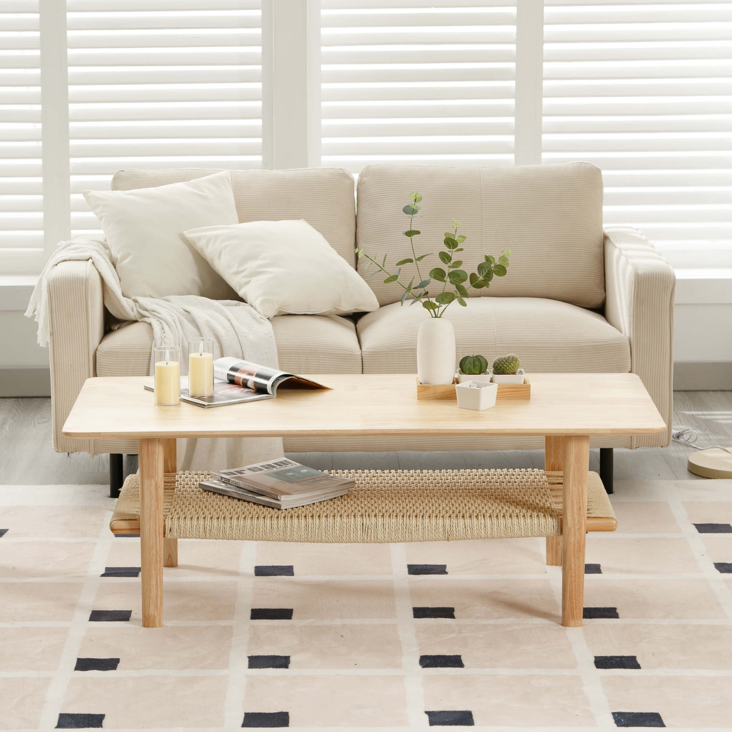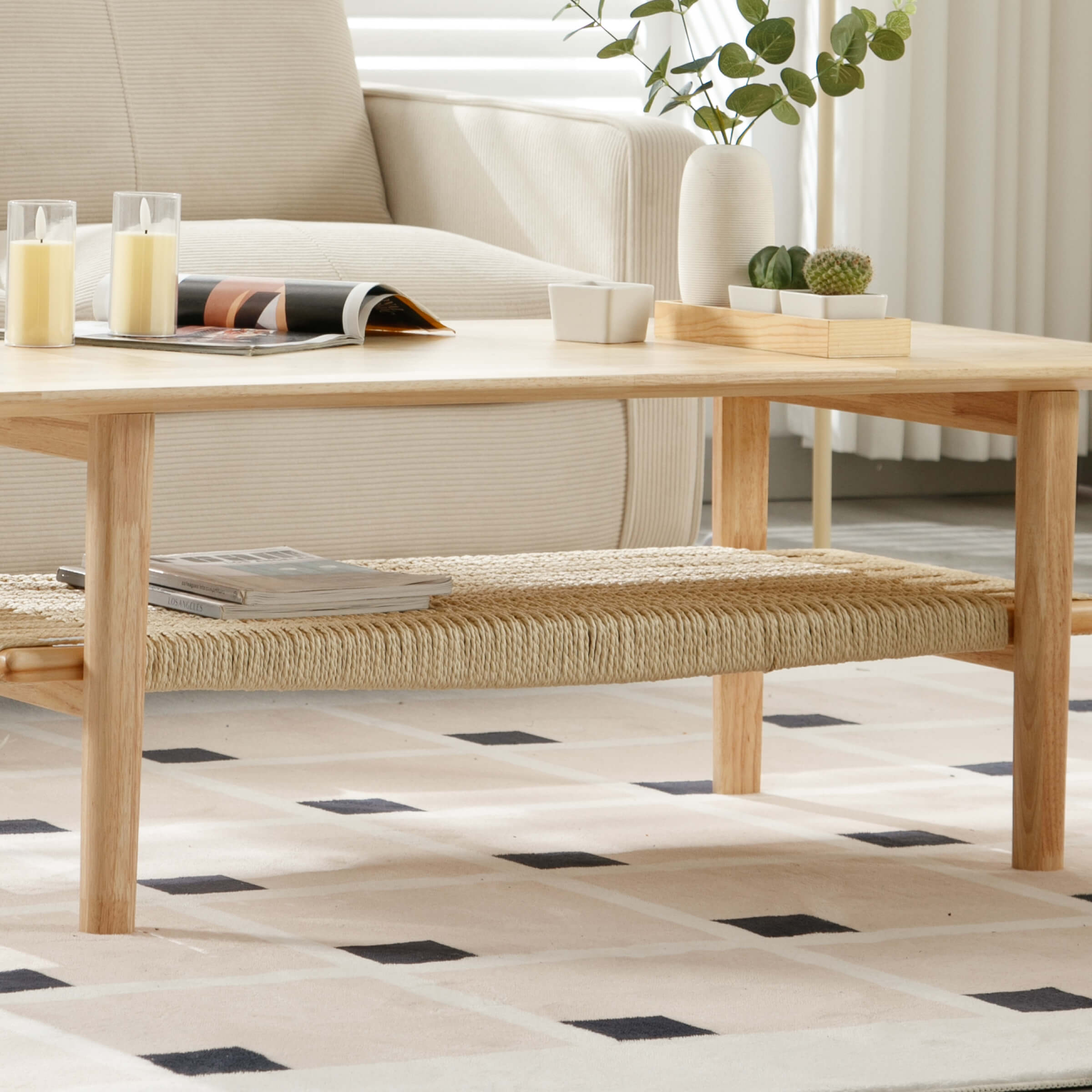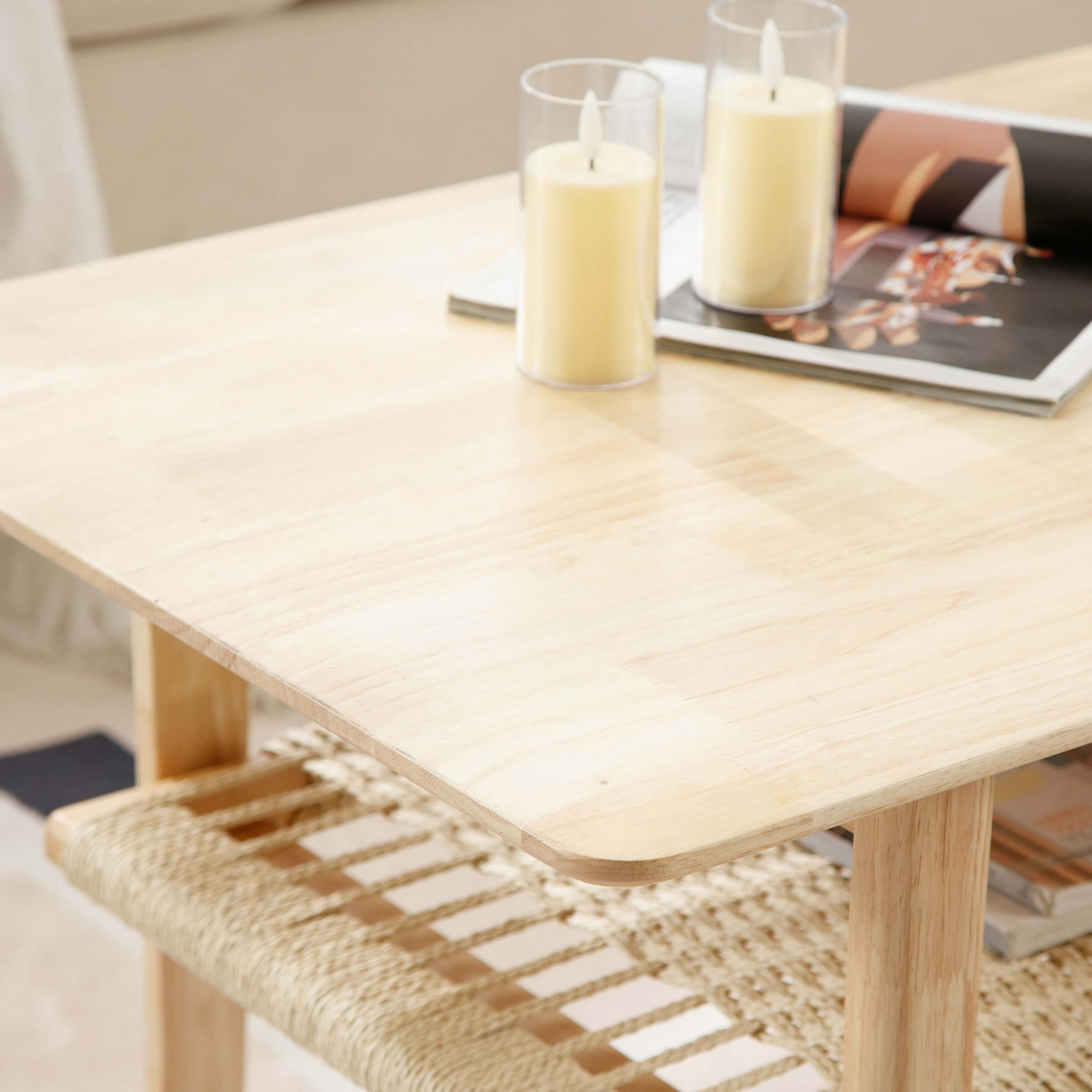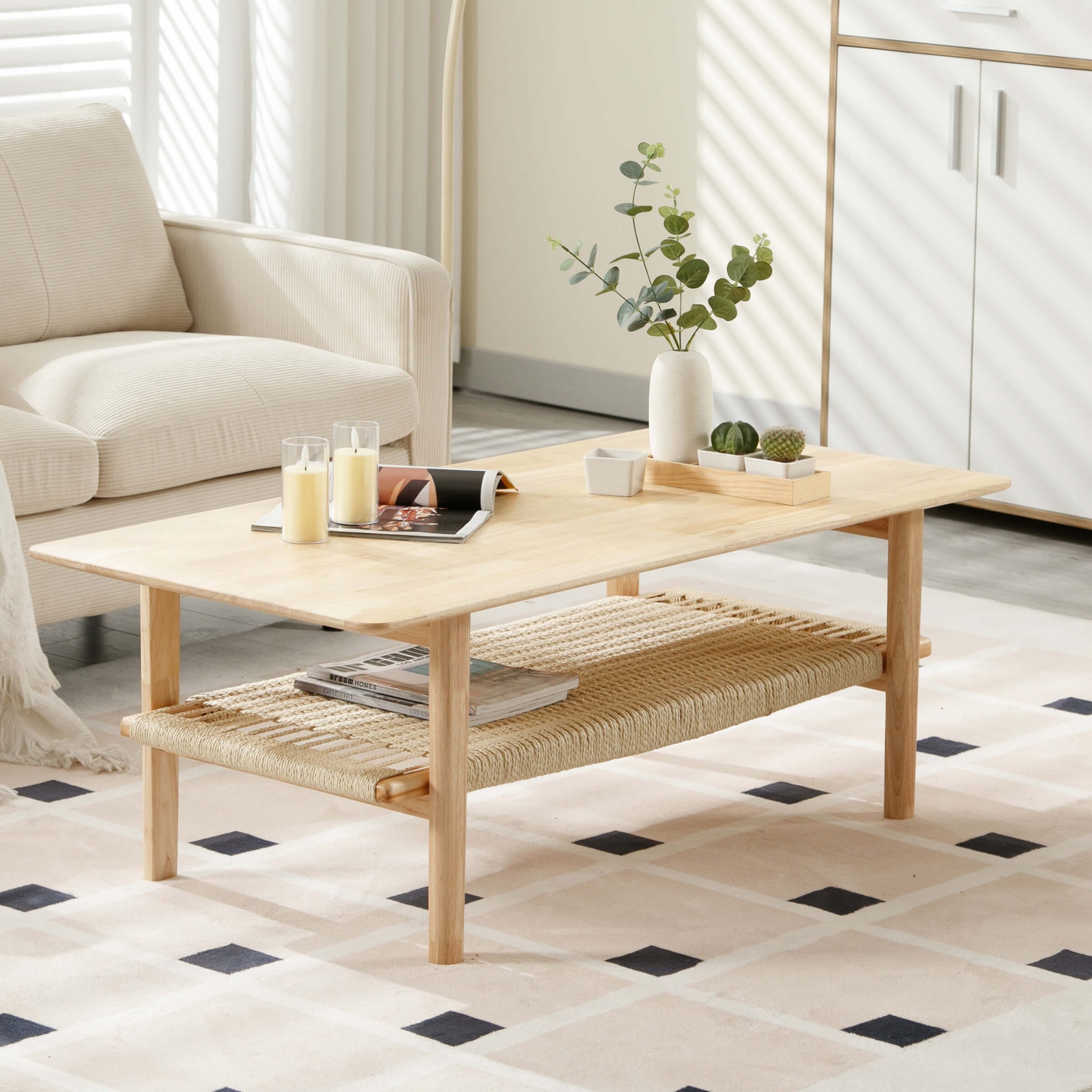 VESCASA 2-Tier Coffee Table with Natural Rattan Storage Shelf – 21793CT