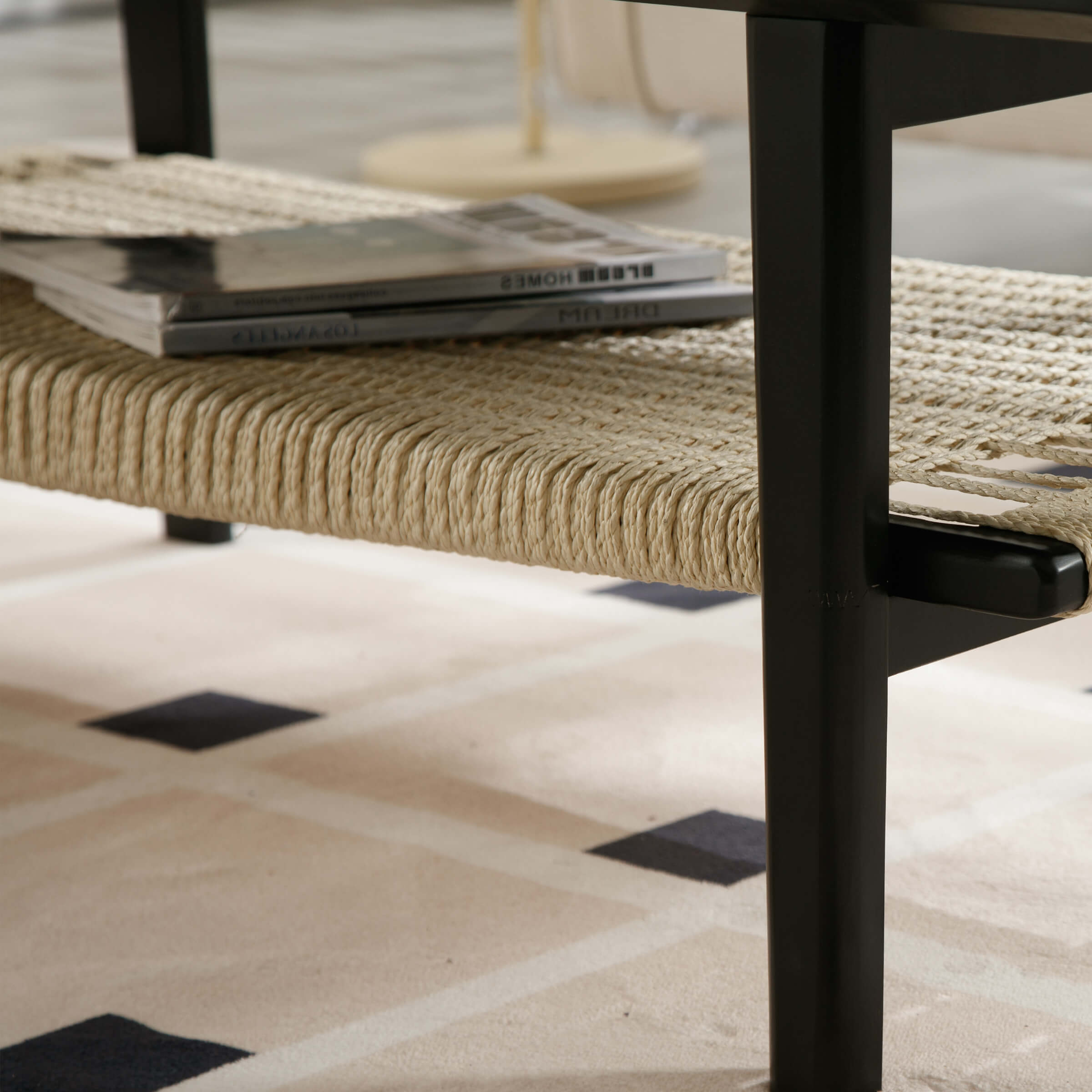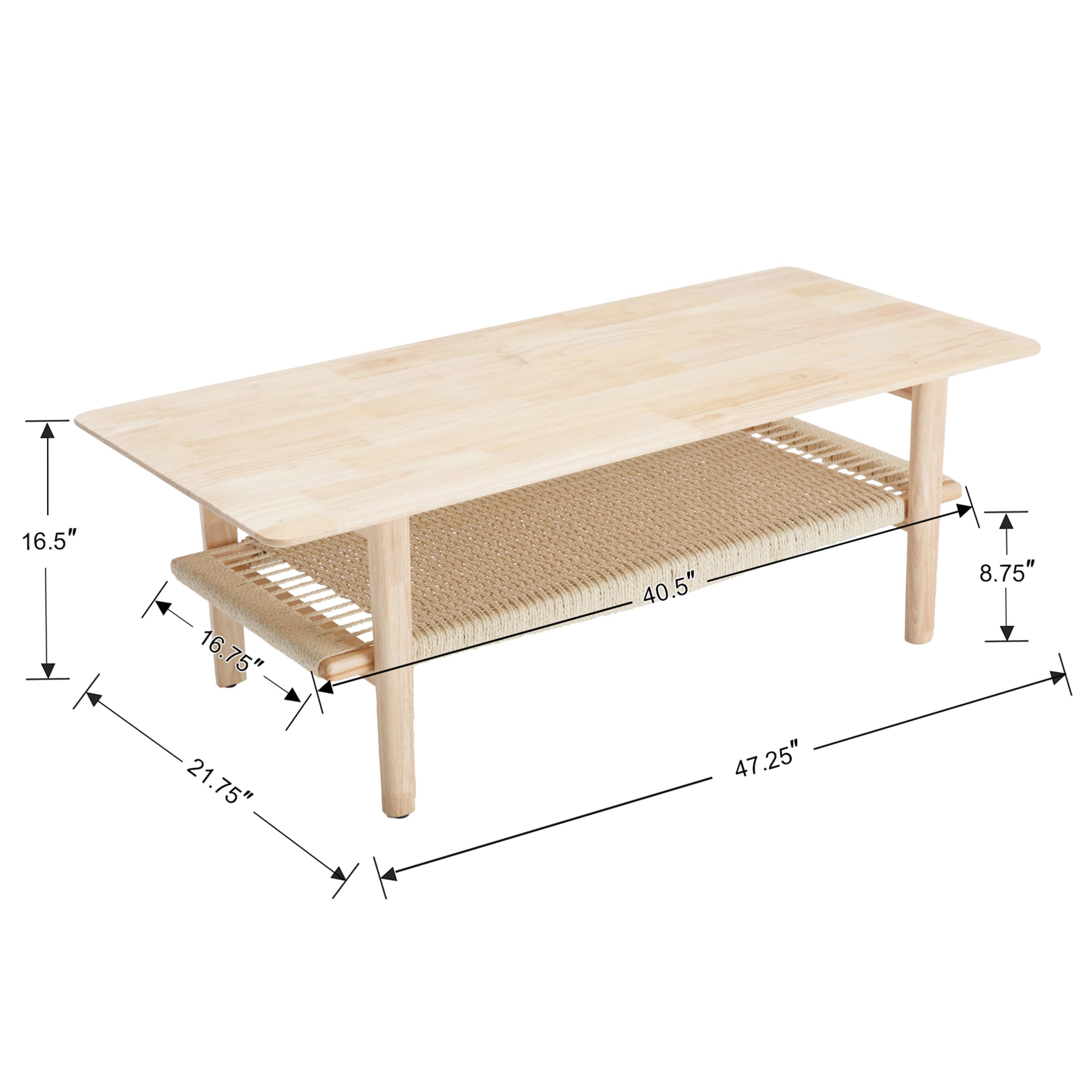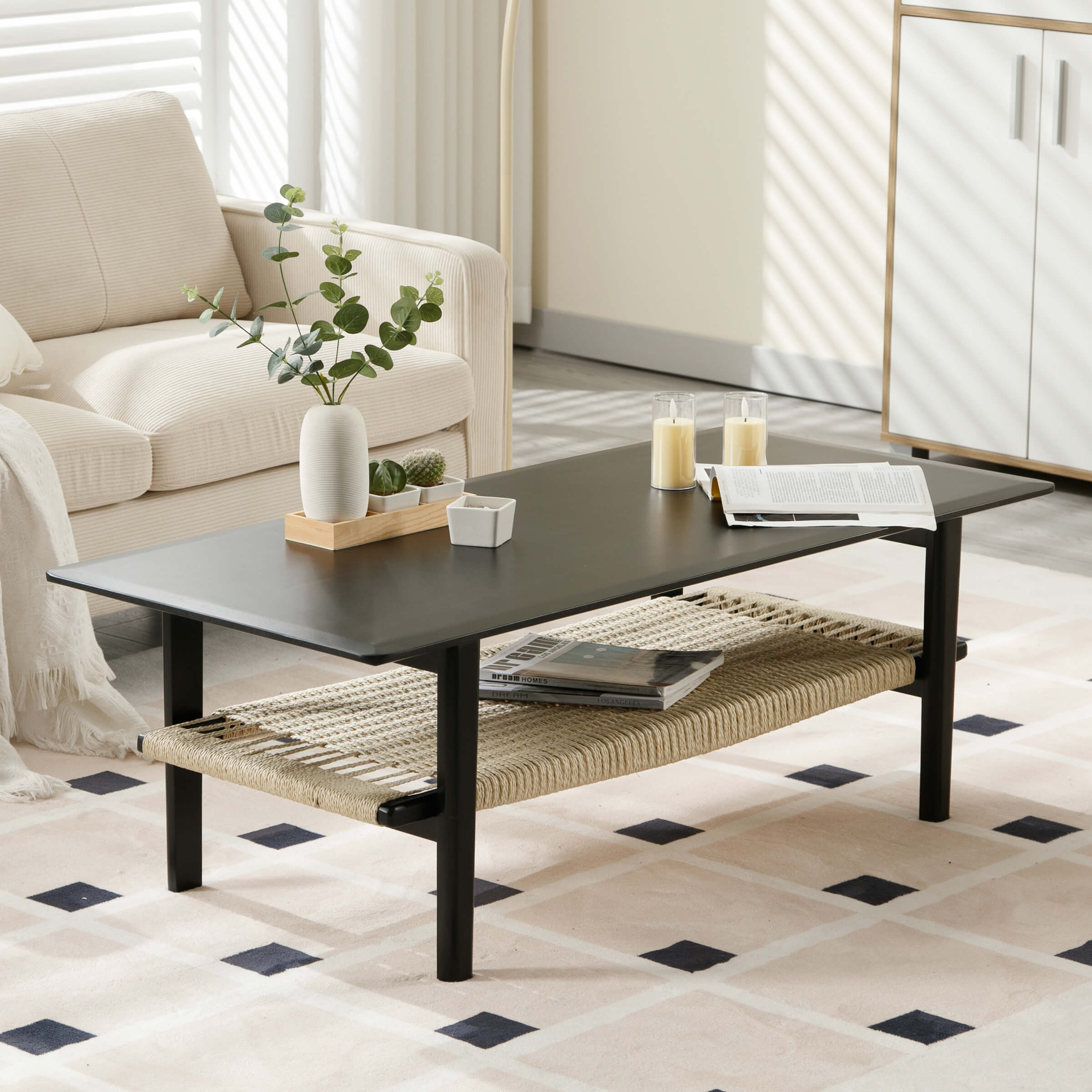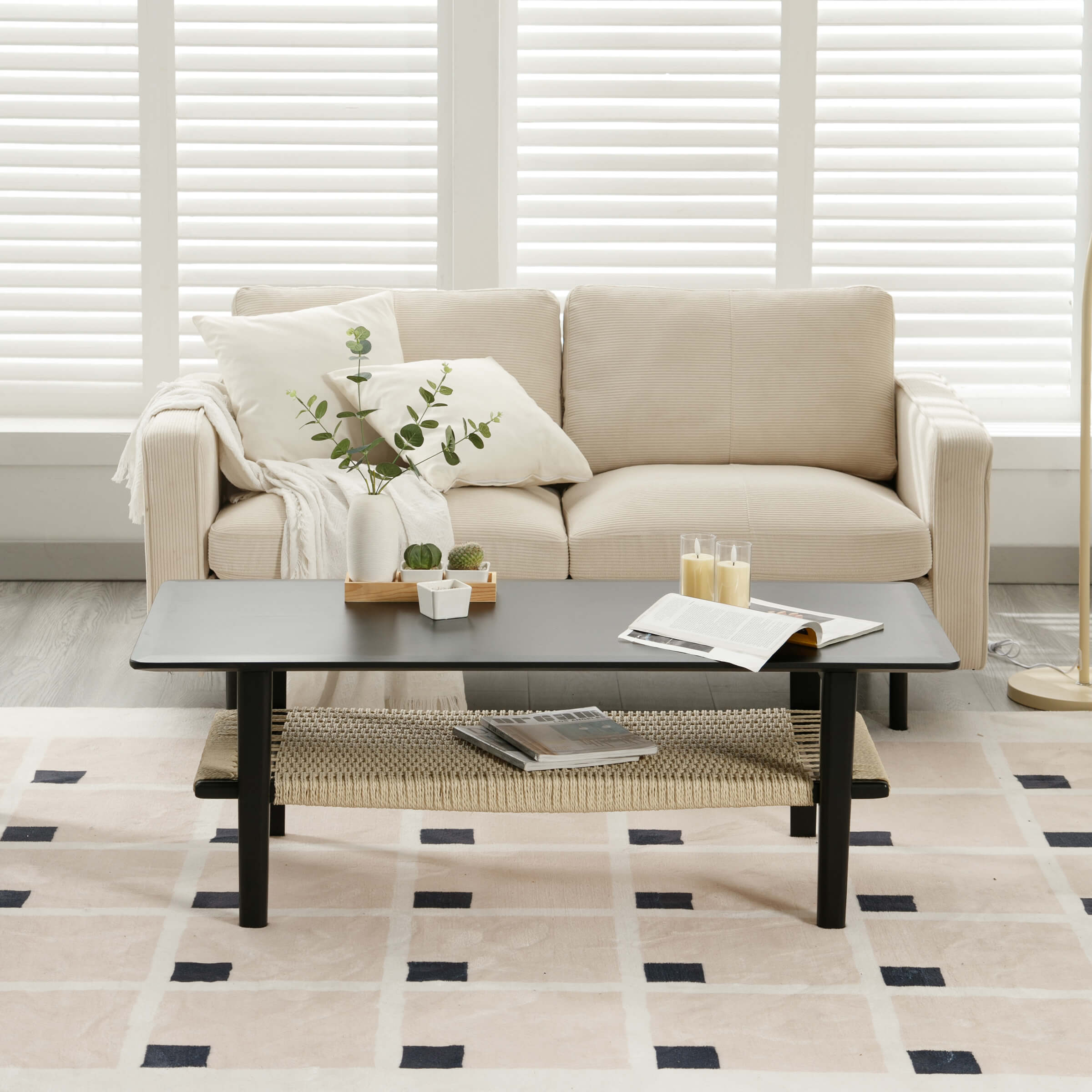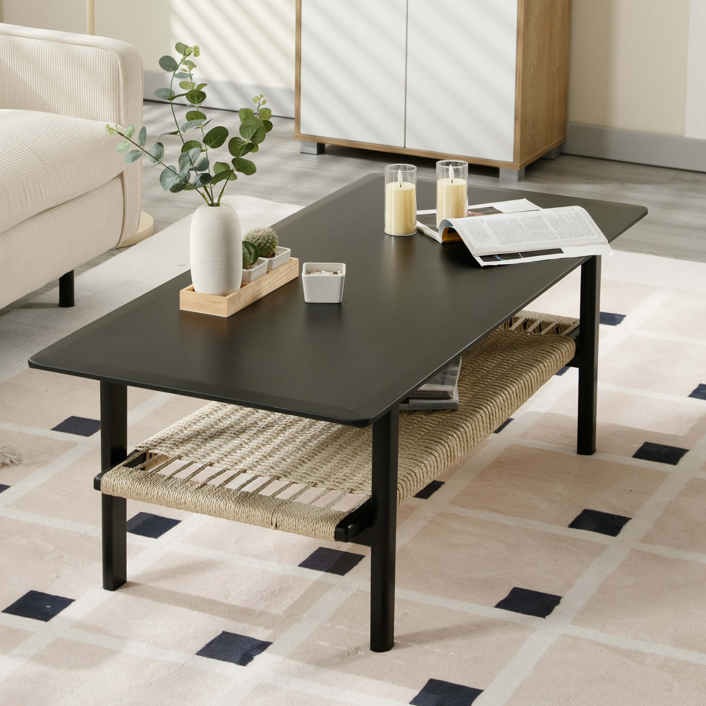 VESCASA 2-Tier Coffee Table with Natural Rattan Storage Shelf – 21793CT