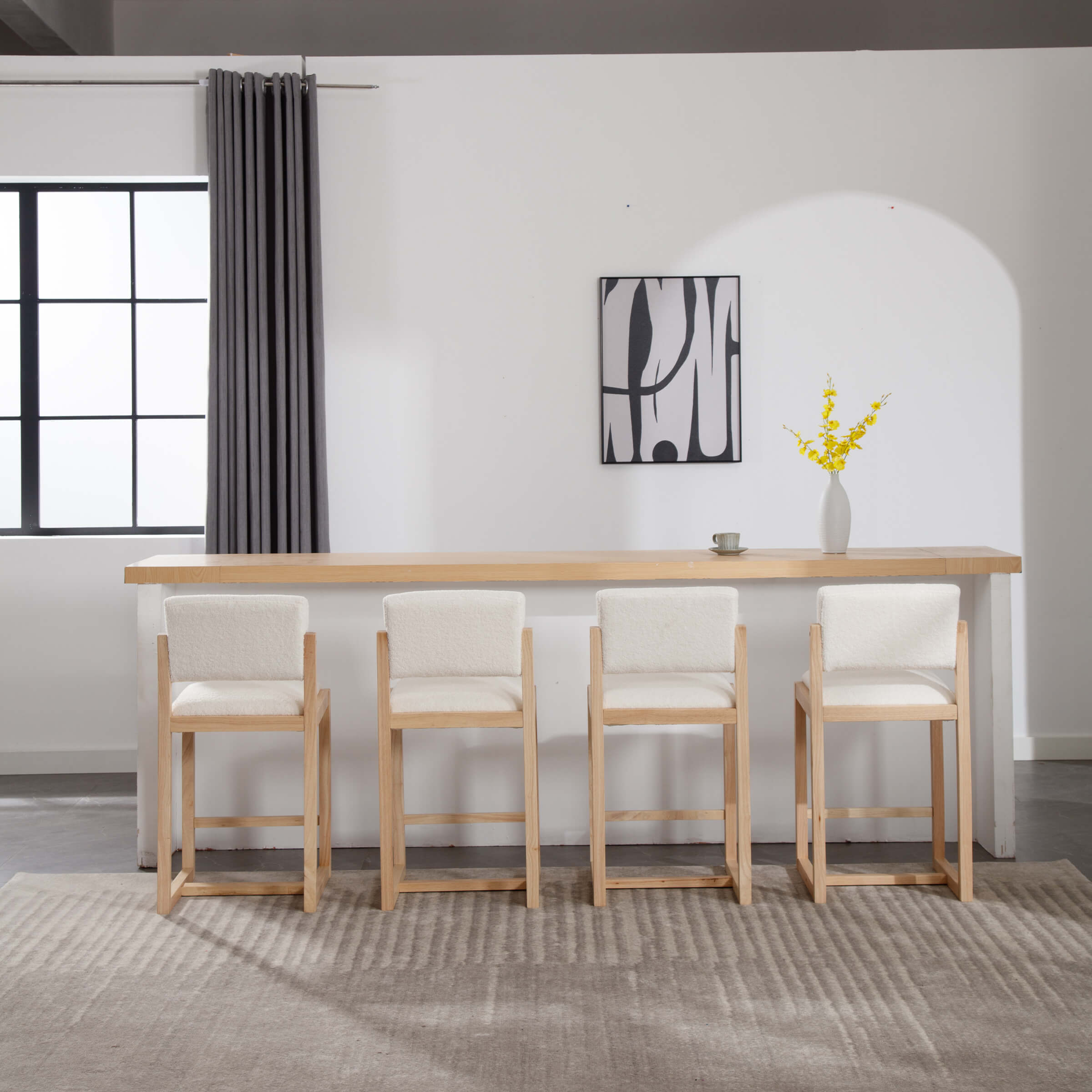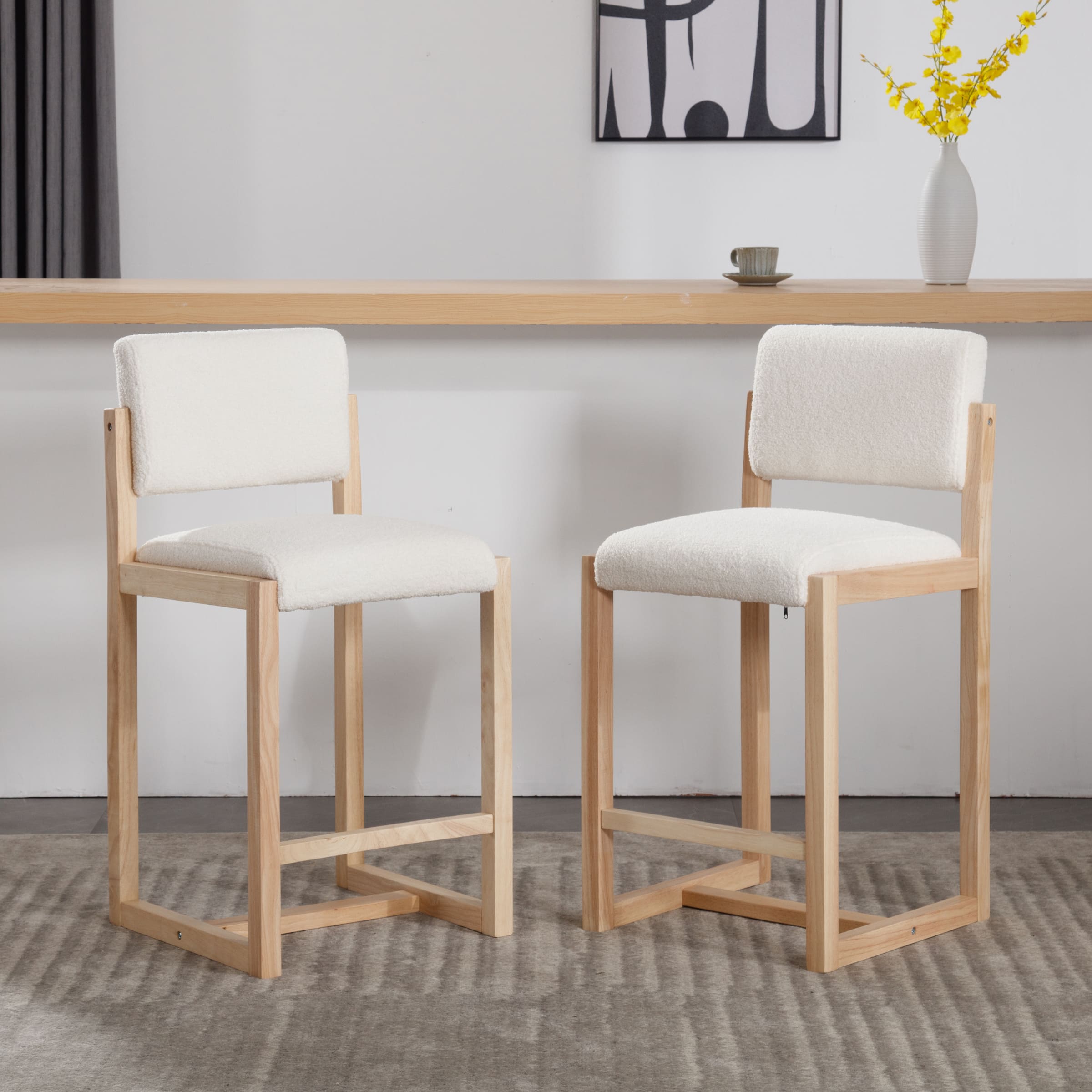 Perfect For Modern Style SpacesElegant Fashion SenseSherpa Upholstered Seat CushionOpen High Density Foam Padded Seat BackSturdy Solid Wood LegsProduct Dimensions