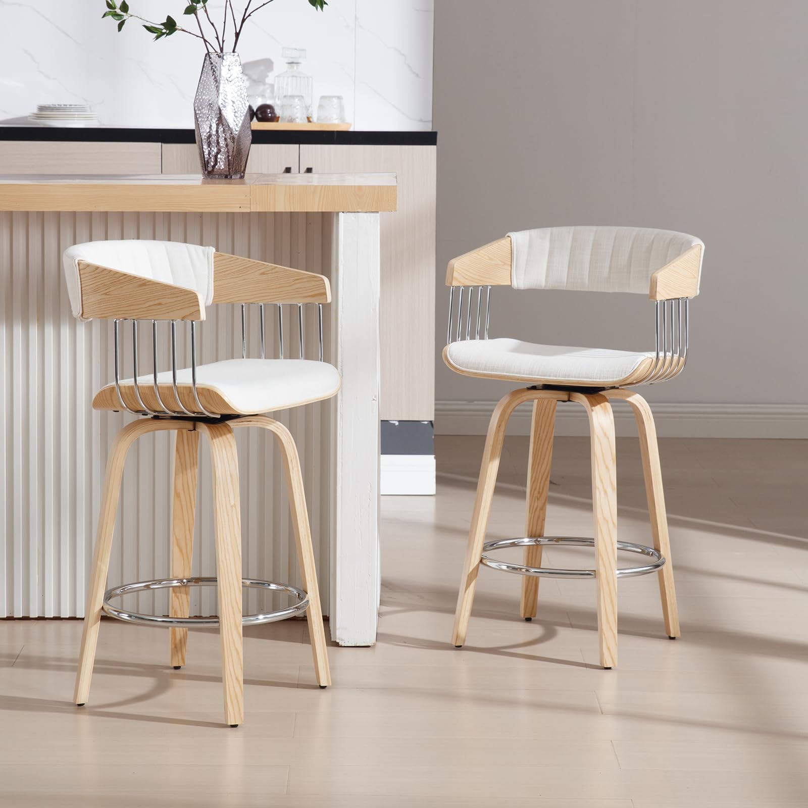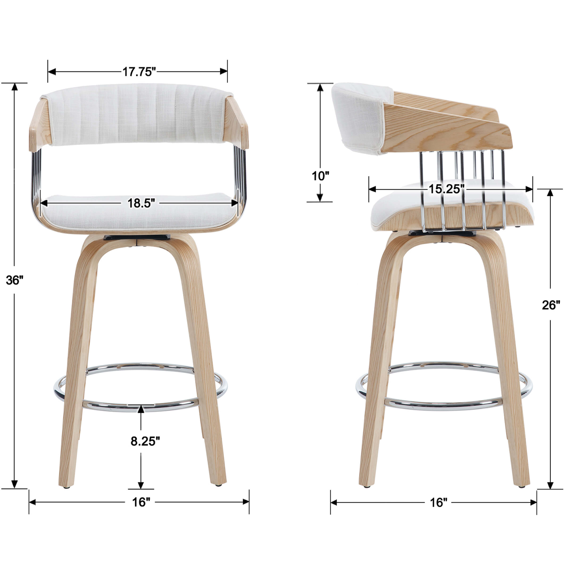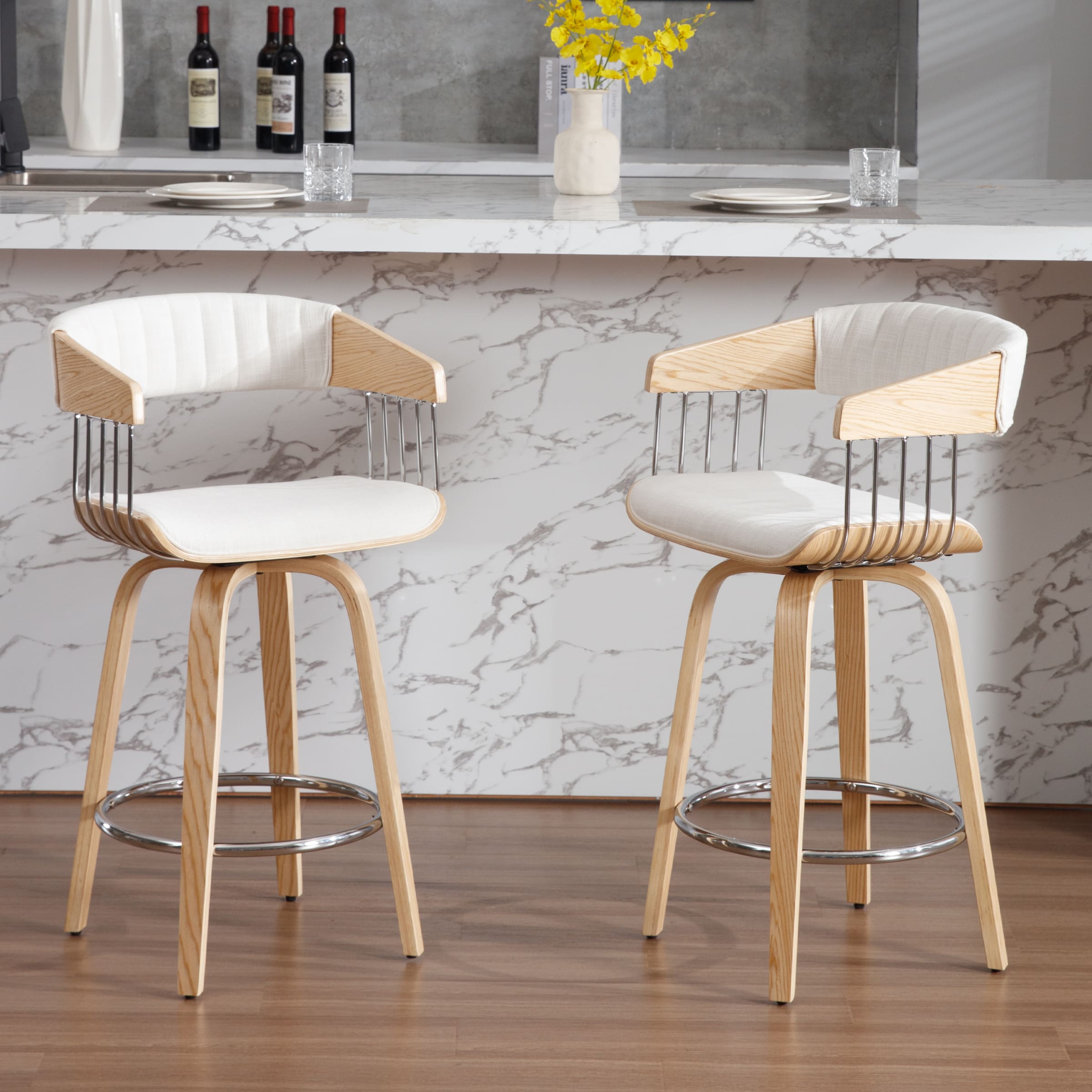 Light Luxury Bar StoolsMetal Bar Wrapped DesignSoft CushionMetal Footrests & Adjustable FeetProduct Dimensions