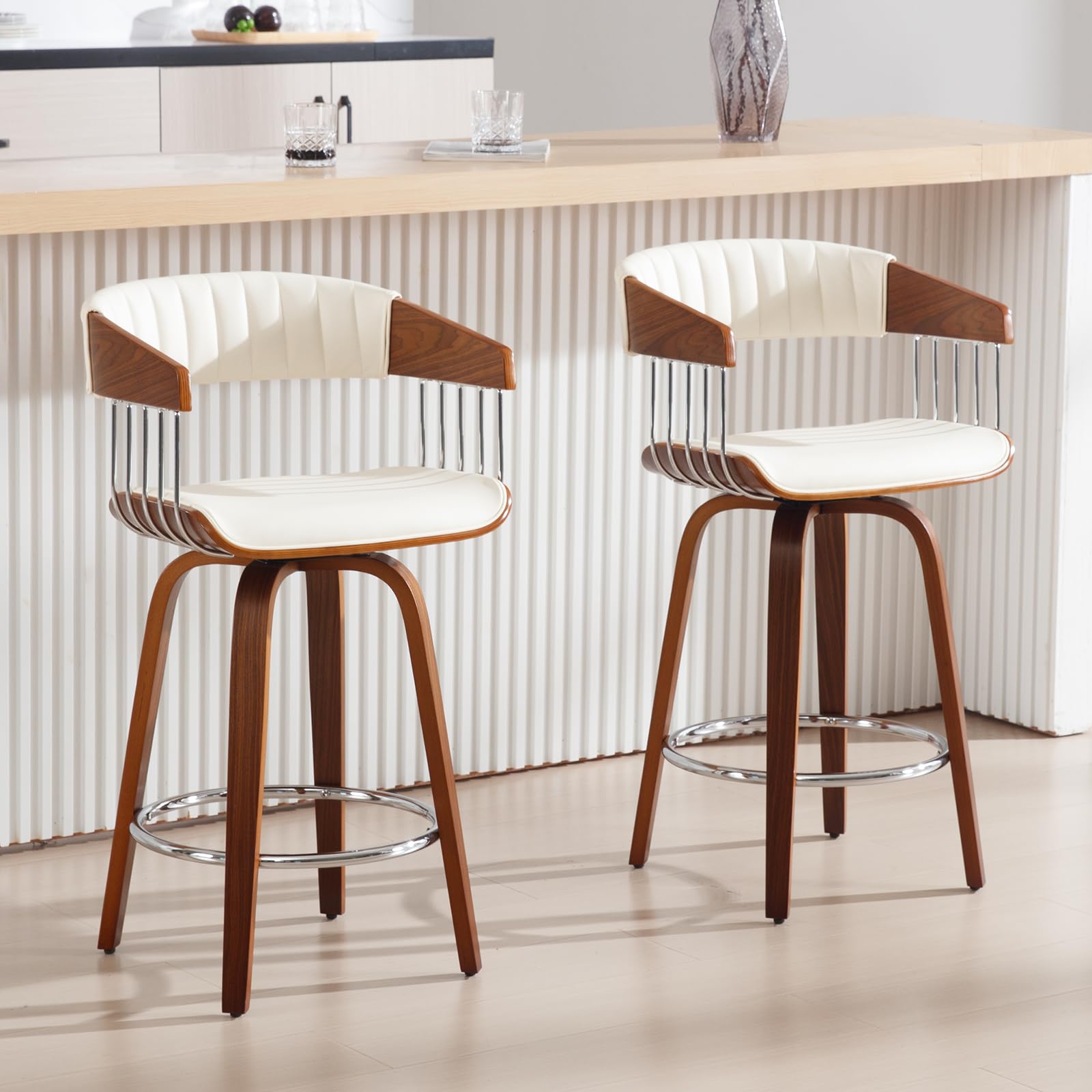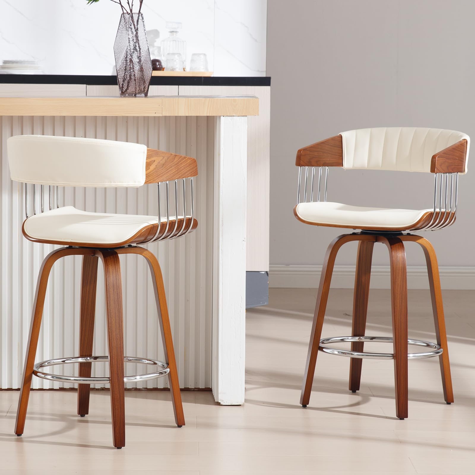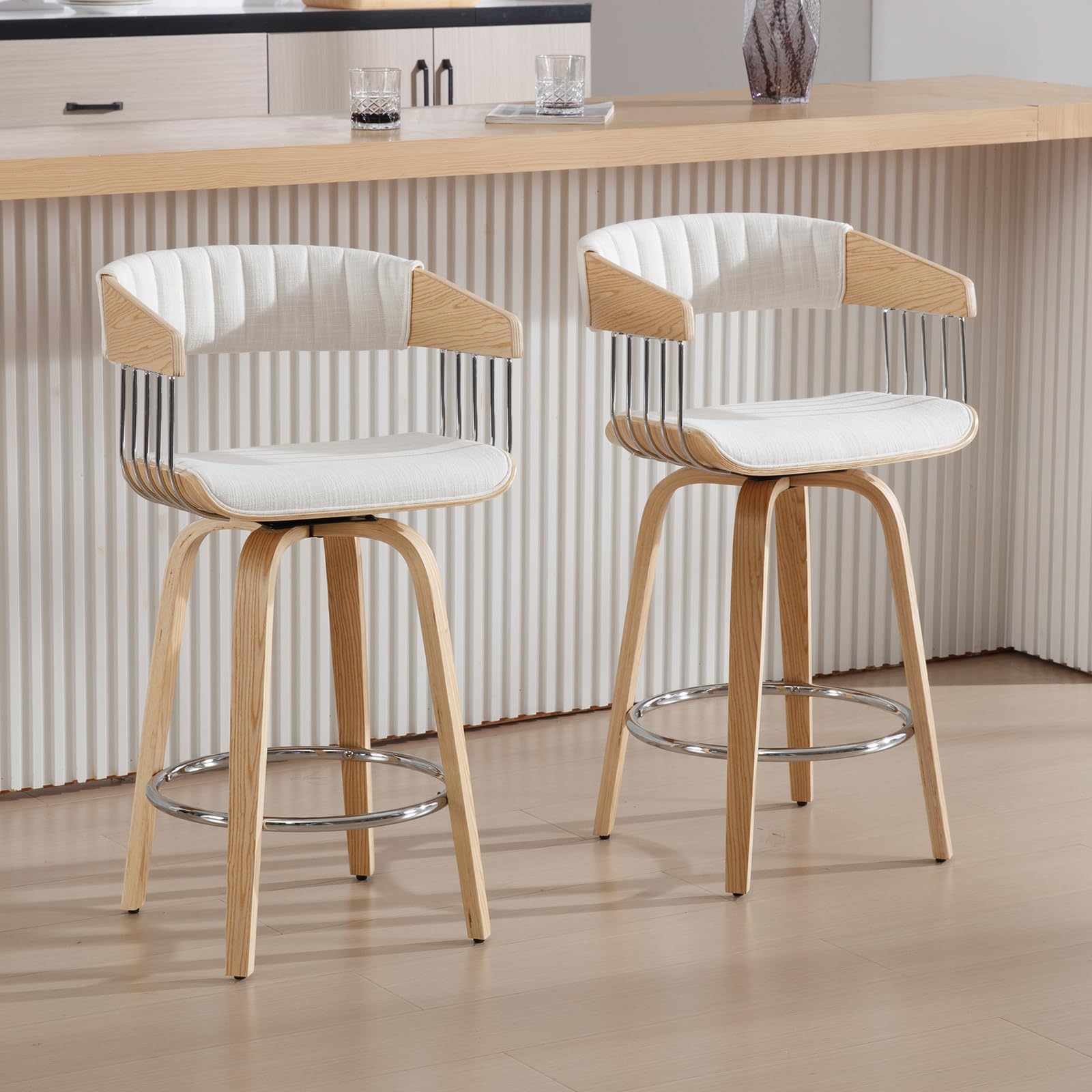 Light Luxury Bar StoolsMetal Bar Wrapped DesignSoft CushionMetal Footrests & Adjustable FeetProduct Dimensions