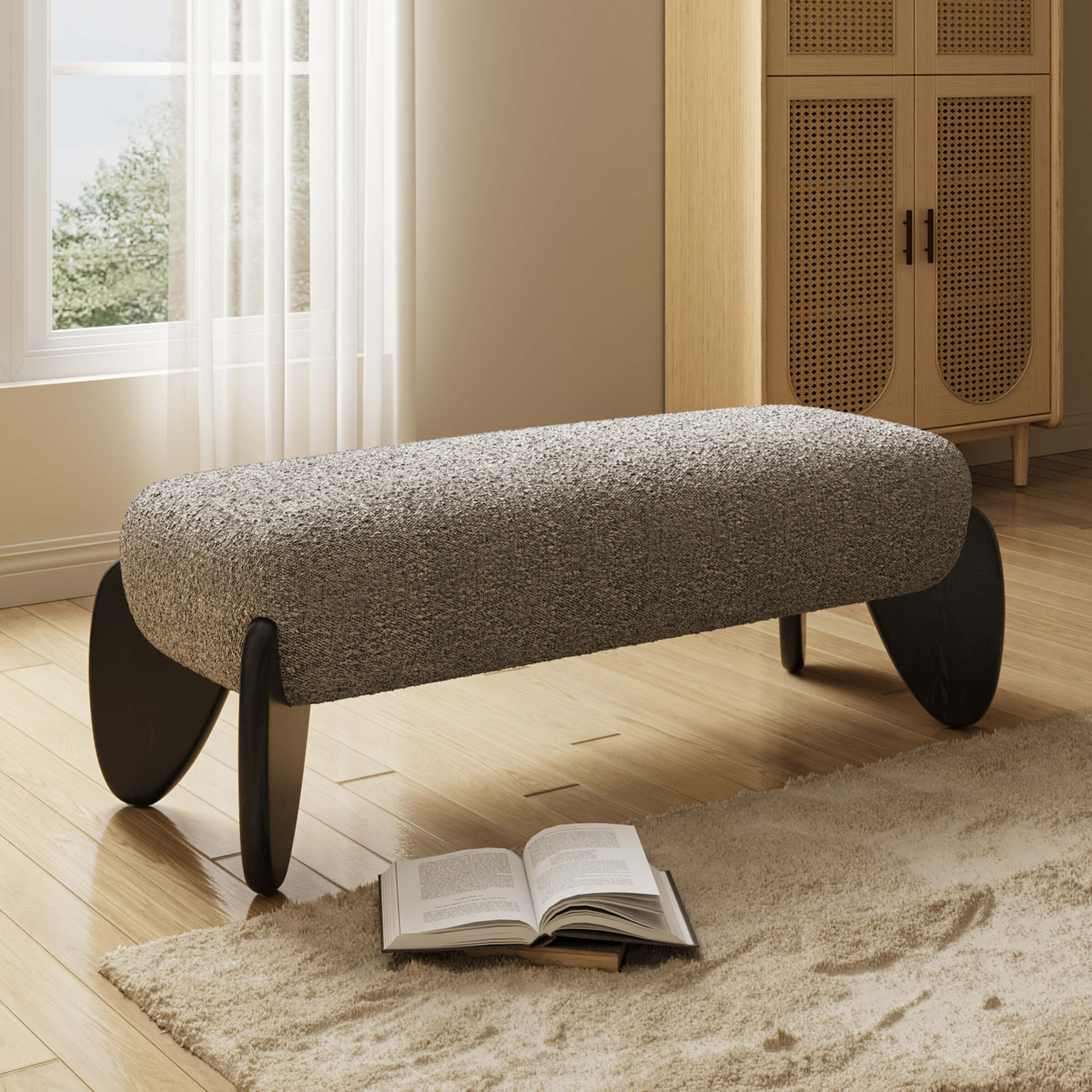 - Works well at the end of a bed, in the entryway, living room, or under a window.