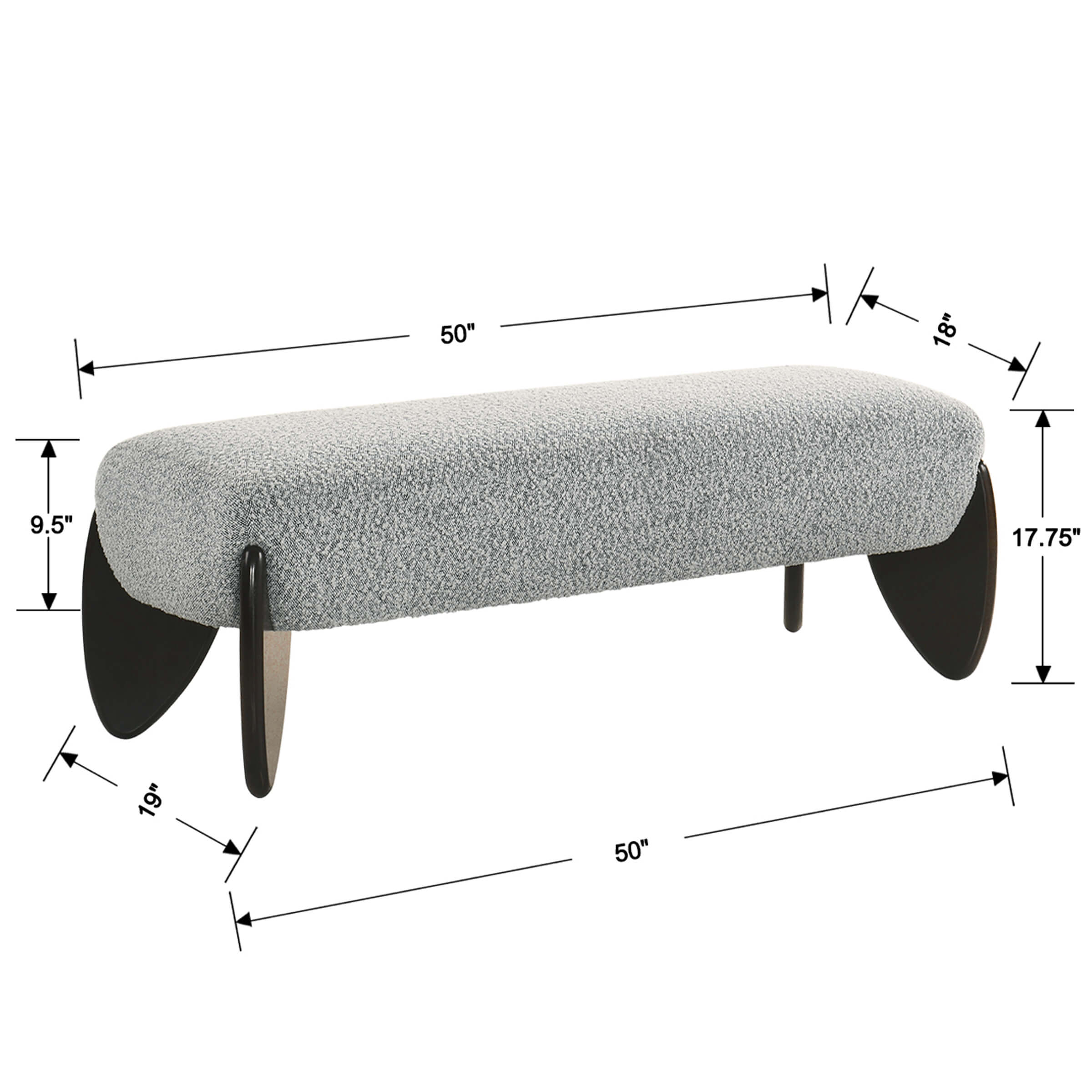 - Dimensions: 50″L x 19″W x 18″H.